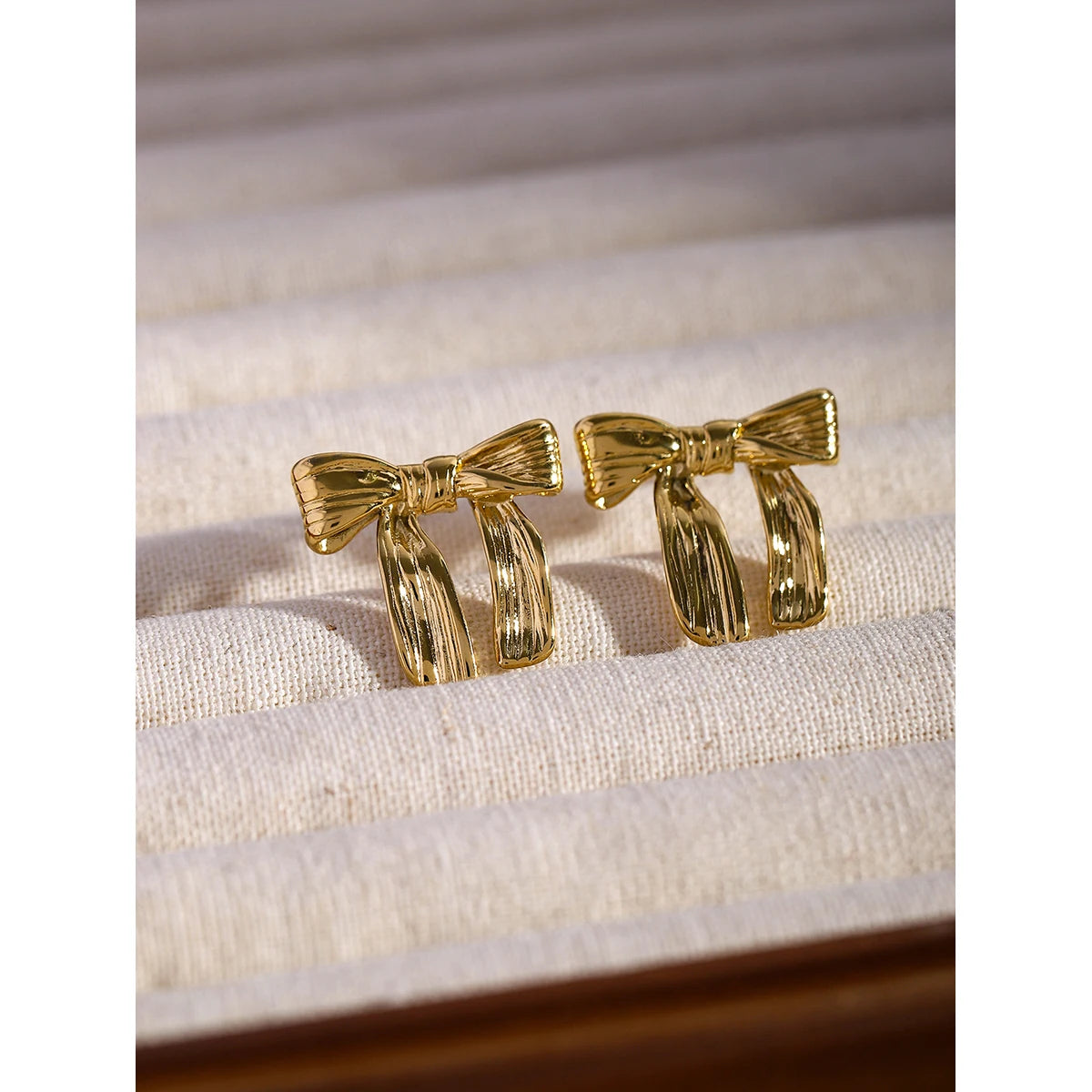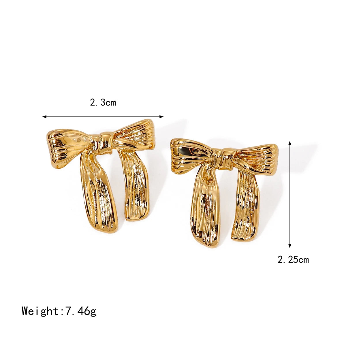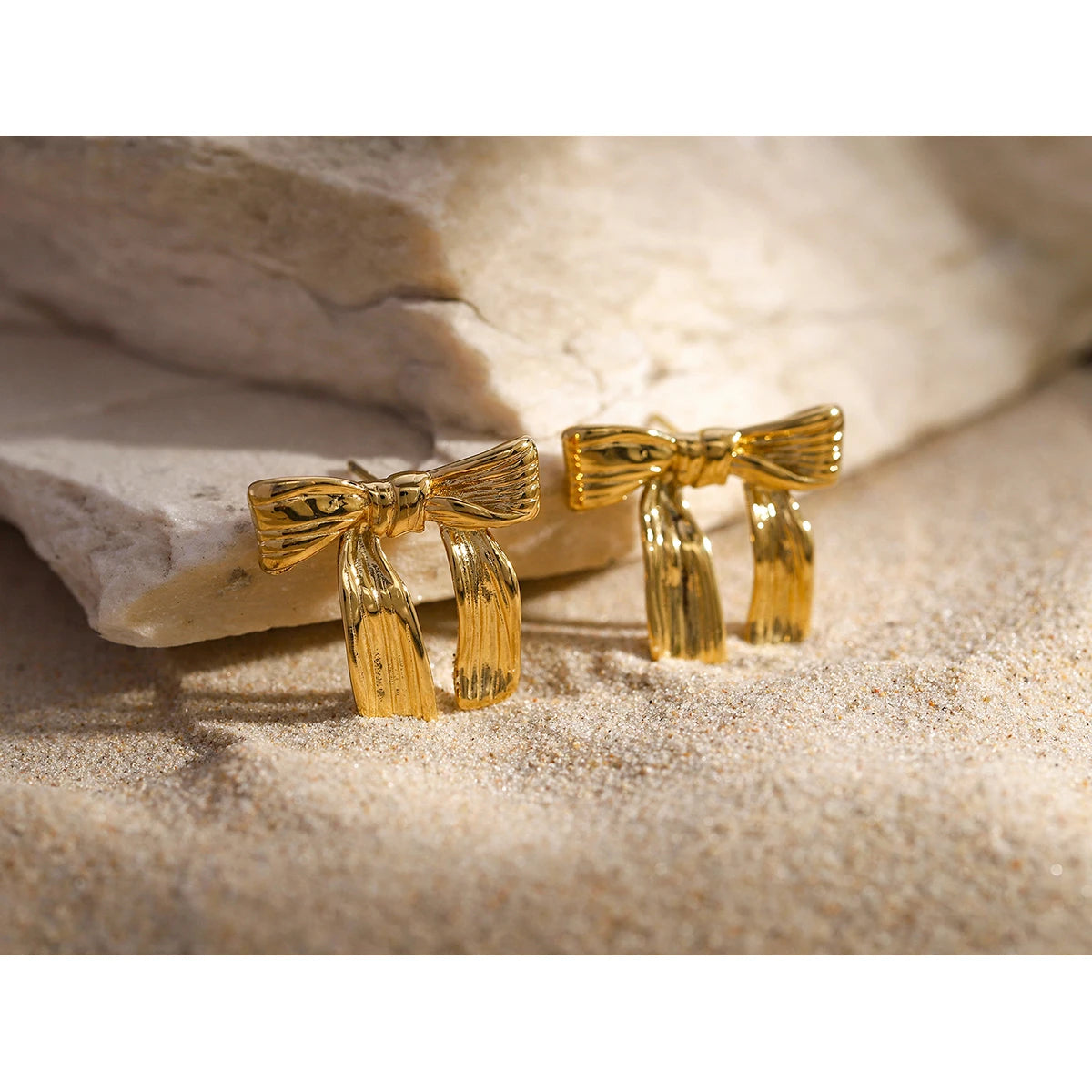 ステンレス304 低ニッケル 水に濡れても錆びにくい 18Kゴールドメッキ ピアス リボン 【YJ02298】