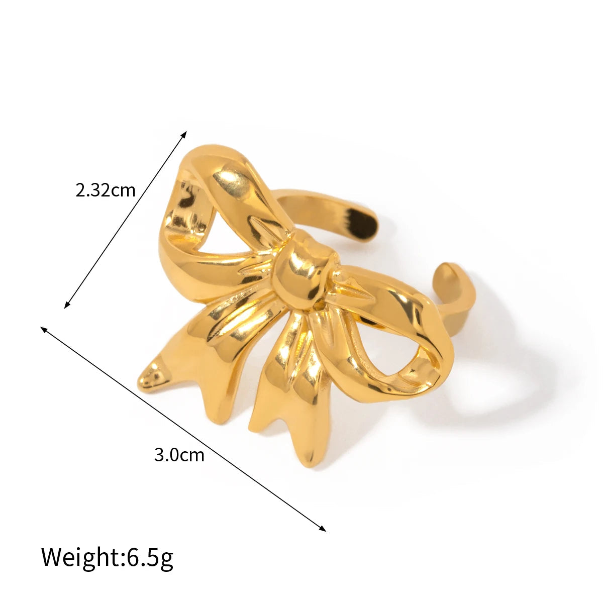 ステンレス304 低ニッケル 水に濡れても錆びにくい 18Kゴールドメッキ リング チャンキー リボン 【YJ02336】