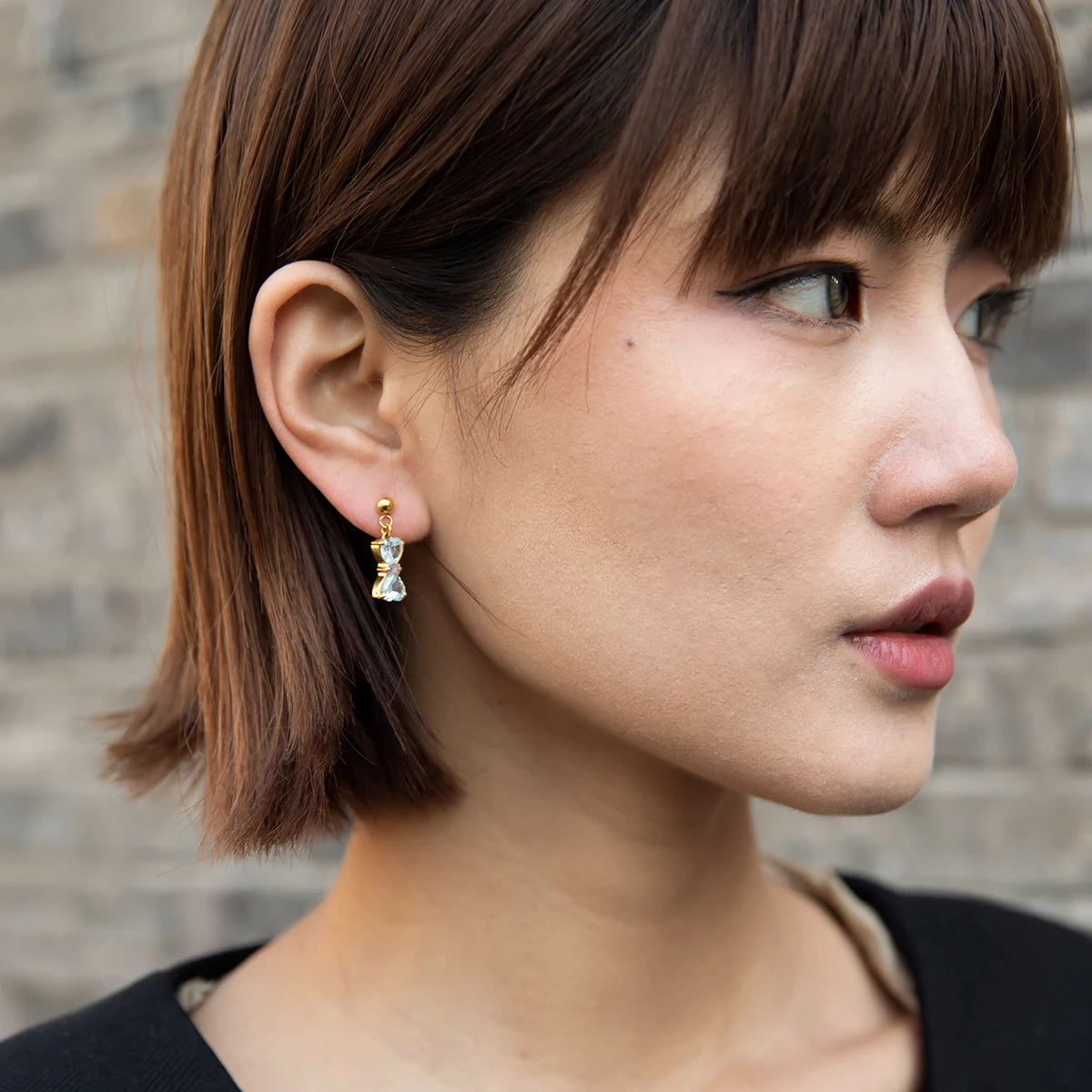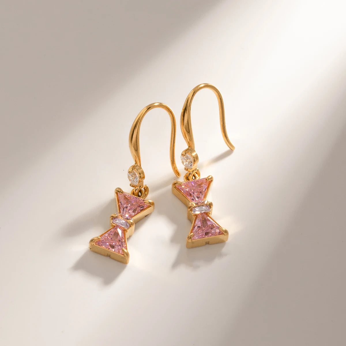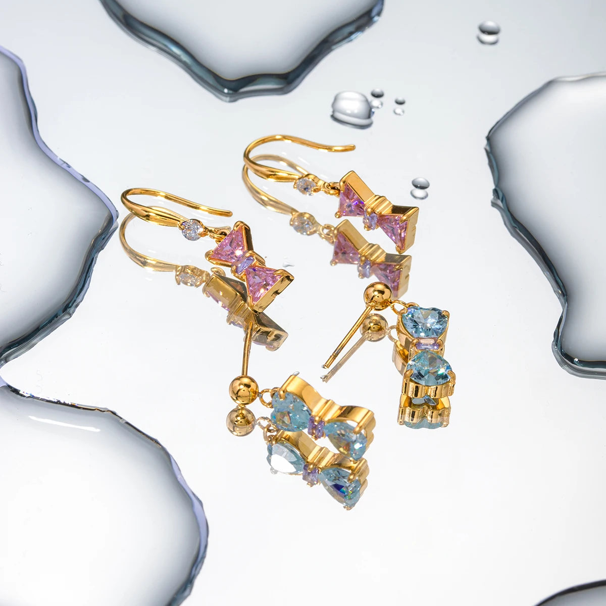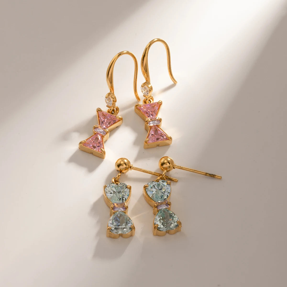 ステンレス304 低ニッケル 水に濡れても錆びにくい 18Kゴールドメッキ ピアス リボン ジルコニア 【YJ02364】