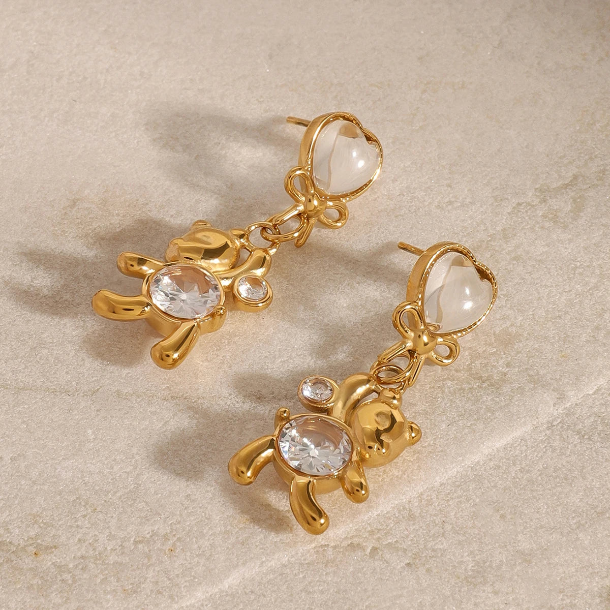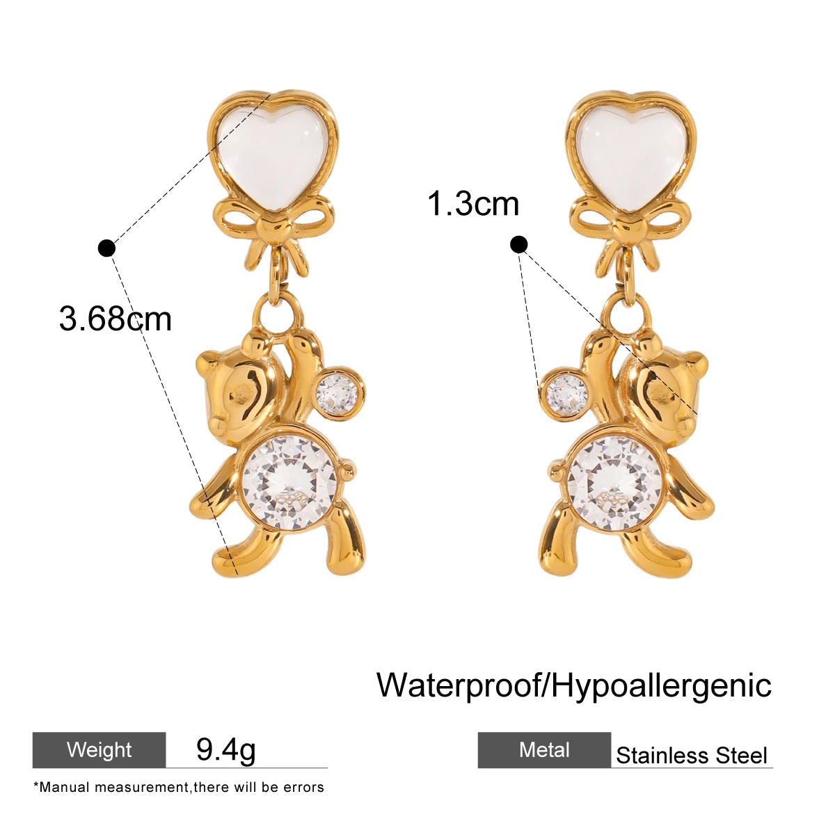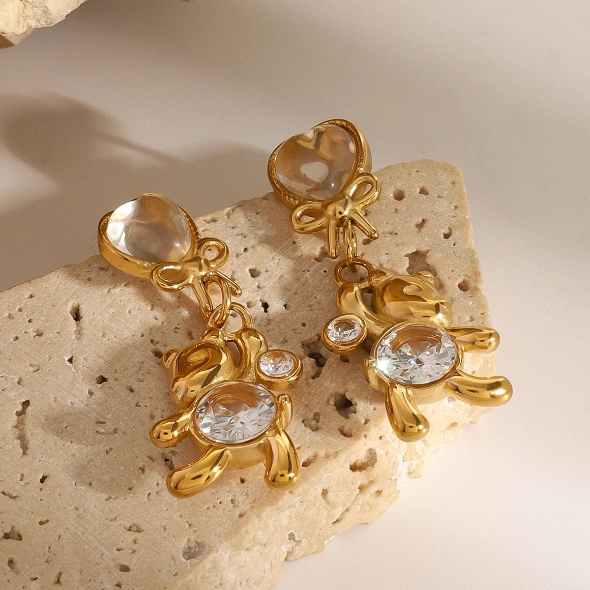 ステンレス304 低ニッケル 水に濡れても錆びにくい 18Kゴールドメッキ ピアス ハート リボン くま ジルコニア 【YJ03244】