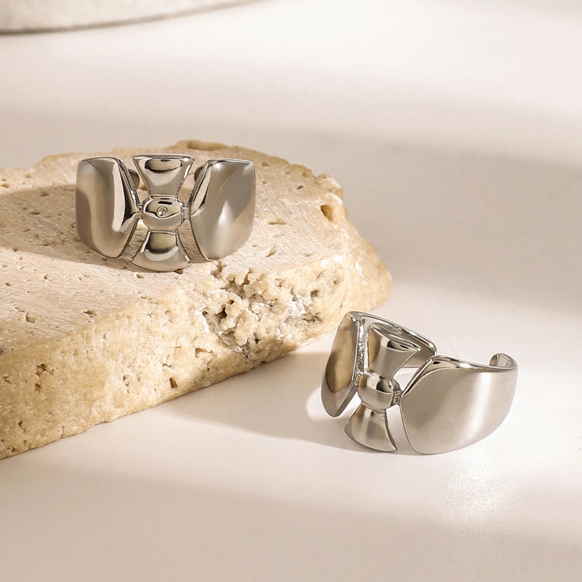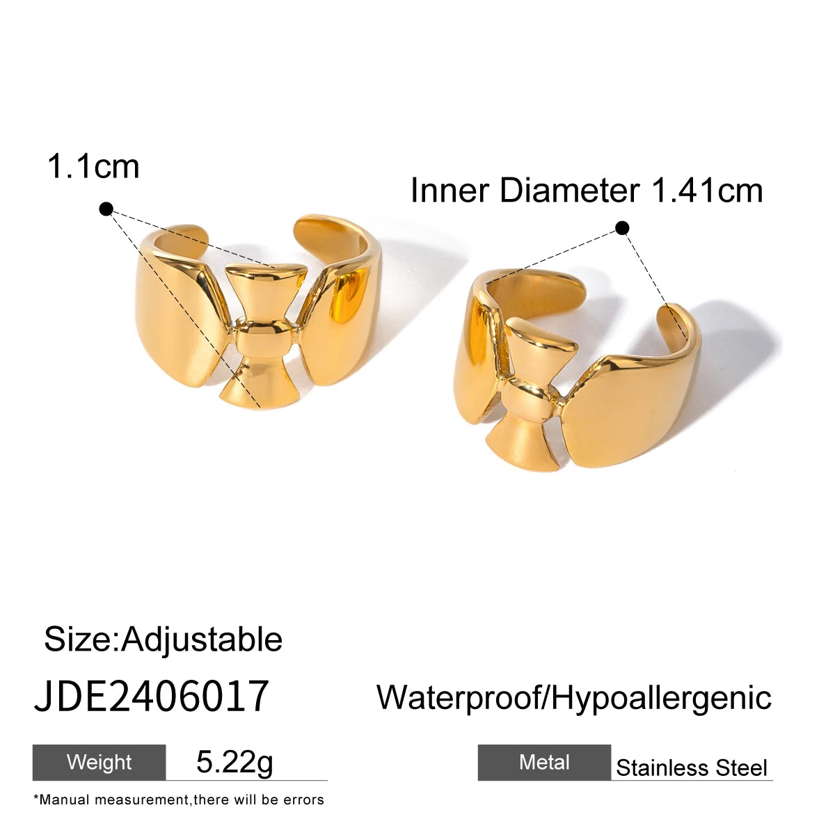 ステンレス304 低ニッケル 水に濡れても錆びにくい 18Kゴールドメッキ ピアス リボン 【YJ03340】