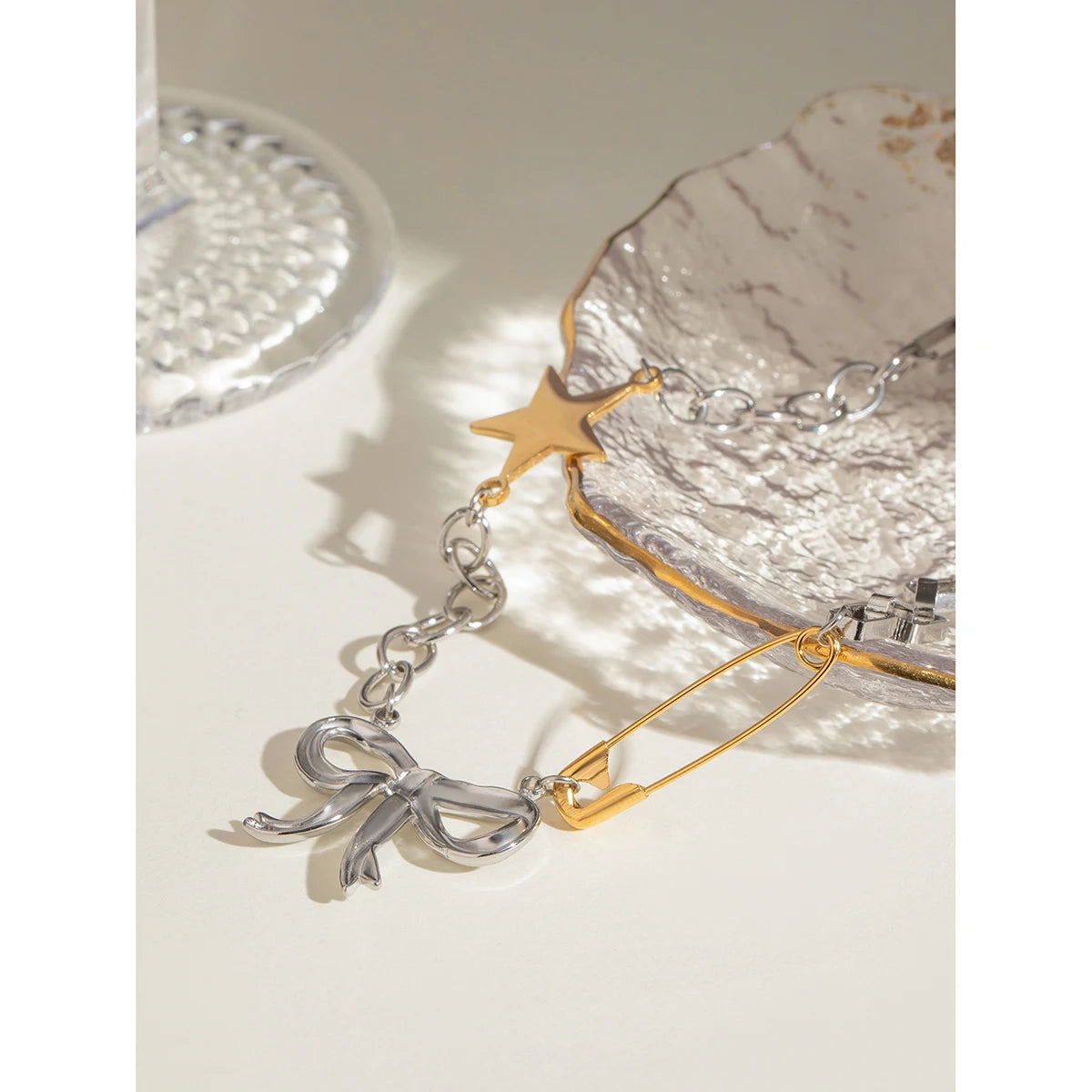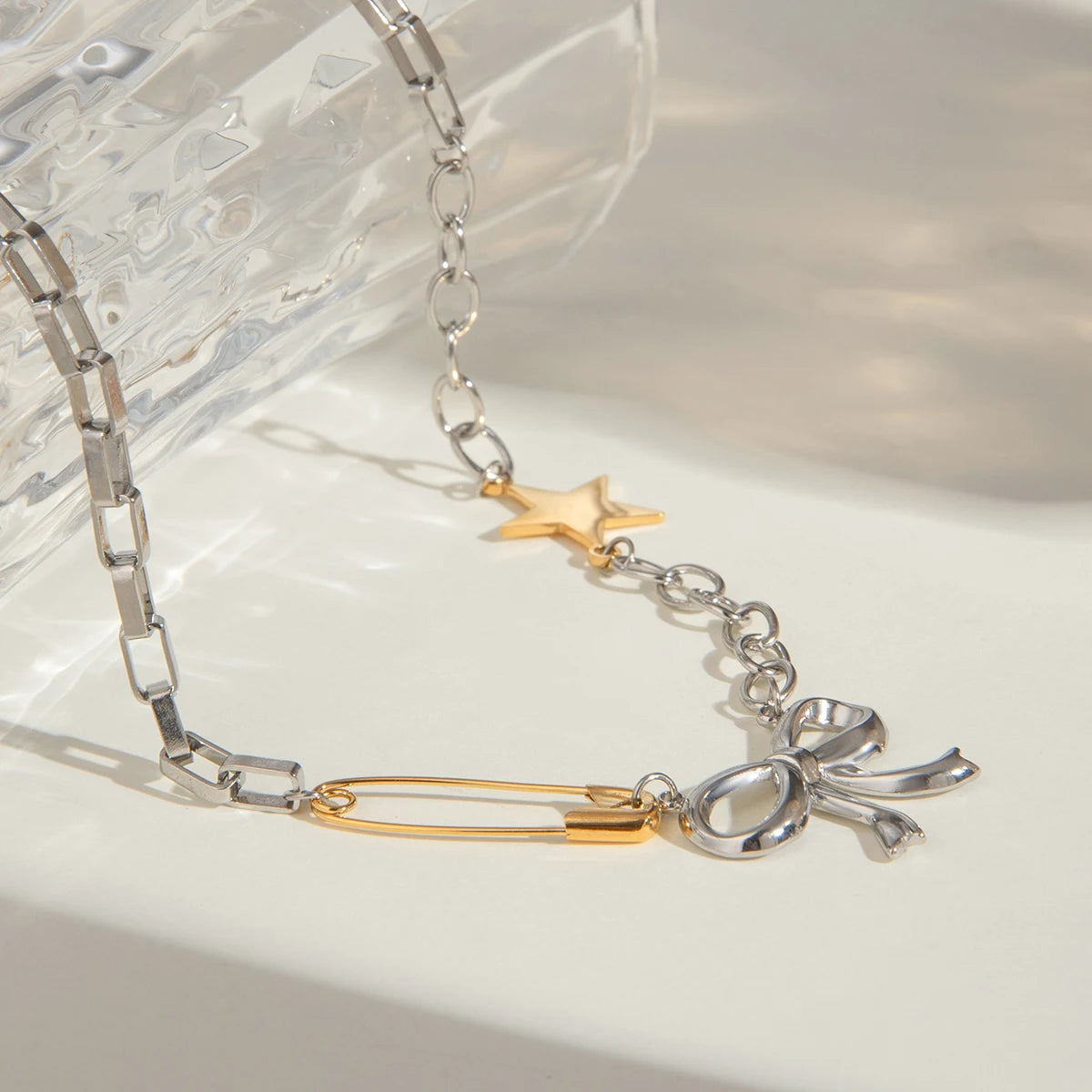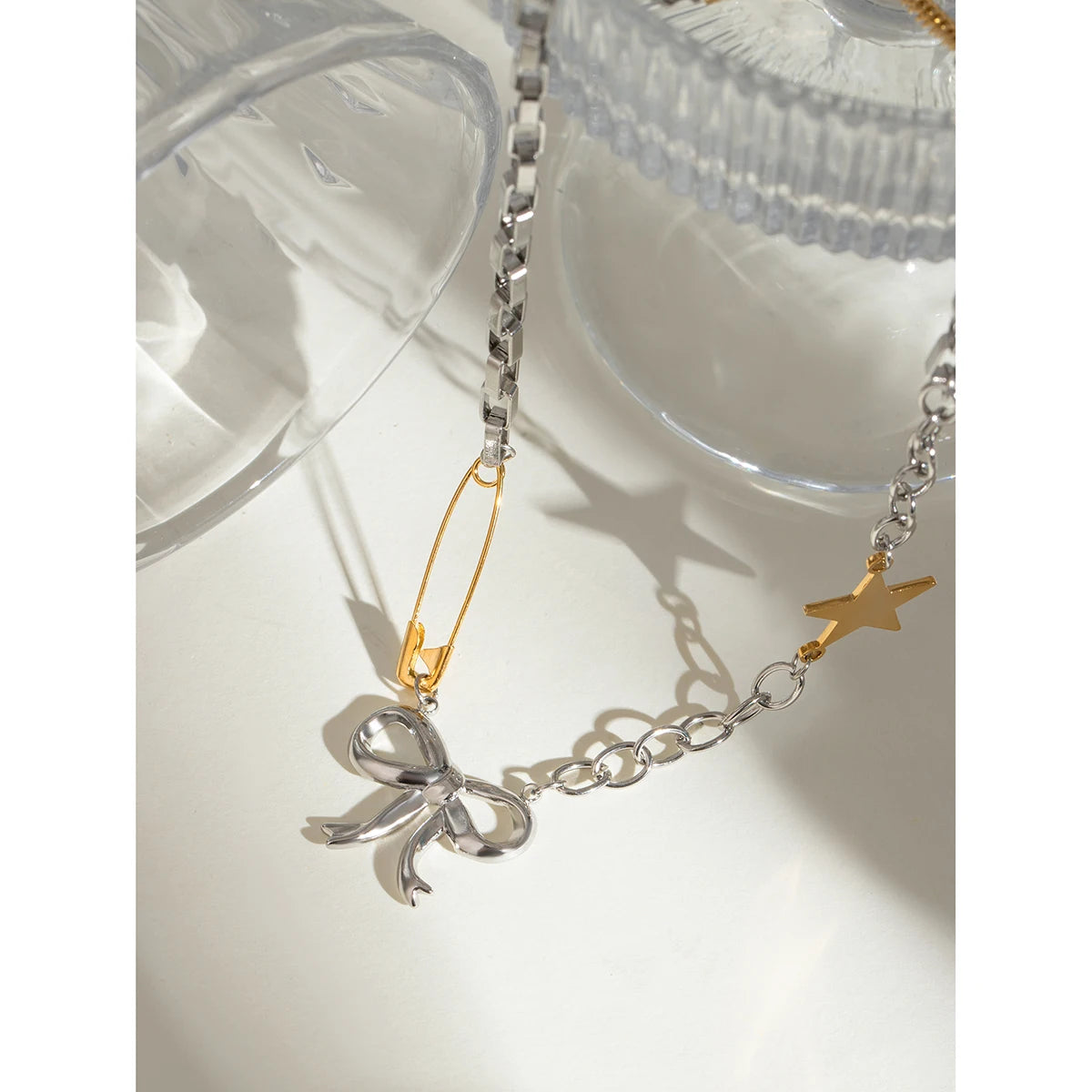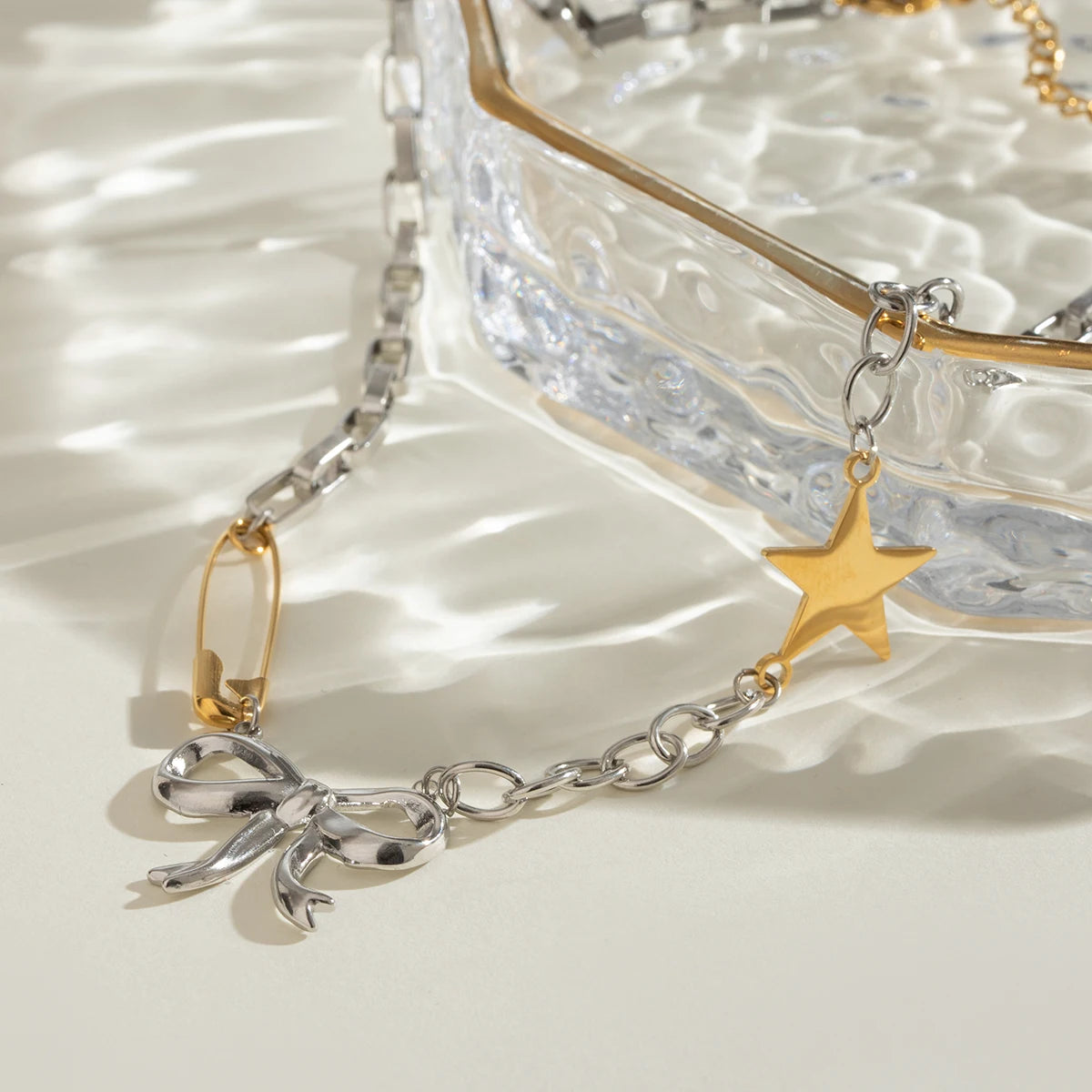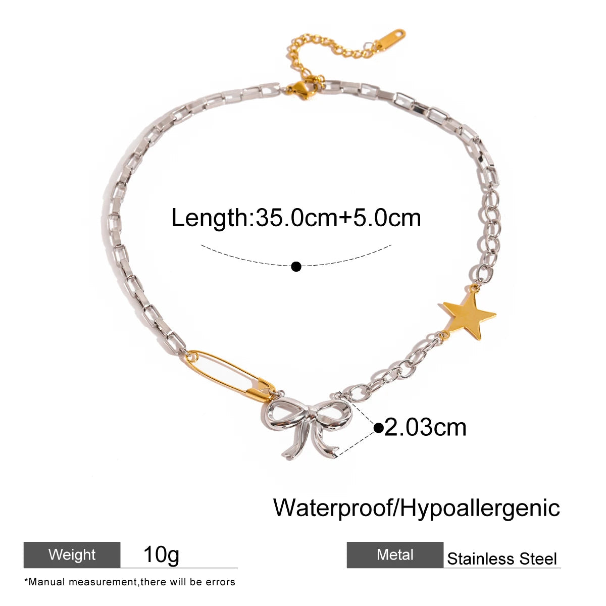 ステンレス304 低ニッケル 水に濡れても錆びにくい 18Kゴールドメッキ ネックレス チェーン スター 星 リボン 【YJ03362】