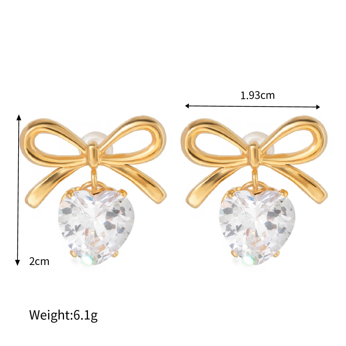 ステンレス304 低ニッケル 水に濡れても錆びにくい 18Kゴールドメッキ ピアス ハート リボン ジルコニア 【YJ03668】