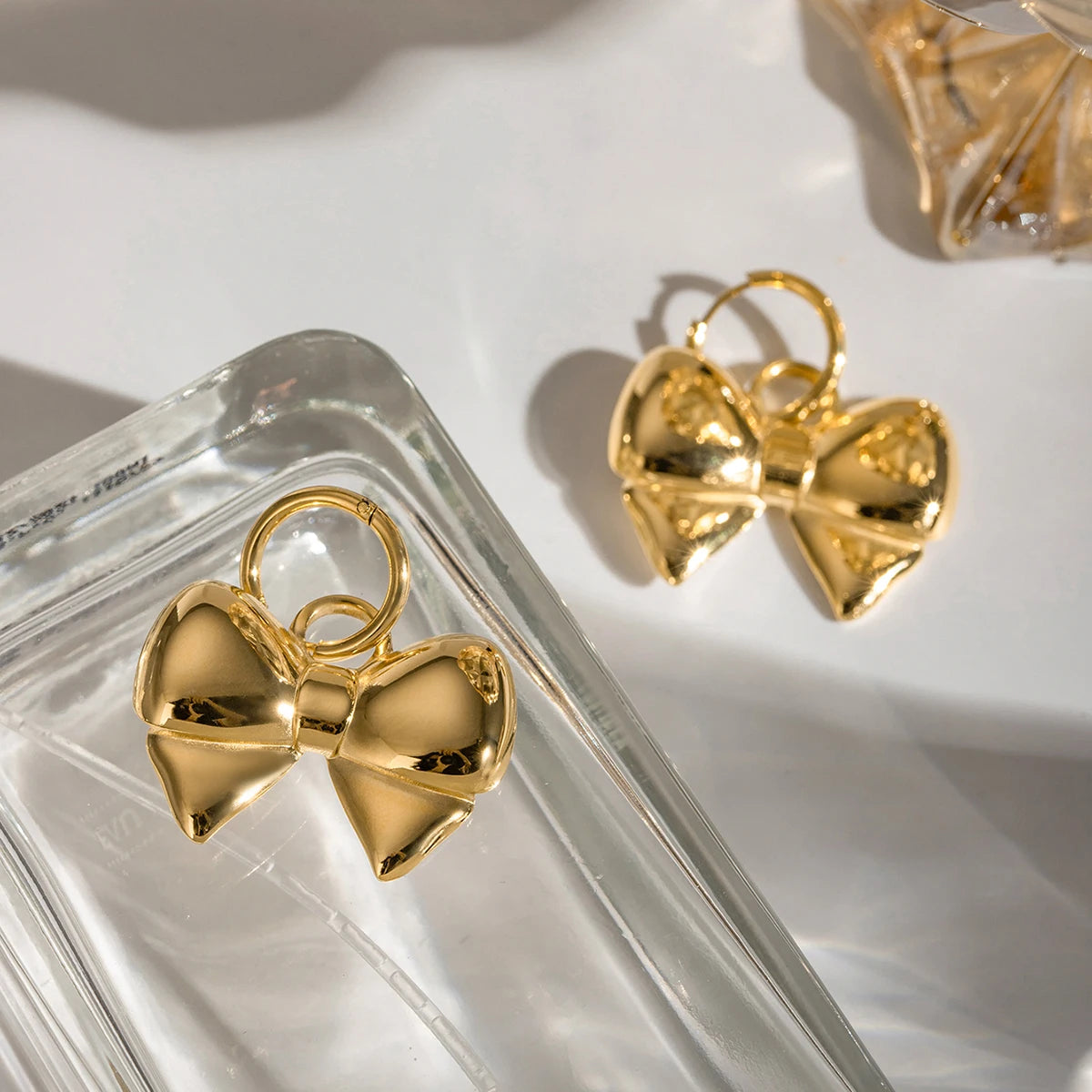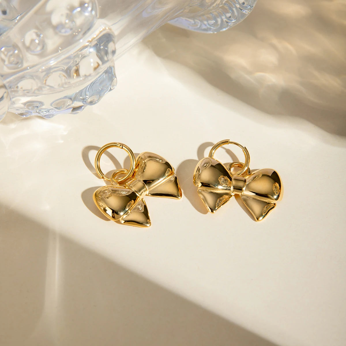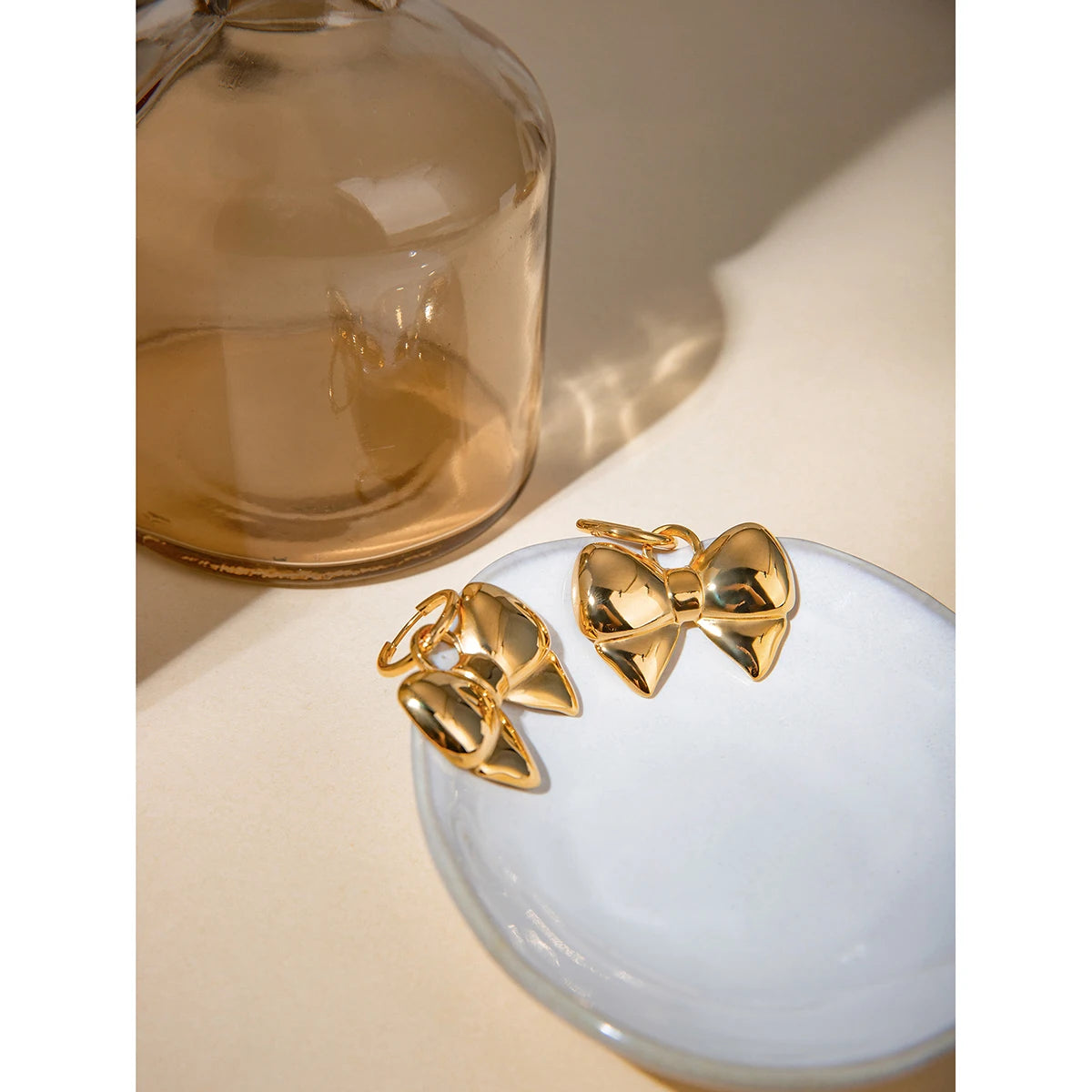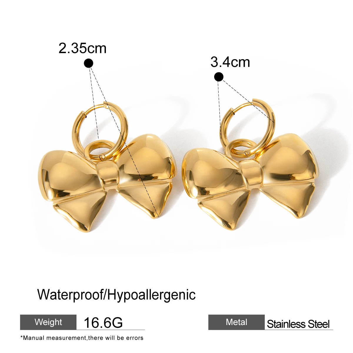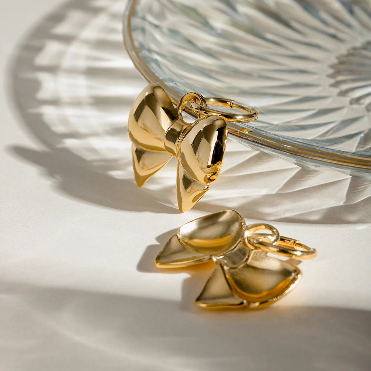 ステンレス304 低ニッケル 水に濡れても錆びにくい 18Kゴールドメッキ ピアス リボン 【YJ03760】