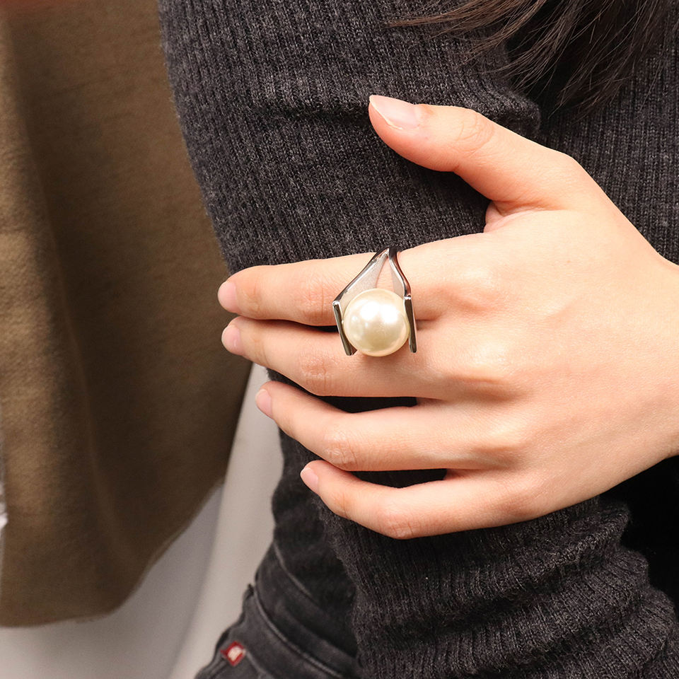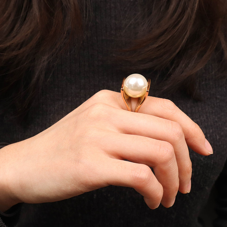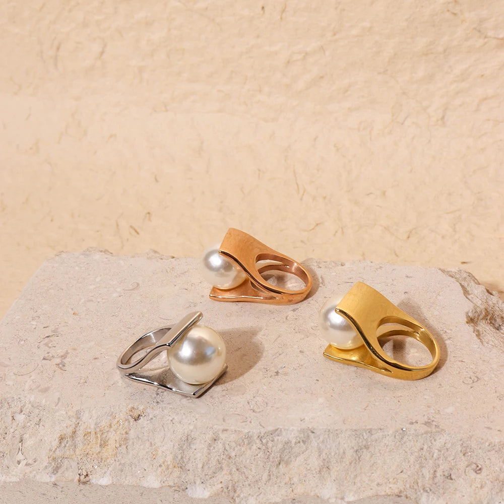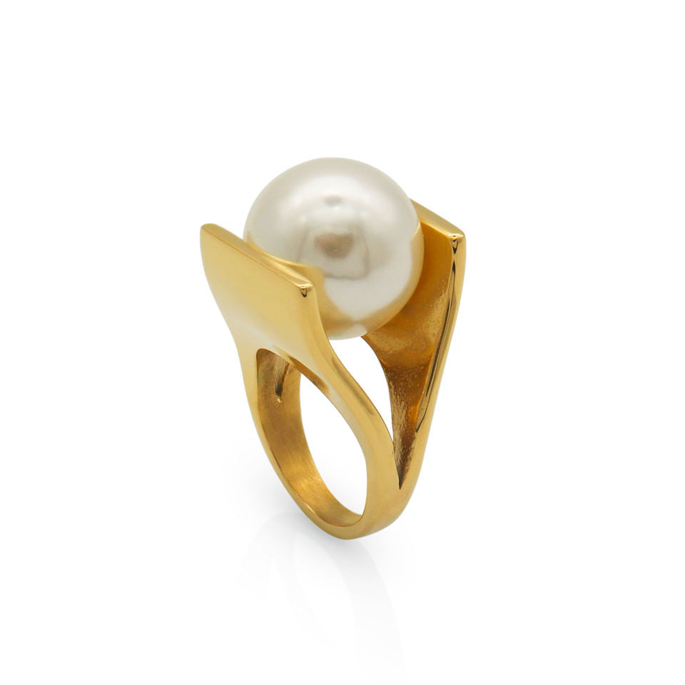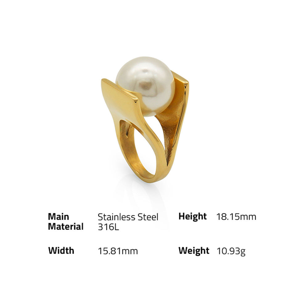 316Lサージカルステンレス 18Kゴールドメッキ リング チャンキー パール【NY00825】