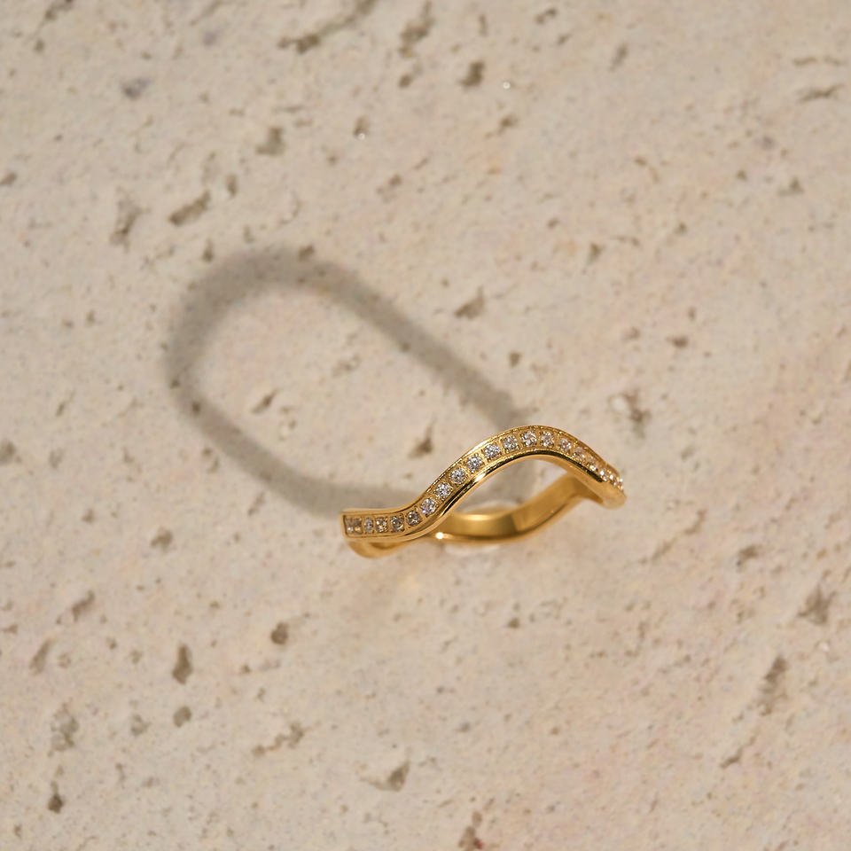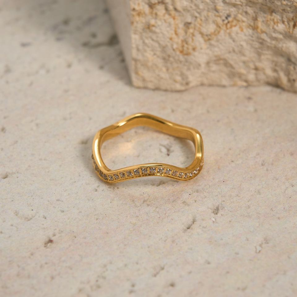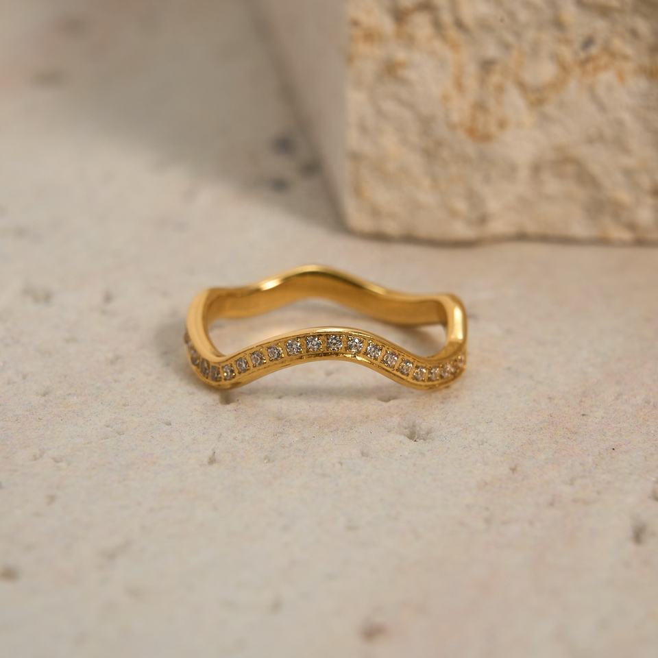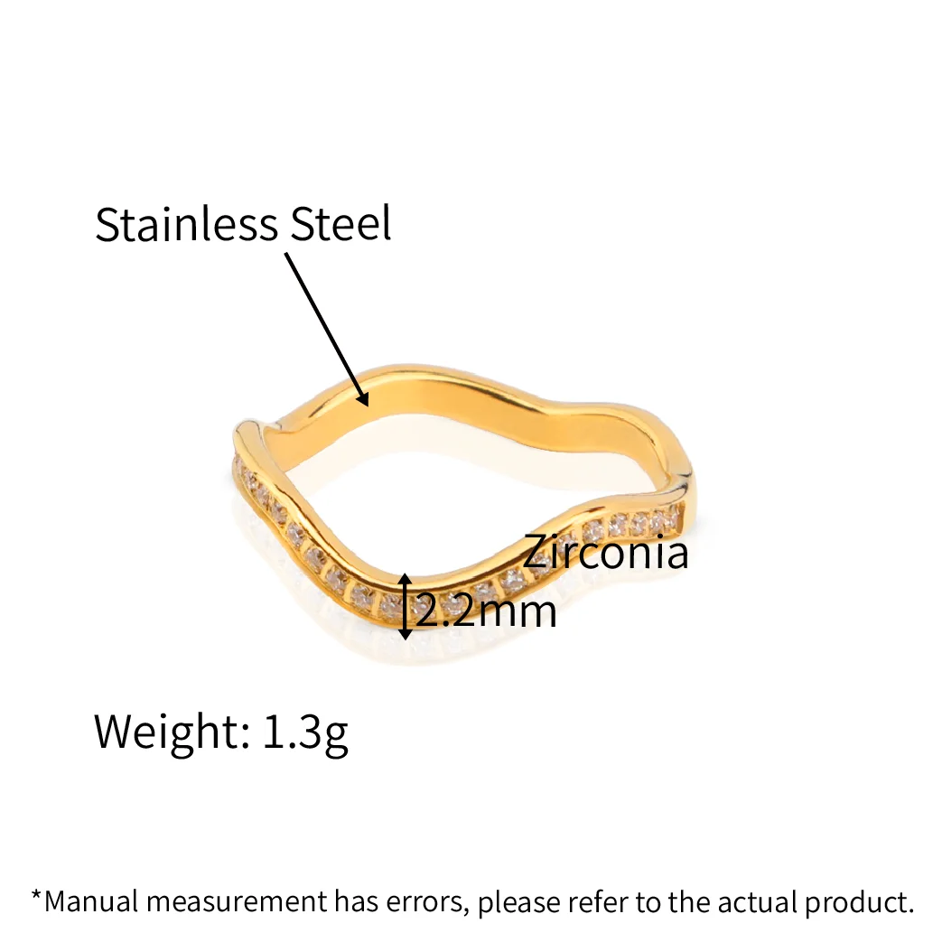 316Lサージカルステンレス リング ウェーブ ジルコニア【NY00861】