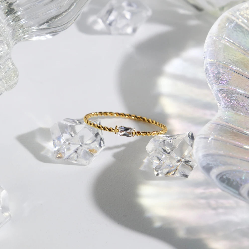 316Lサージカルステンレス リング スクエア ジルコニア 【NY00261】