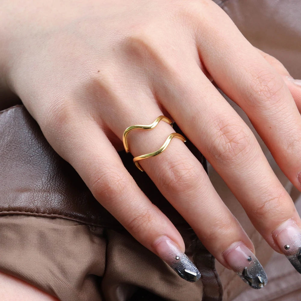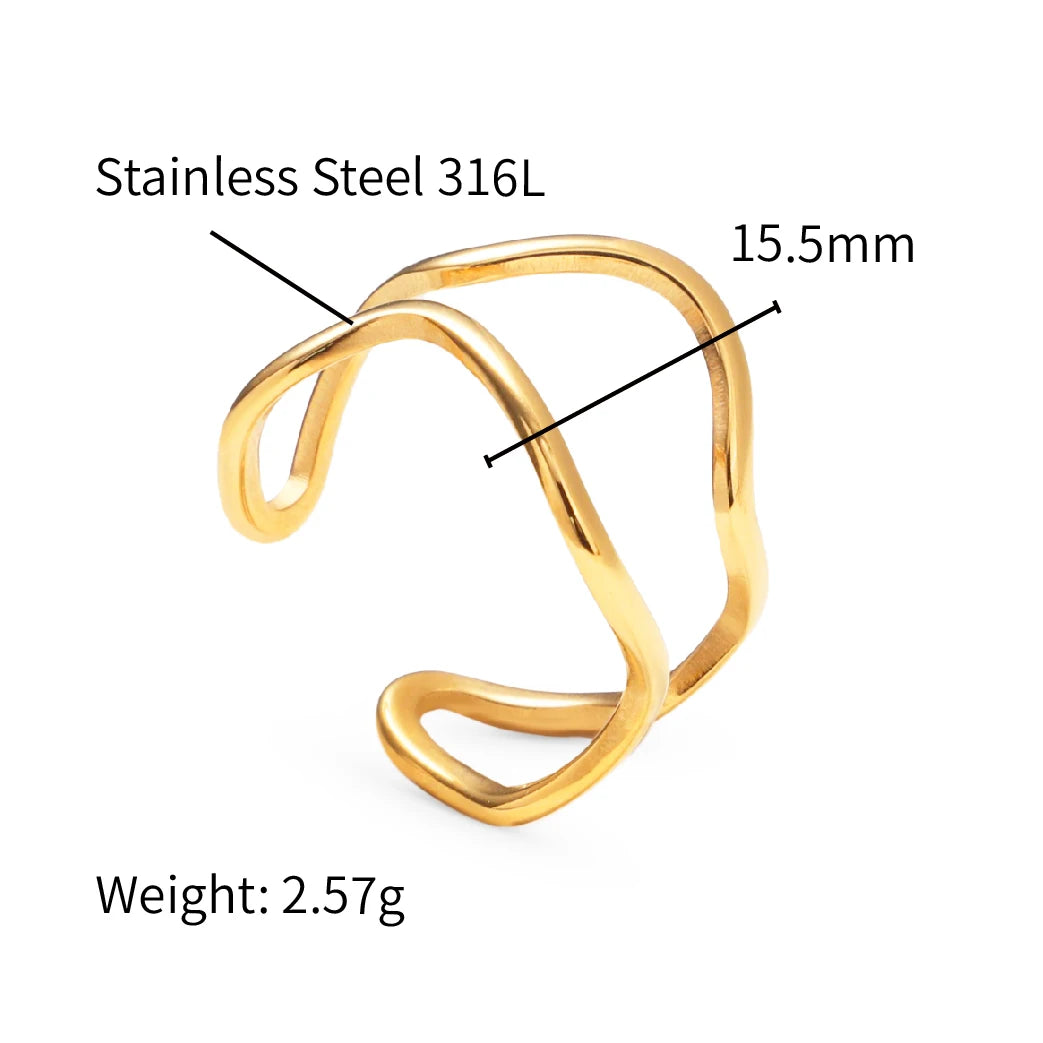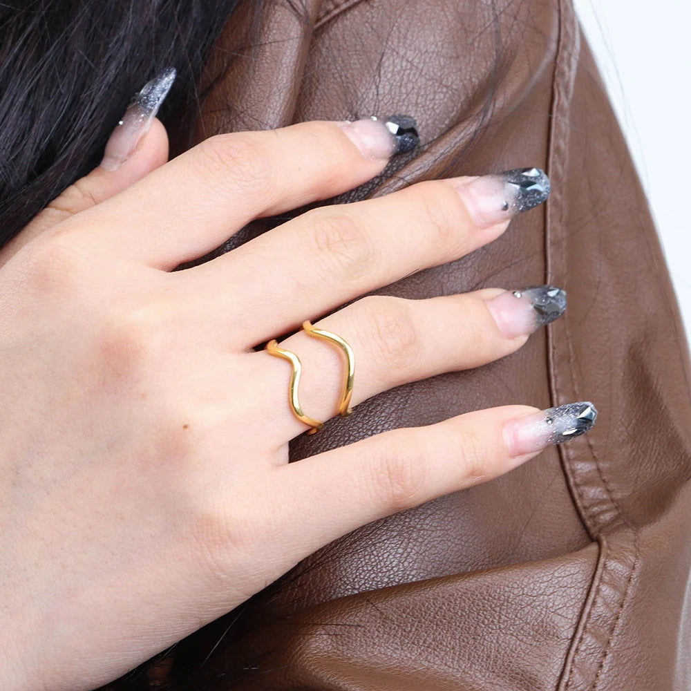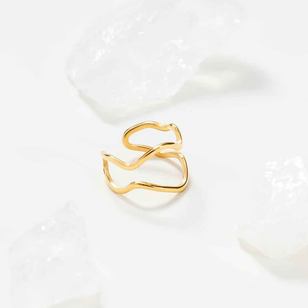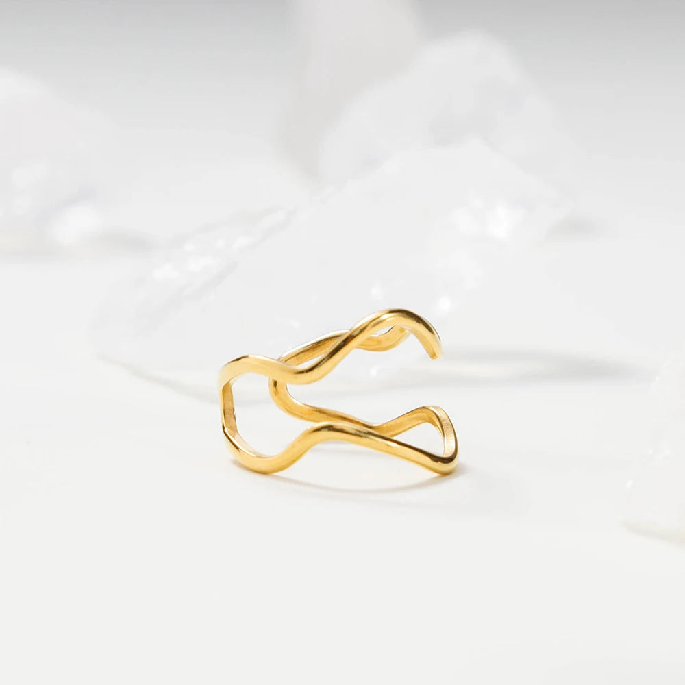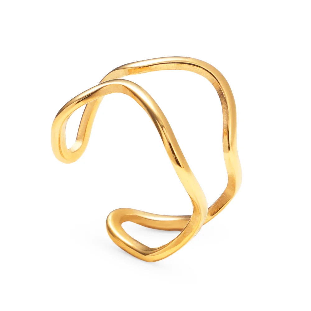 316Lサージカルステンレス 18Kゴールドメッキ リング 2層 ウェーブ 【NY01370】