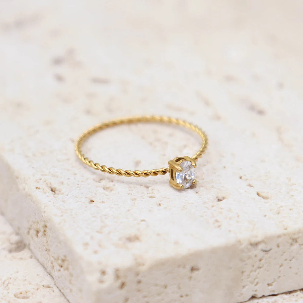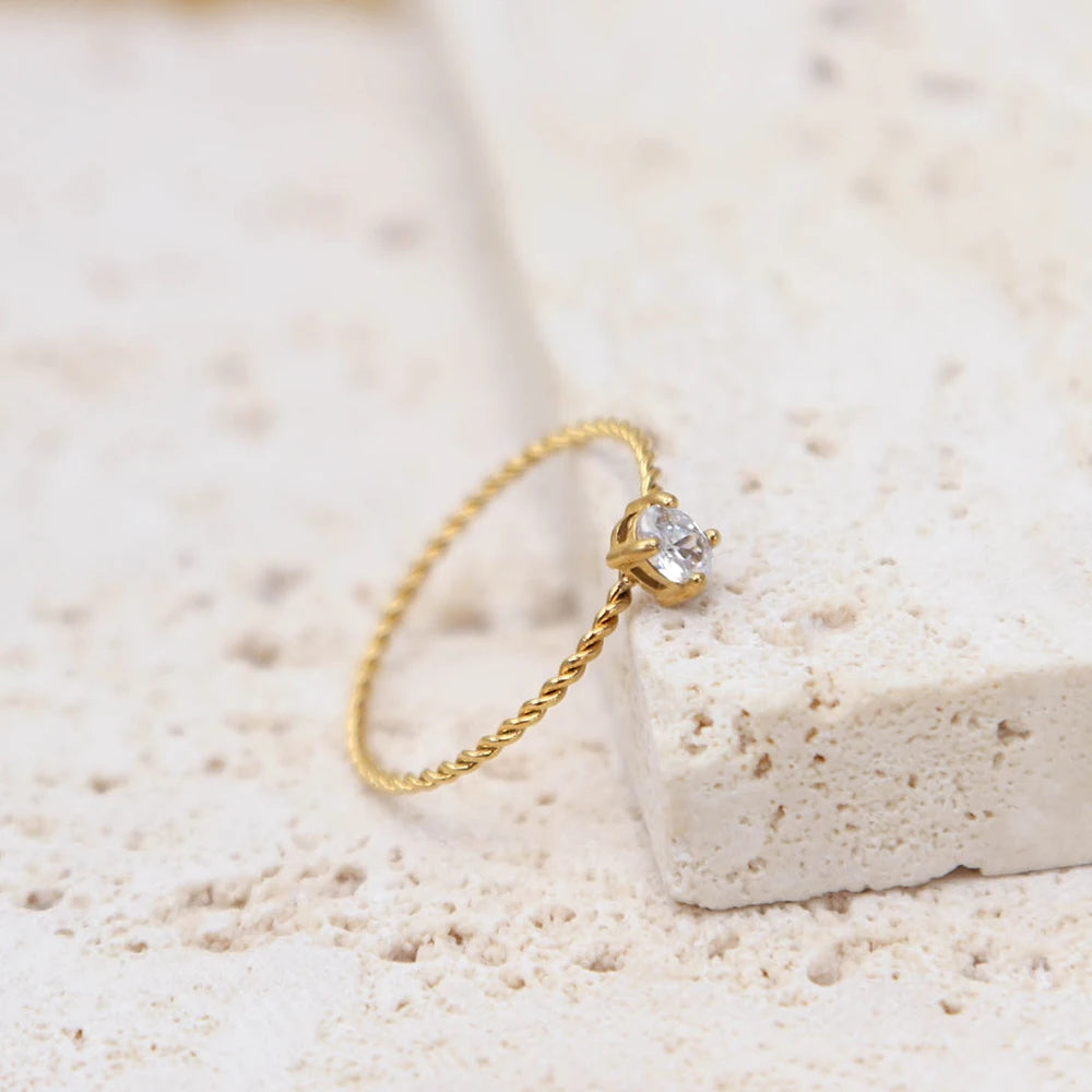 316Lサージカルステンレス 18Kゴールドメッキ リング ツイスト ジルコニア 【NY01495】