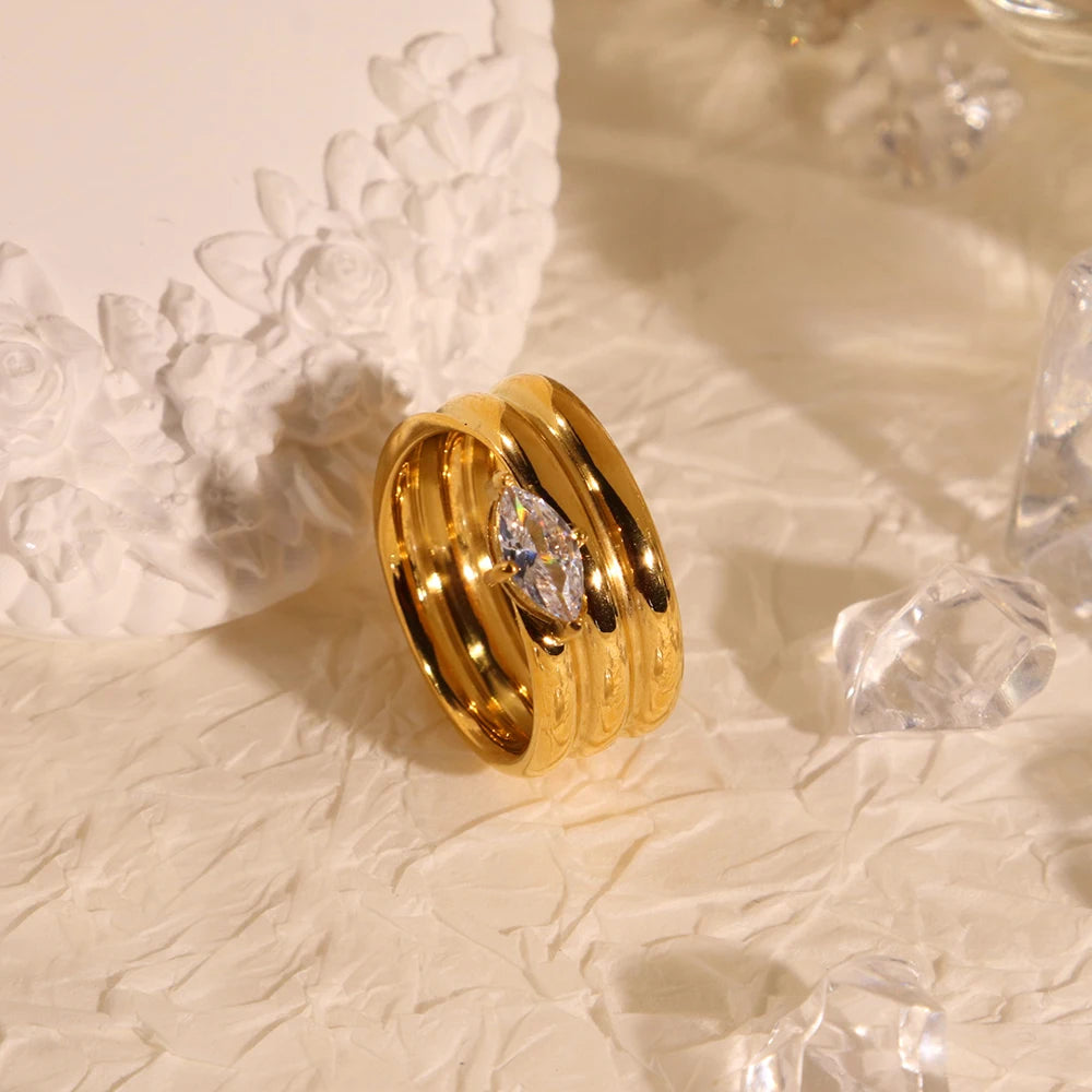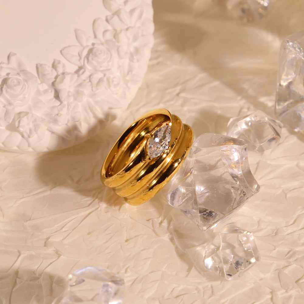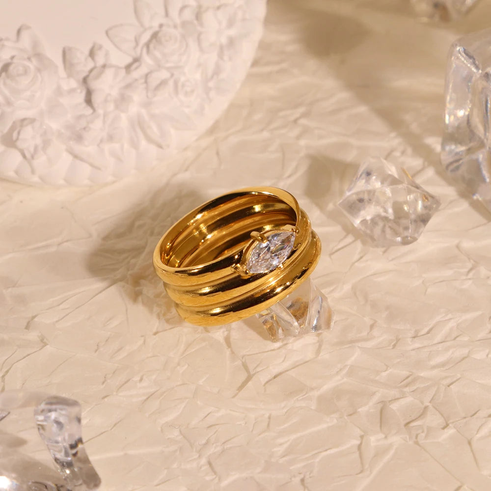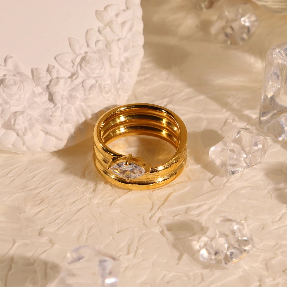 316Lサージカルステンレス リング ジルコニア 3層【NY01517】