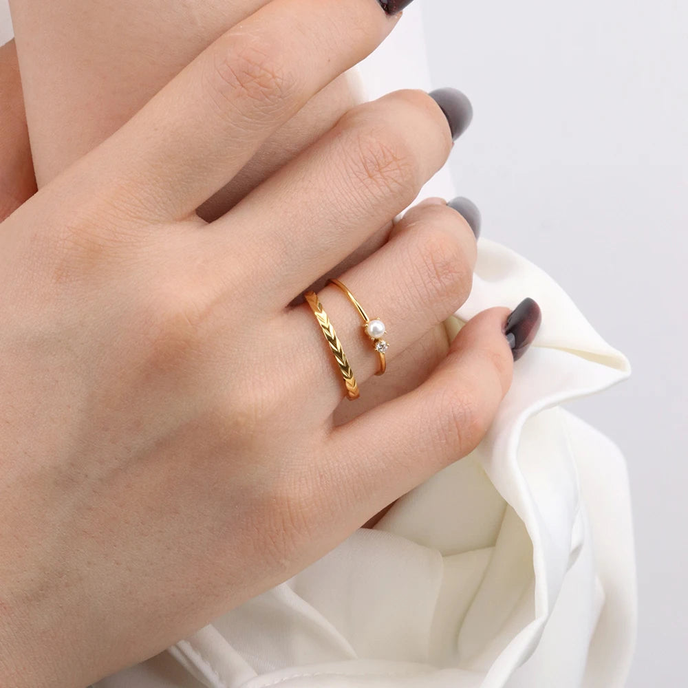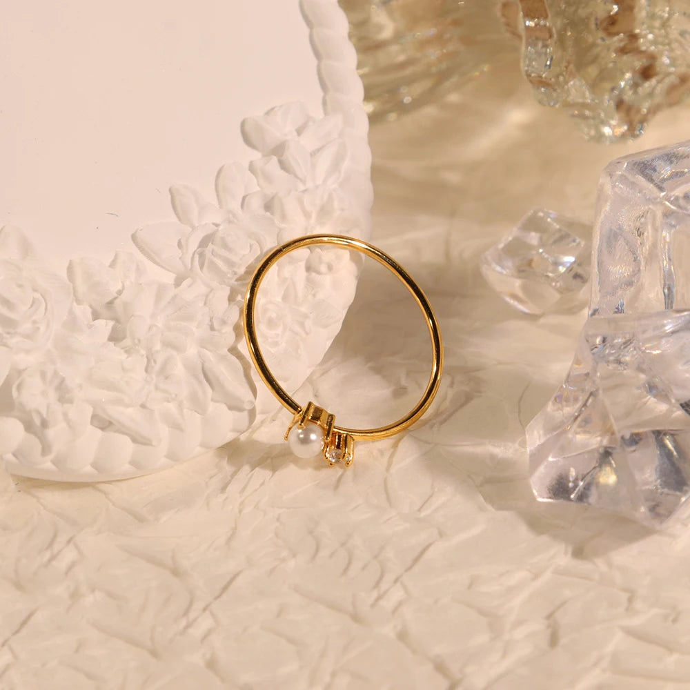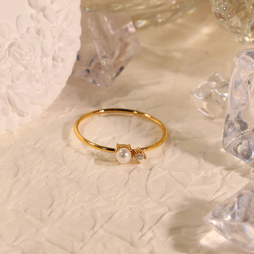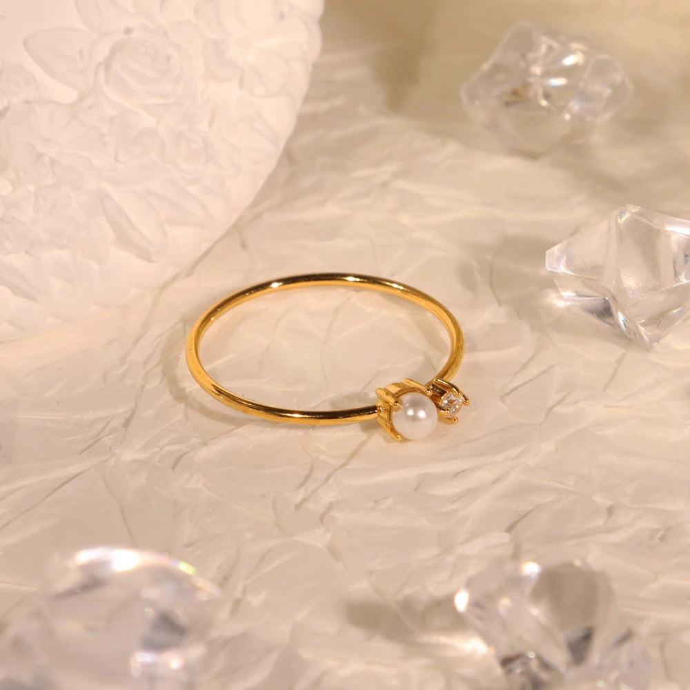 316Lサージカルステンレス リング ジルコニア パール【NY01678】