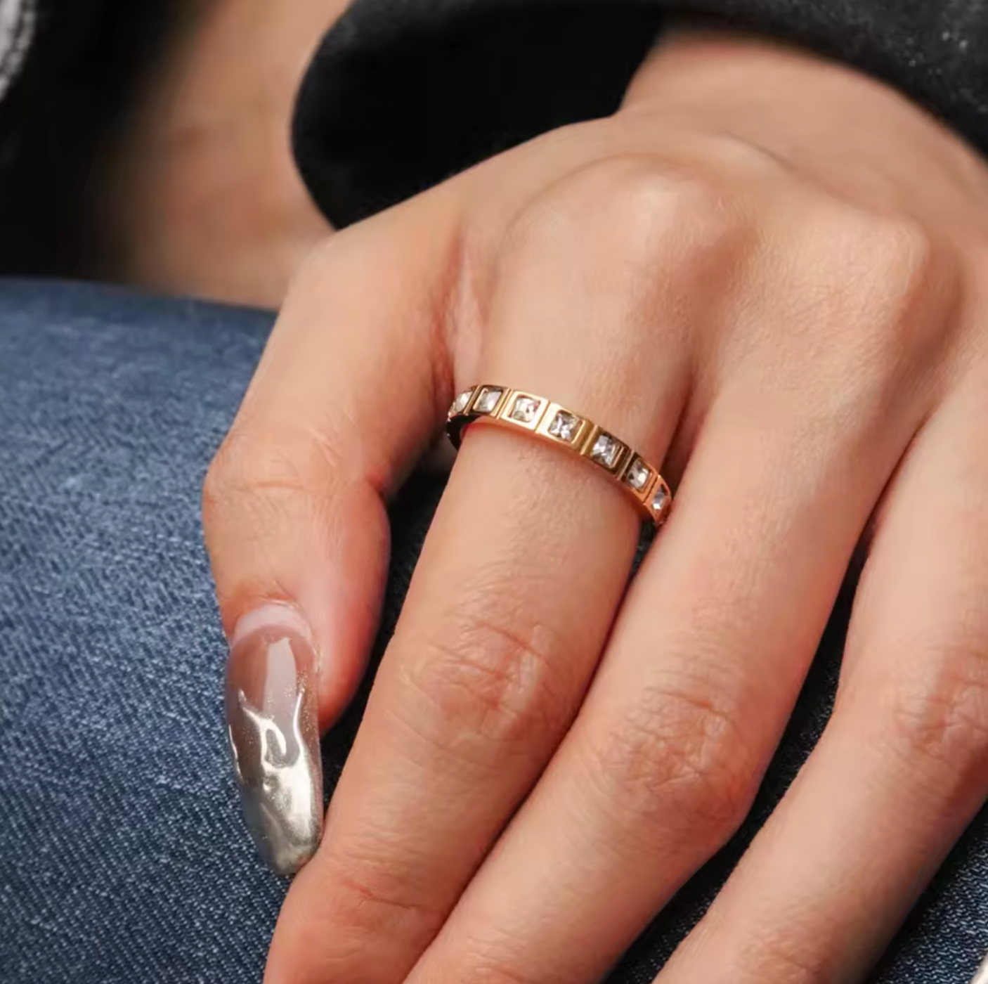 316Lサージカルステンレス リング スクエア ジルコニア 【NY00261】