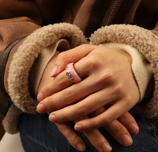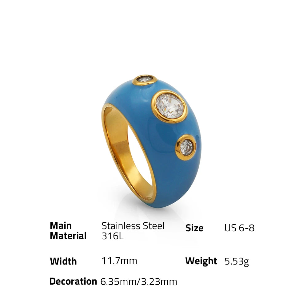 316Lサージカルステンレス リング ジルコニア エナメル【NY01732】