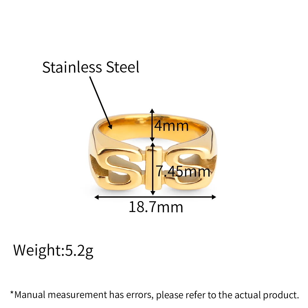 316Lサージカルステンレス 18Kゴールドメッキ リング アルファベット SIS 【NY01746】