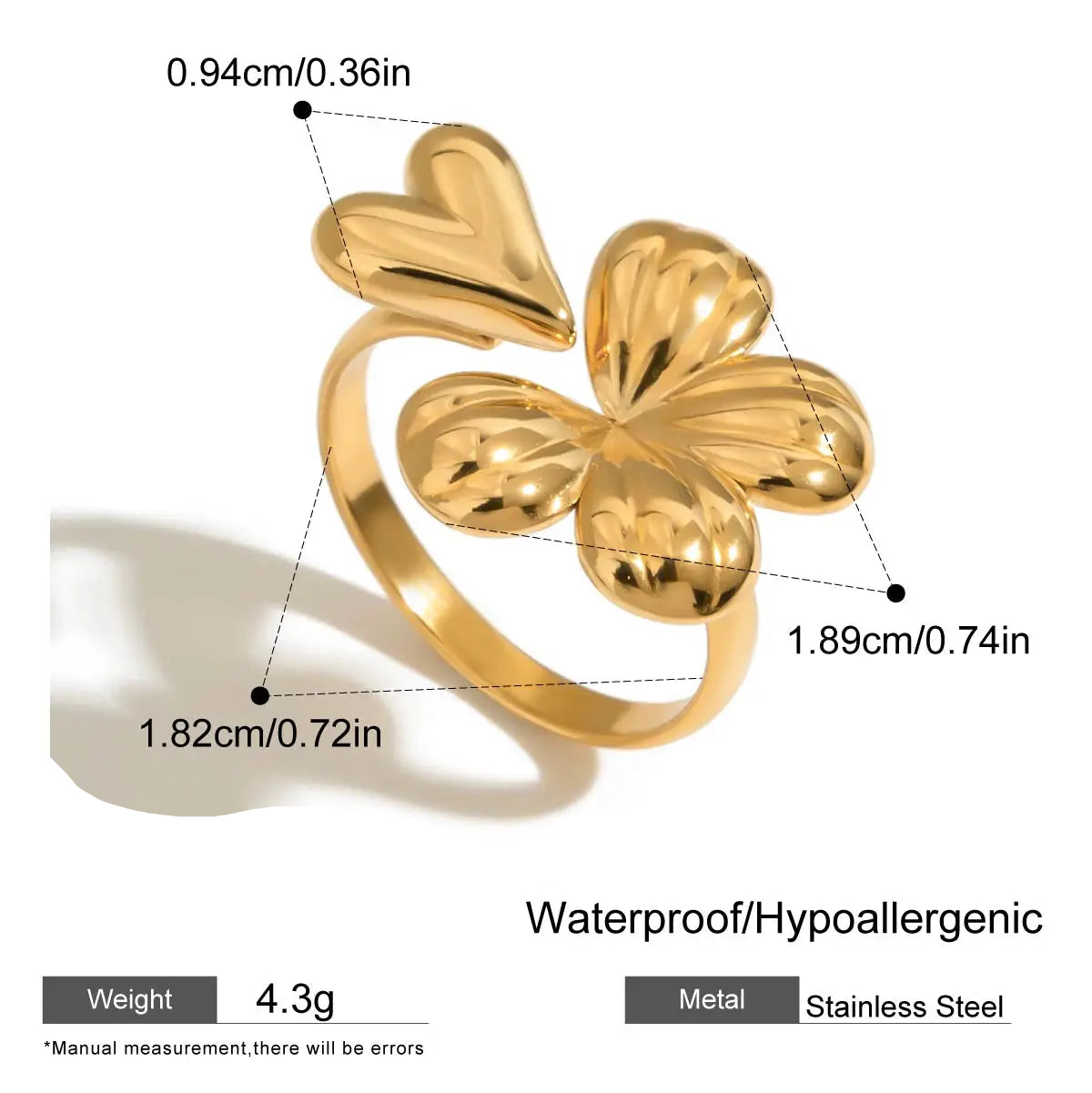 ステンレス304 ニッケルフリー 水に濡れても錆びにくい 18Kゴールドメッキ リング ハート 【YJ00098】