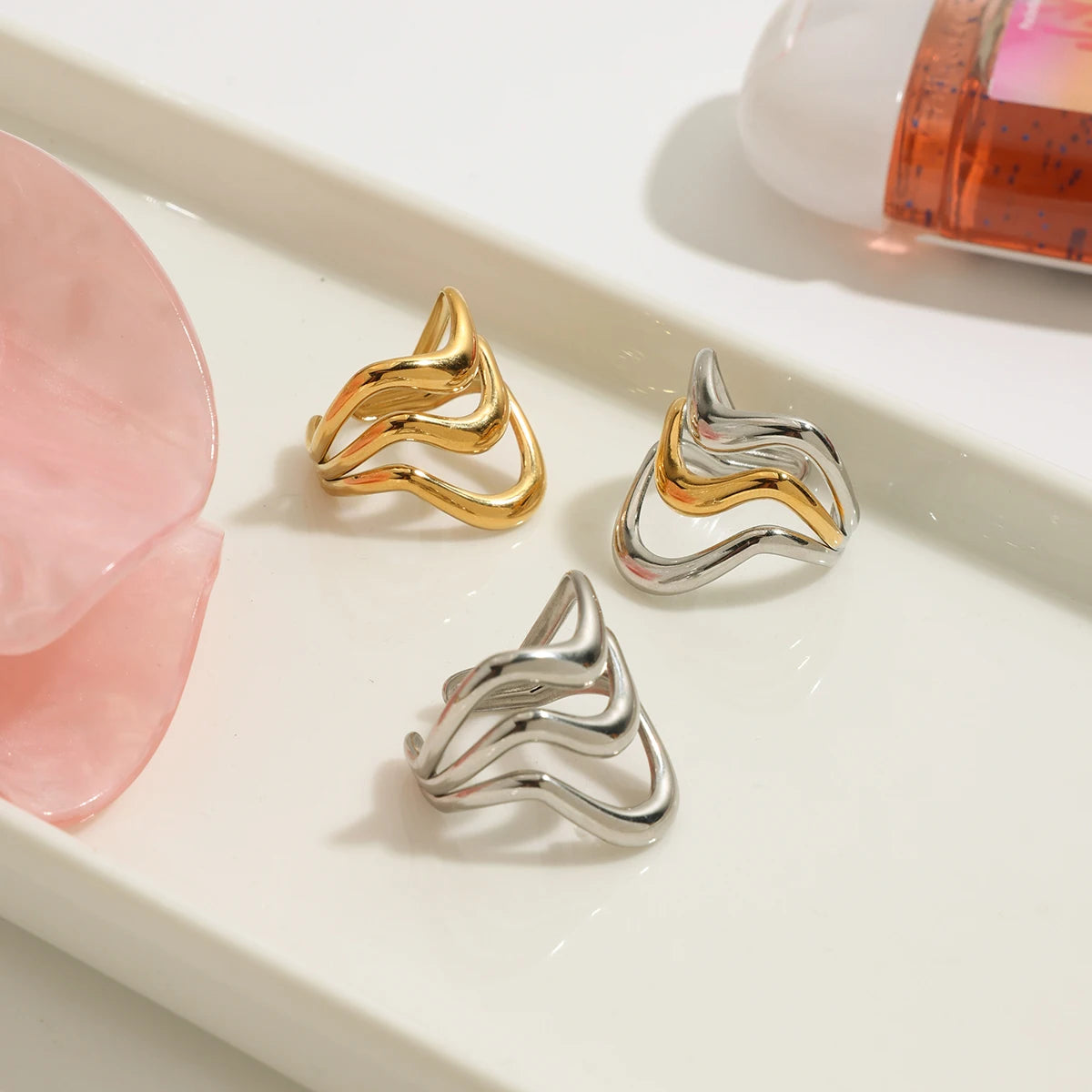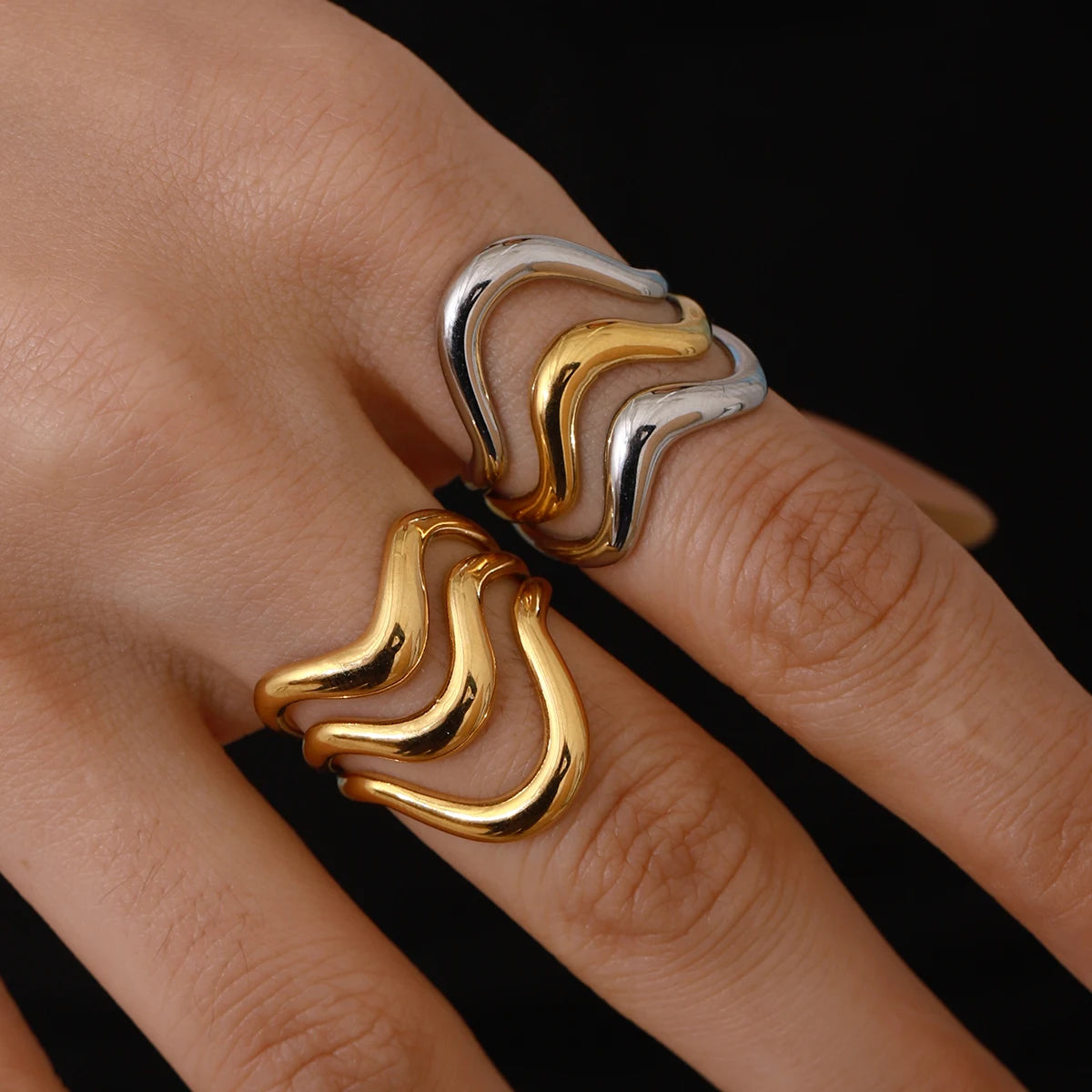 ステンレス304 ニッケルフリー 水に濡れても錆びにくい 18Kゴールドメッキ リング 【YJ00361】
