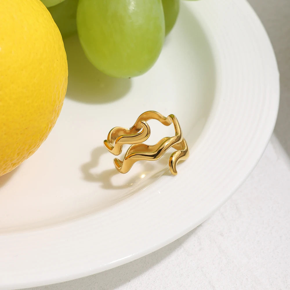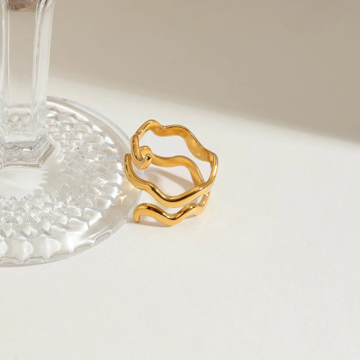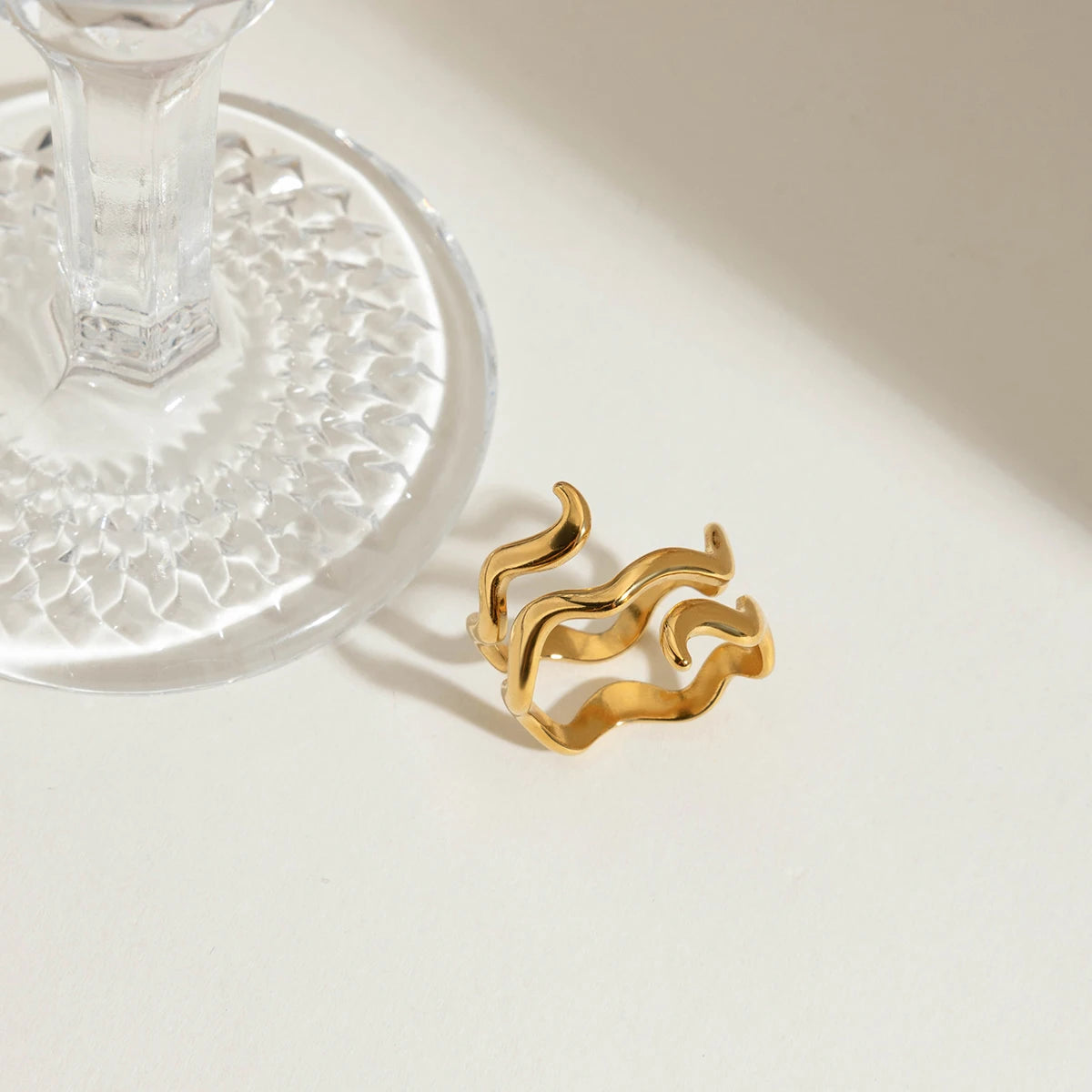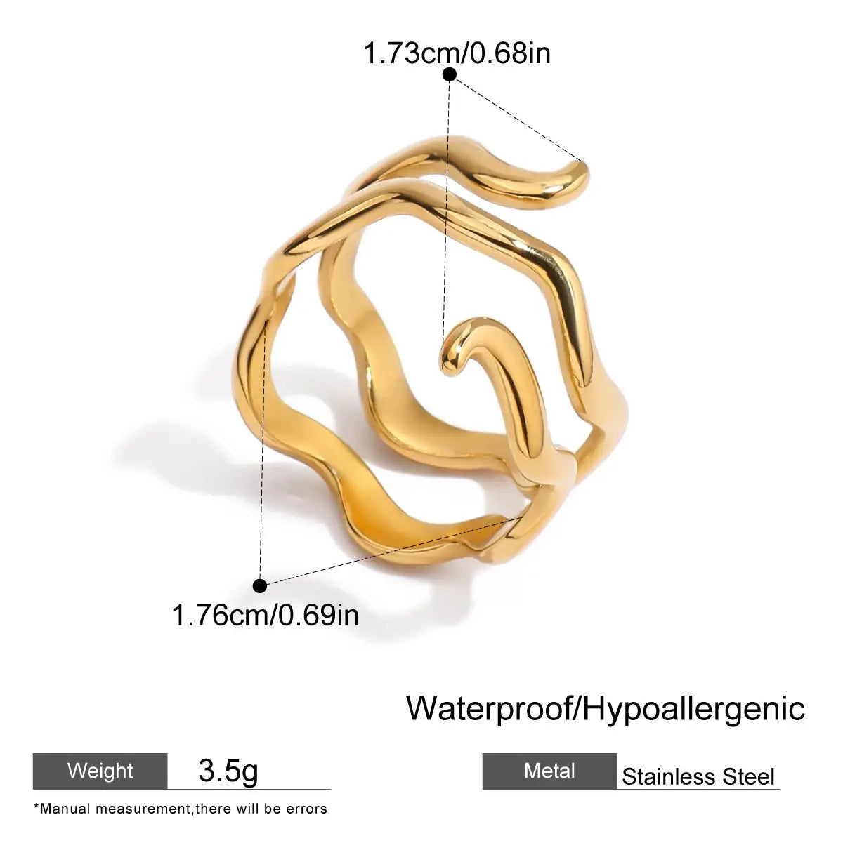 ステンレス304 ニッケルフリー 水に濡れても錆びにくい 18Kゴールドメッキ リング 【YJ00389】