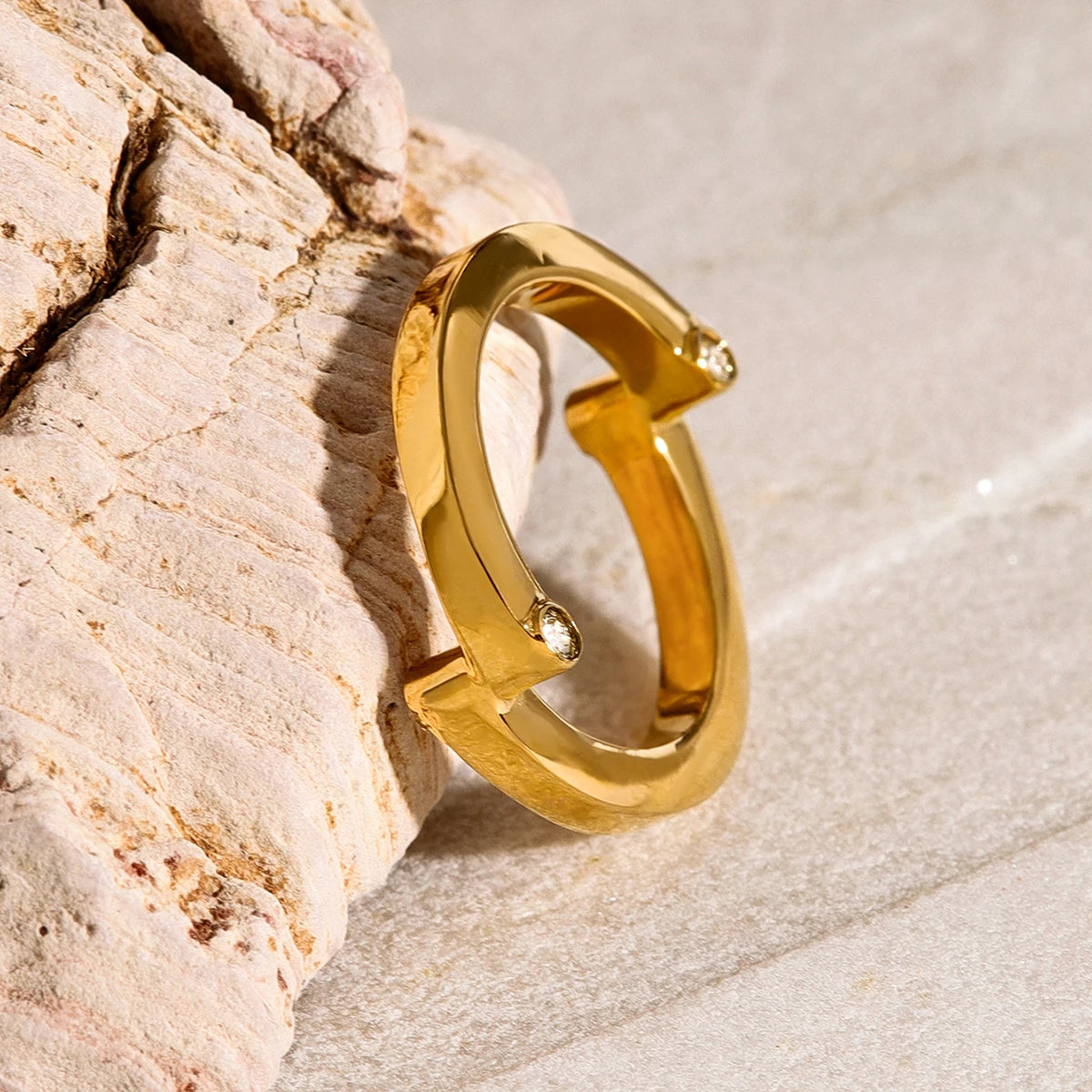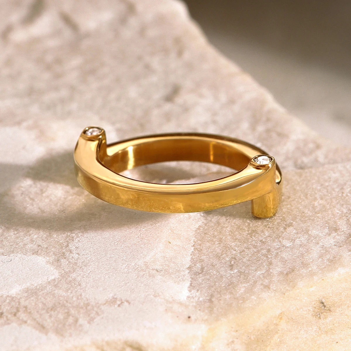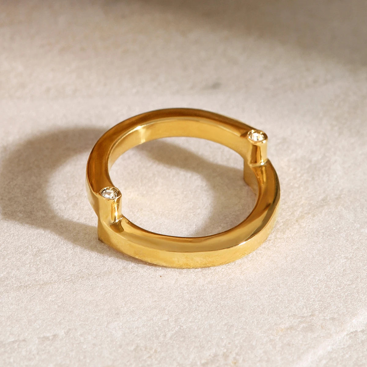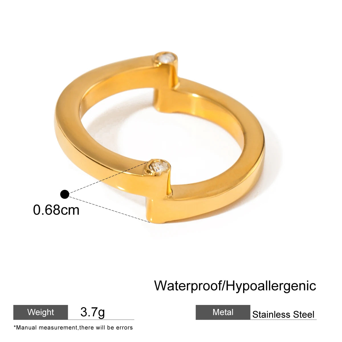 ステンレス304 ニッケルフリー 水に濡れても錆びにくい 18Kゴールドメッキ リング ジルコニア【YJ00530】
