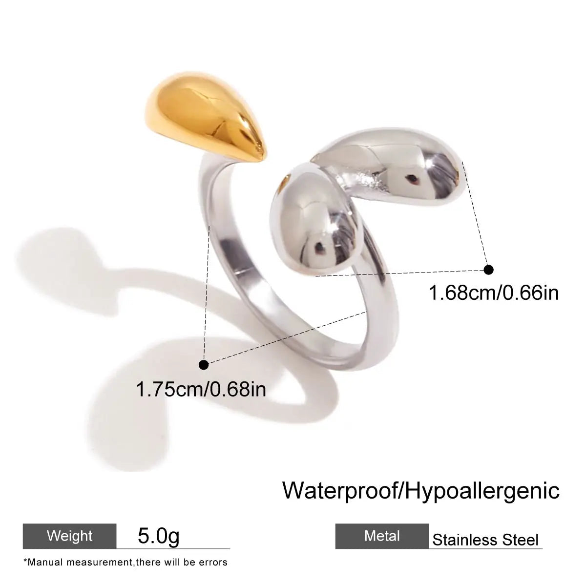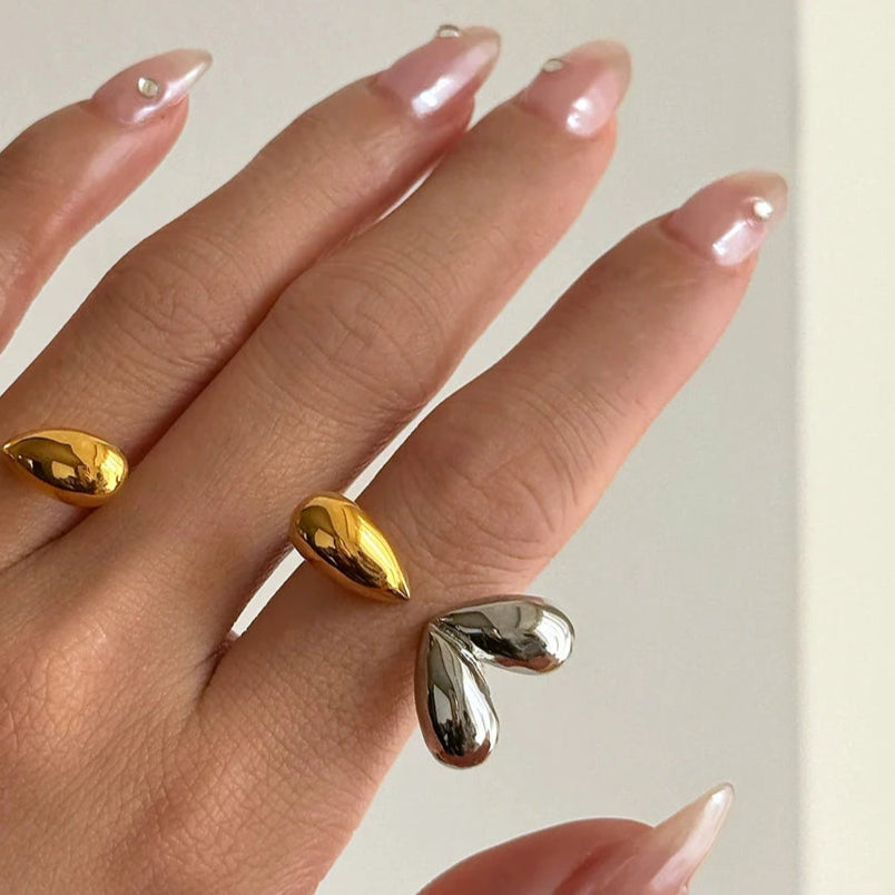 ステンレス304 ニッケルフリー 水に濡れても錆びにくい 18Kゴールドメッキ リング ハート 【YJ00559】