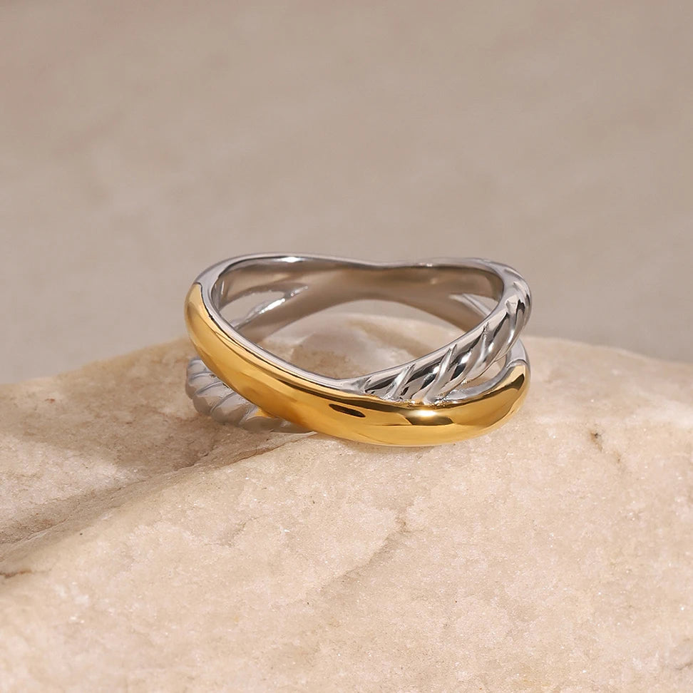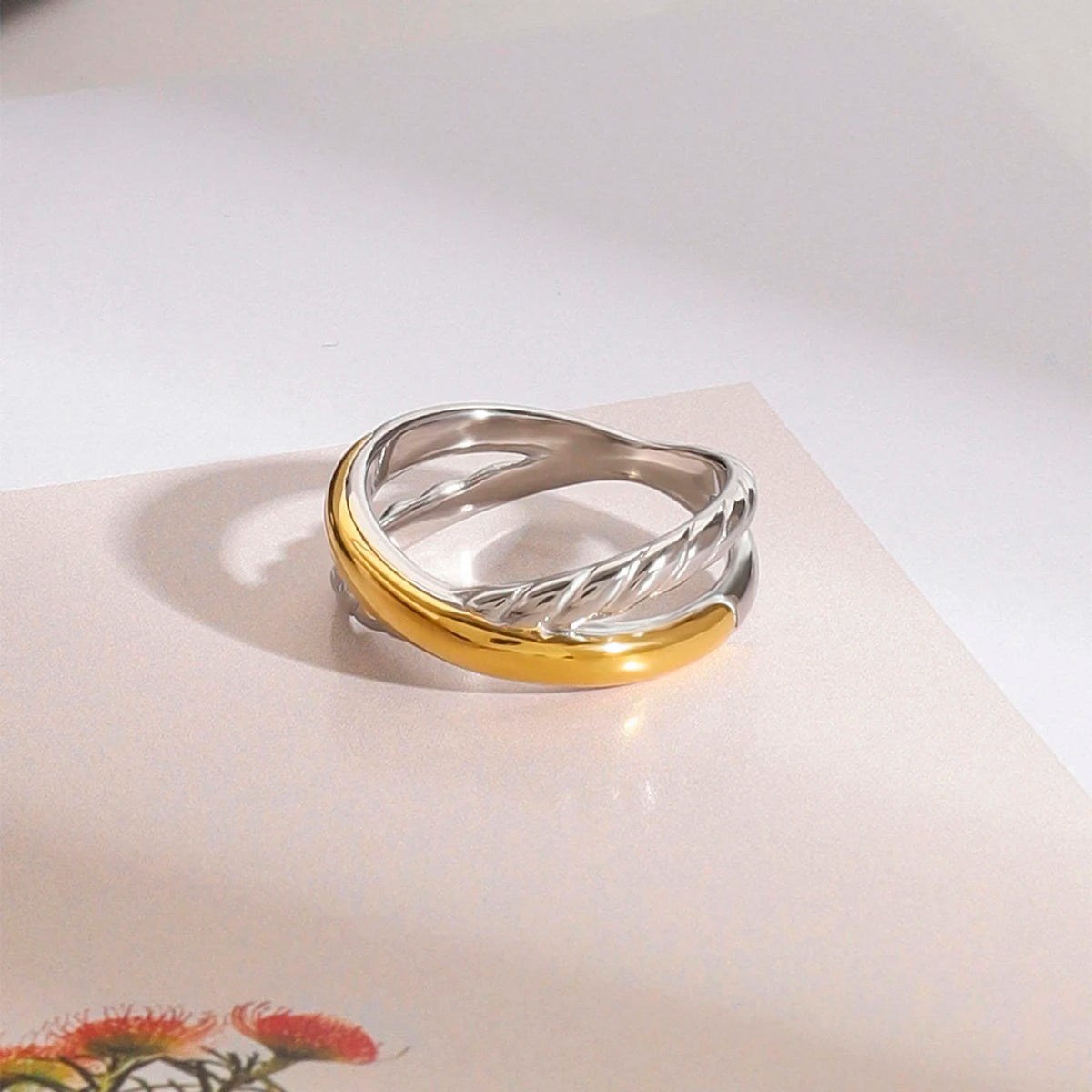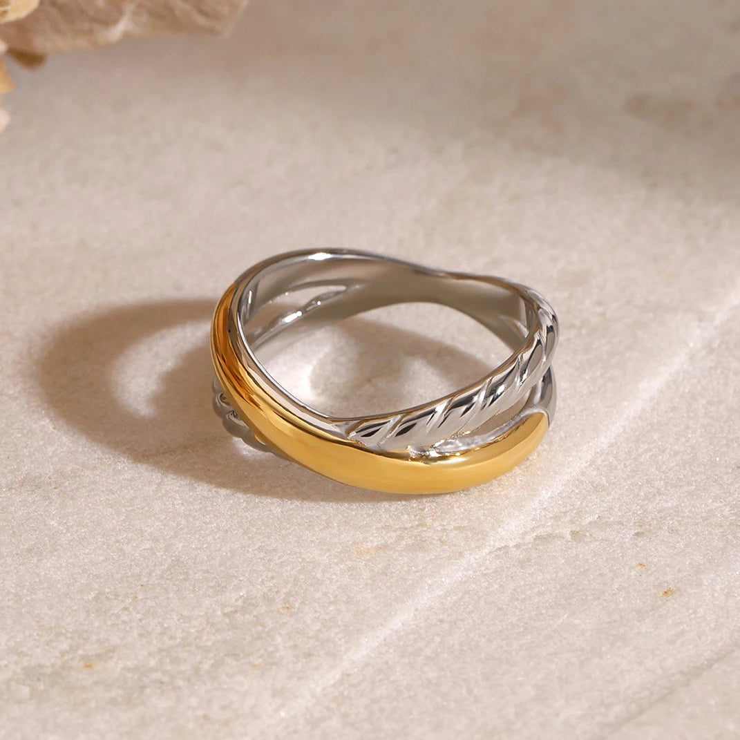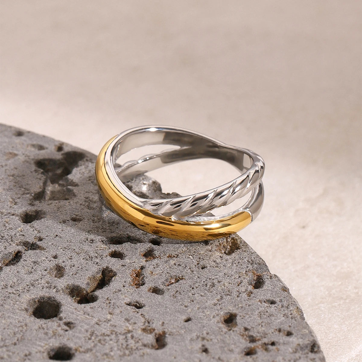 ステンレス304 ニッケルフリー 水に濡れても錆びにくい 18Kゴールドメッキ リング【YJ00637】