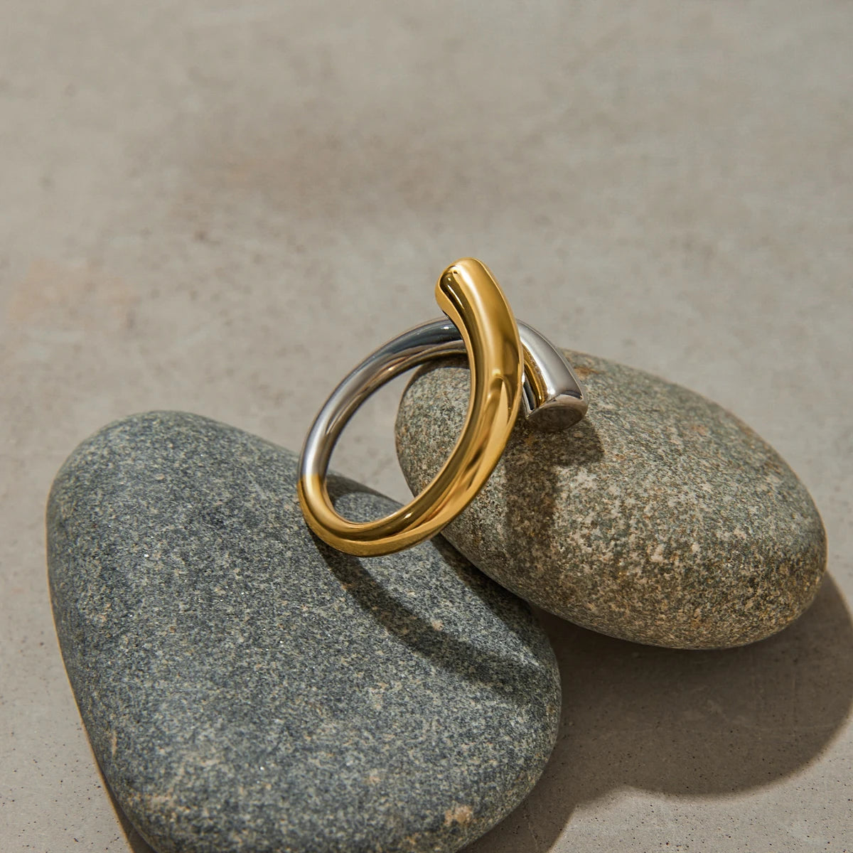 ステンレス304 ニッケルフリー 水に濡れても錆びにくい 18Kゴールドメッキ リング 【YJ00739】