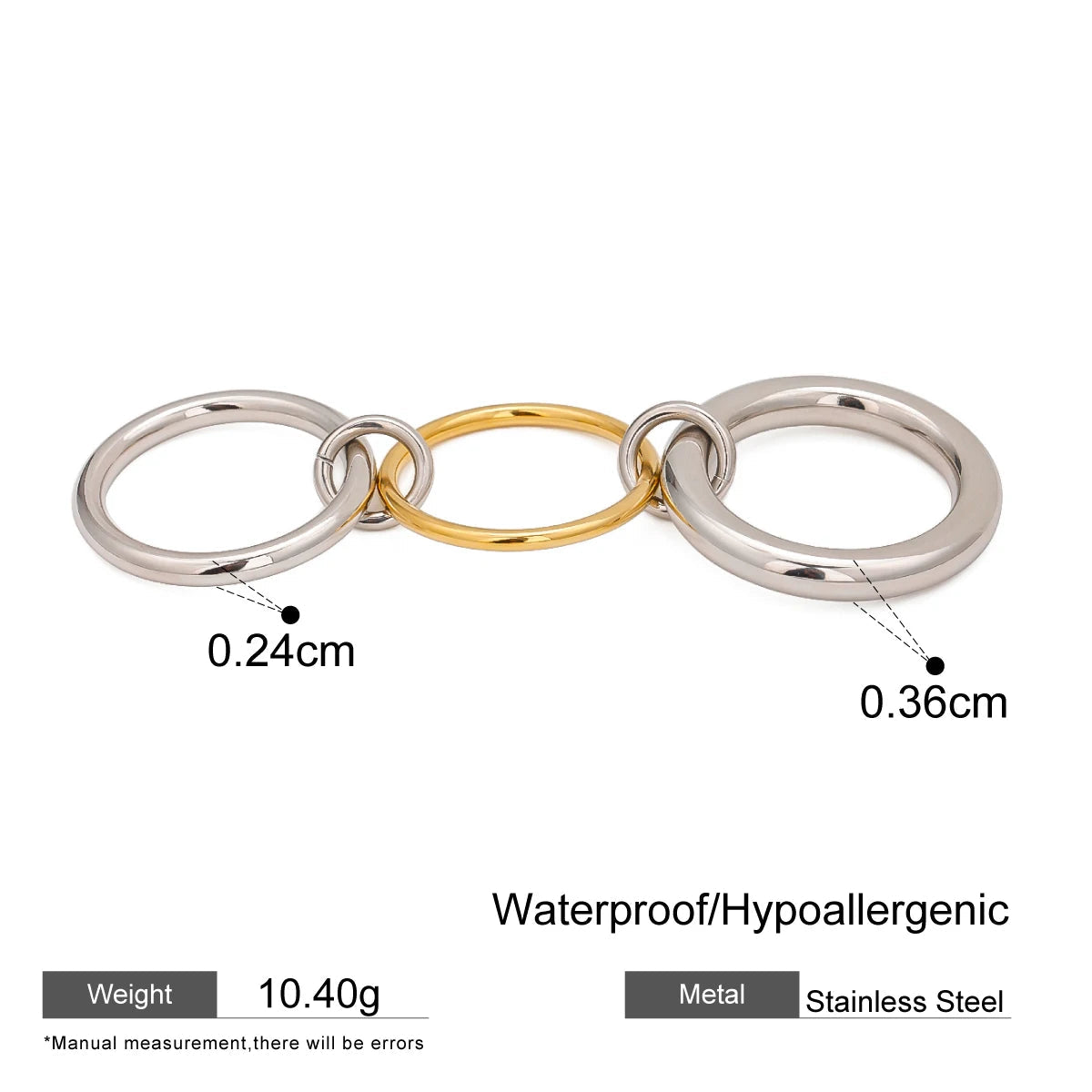 ステンレス304 ニッケルフリー 水に濡れても錆びにくい 18Kゴールドメッキ 3連 重ね付け リング 【YJ00811】
