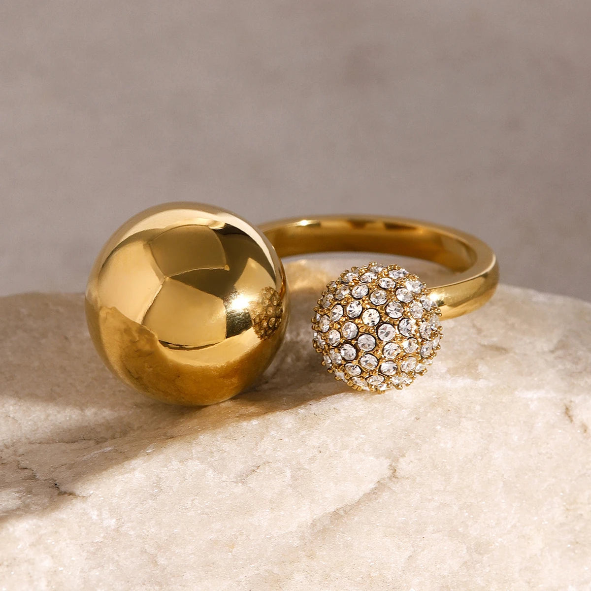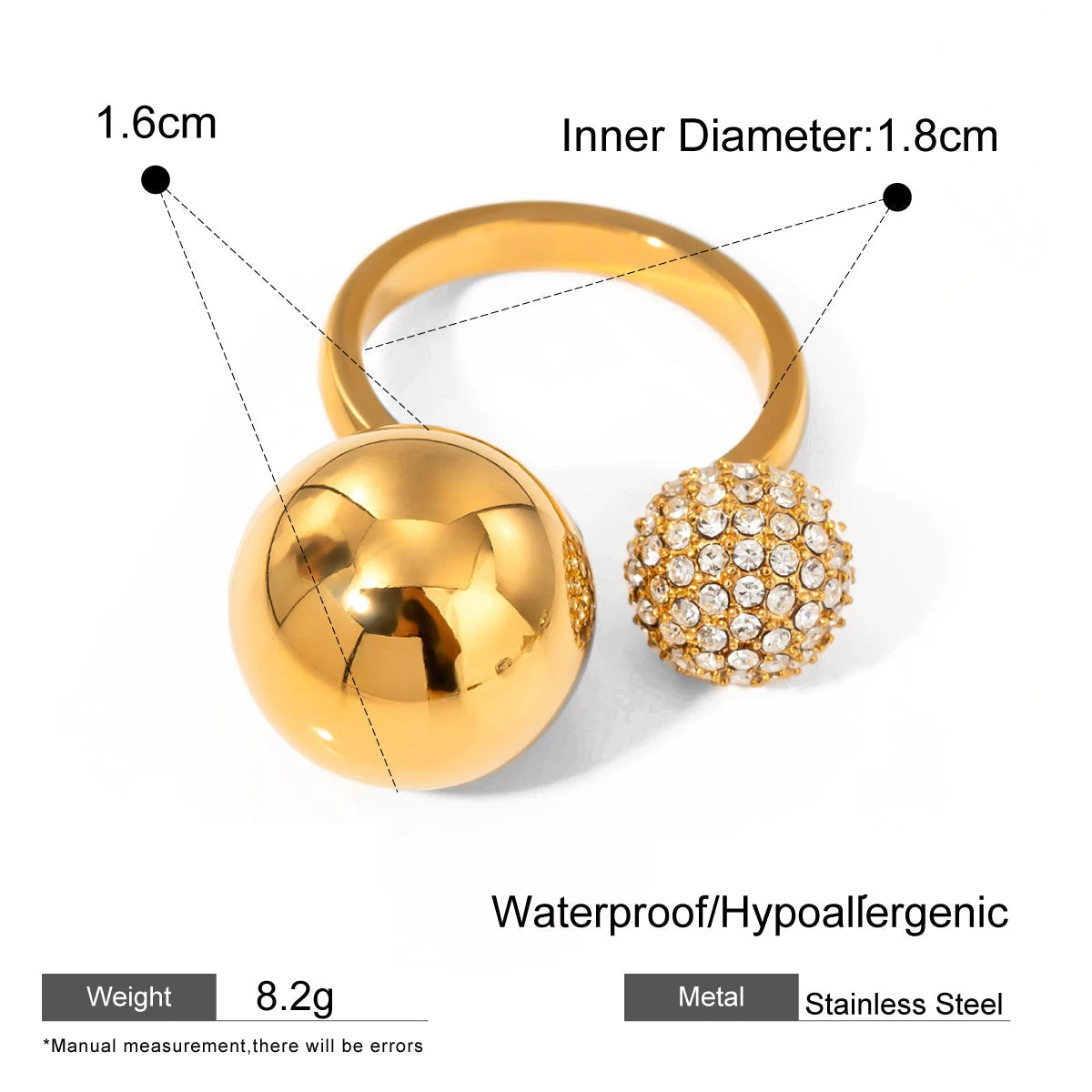 ステンレス304 ニッケルフリー 水に濡れても錆びにくい 18Kゴールドメッキ リング ボール ジルコニア【YJ00971】