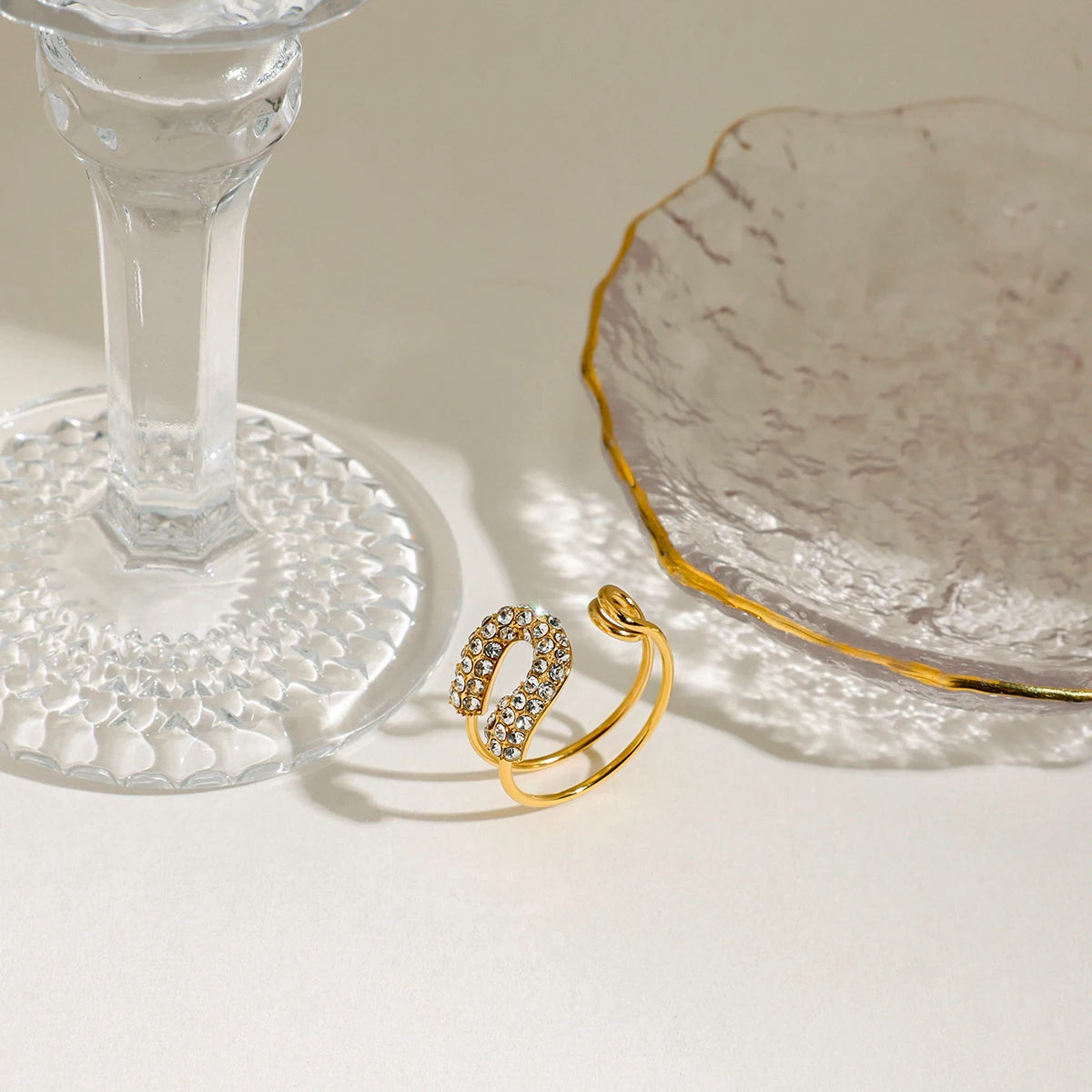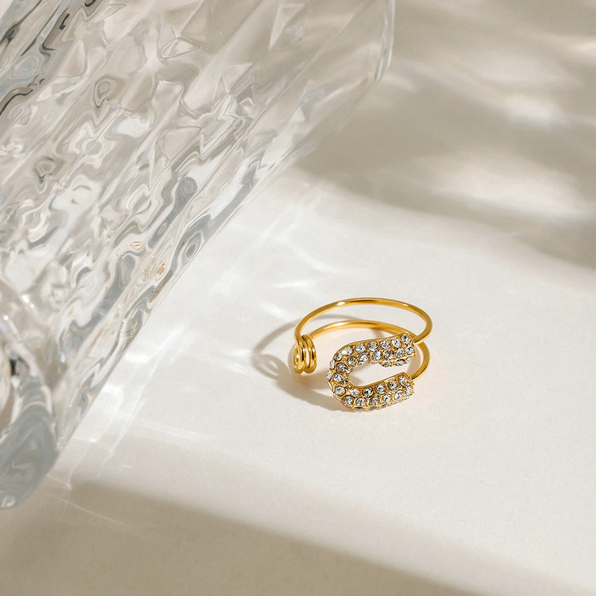 ステンレス304 ニッケルフリー 水に濡れても錆びにくい 18Kゴールドメッキ リング ジルコニア【YJ00974】