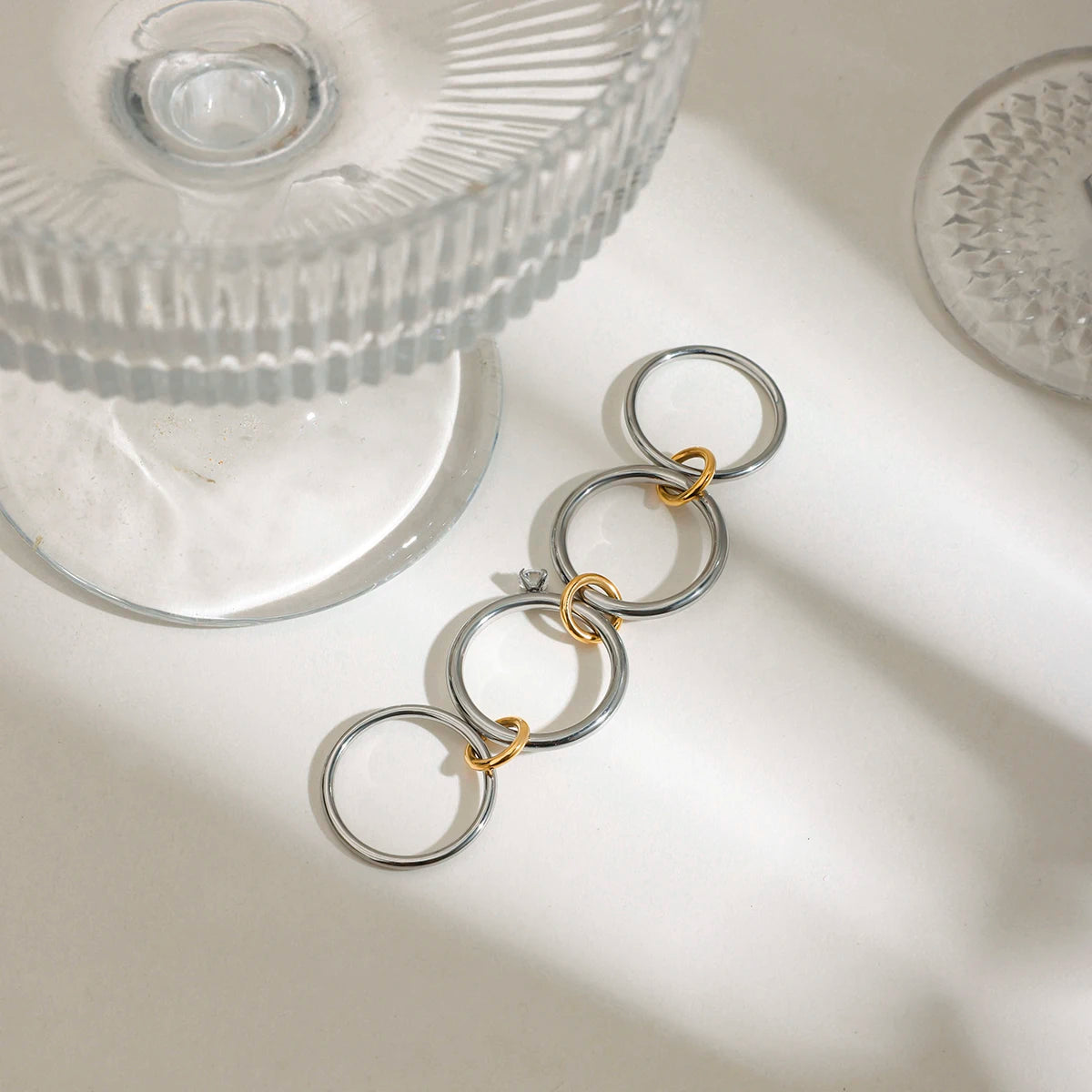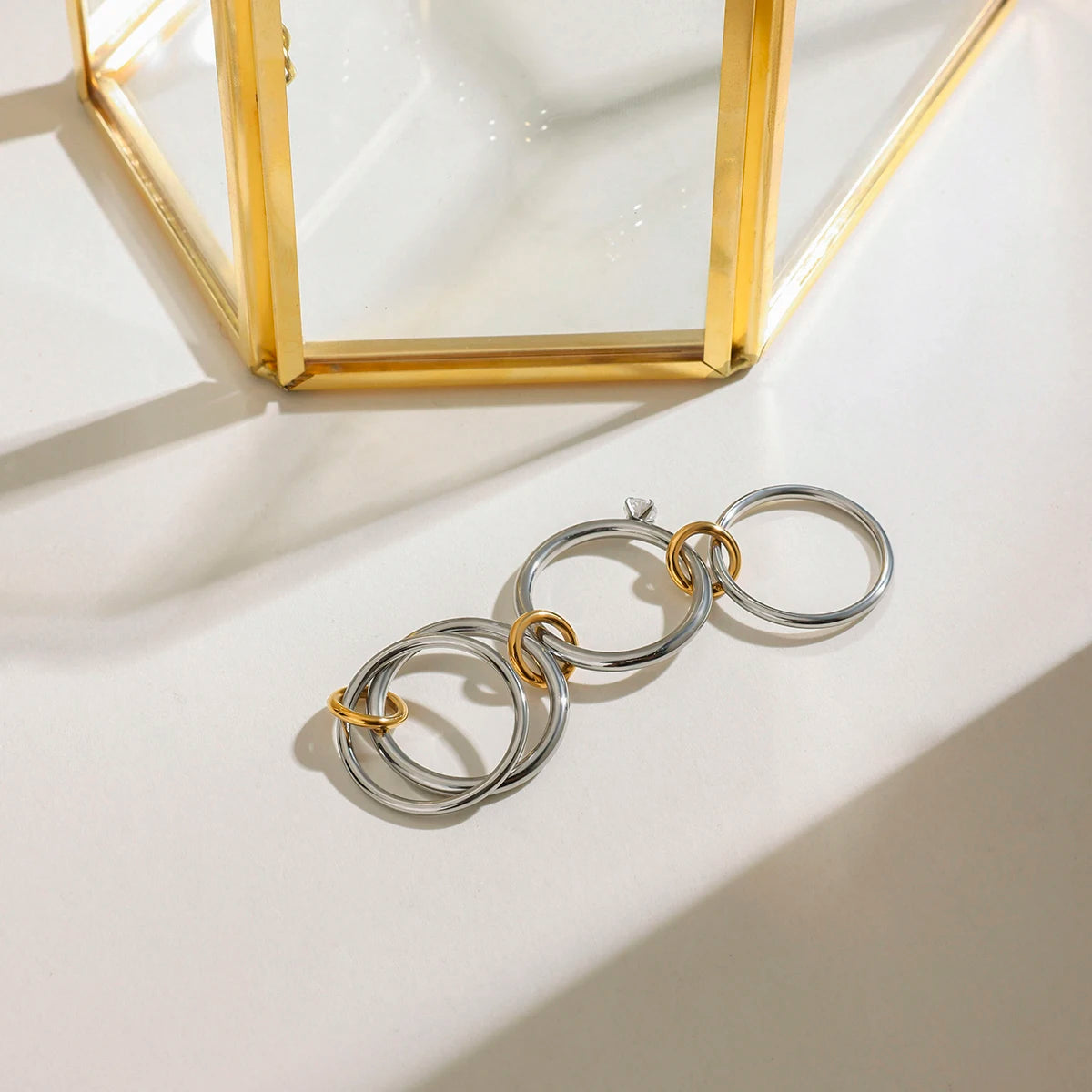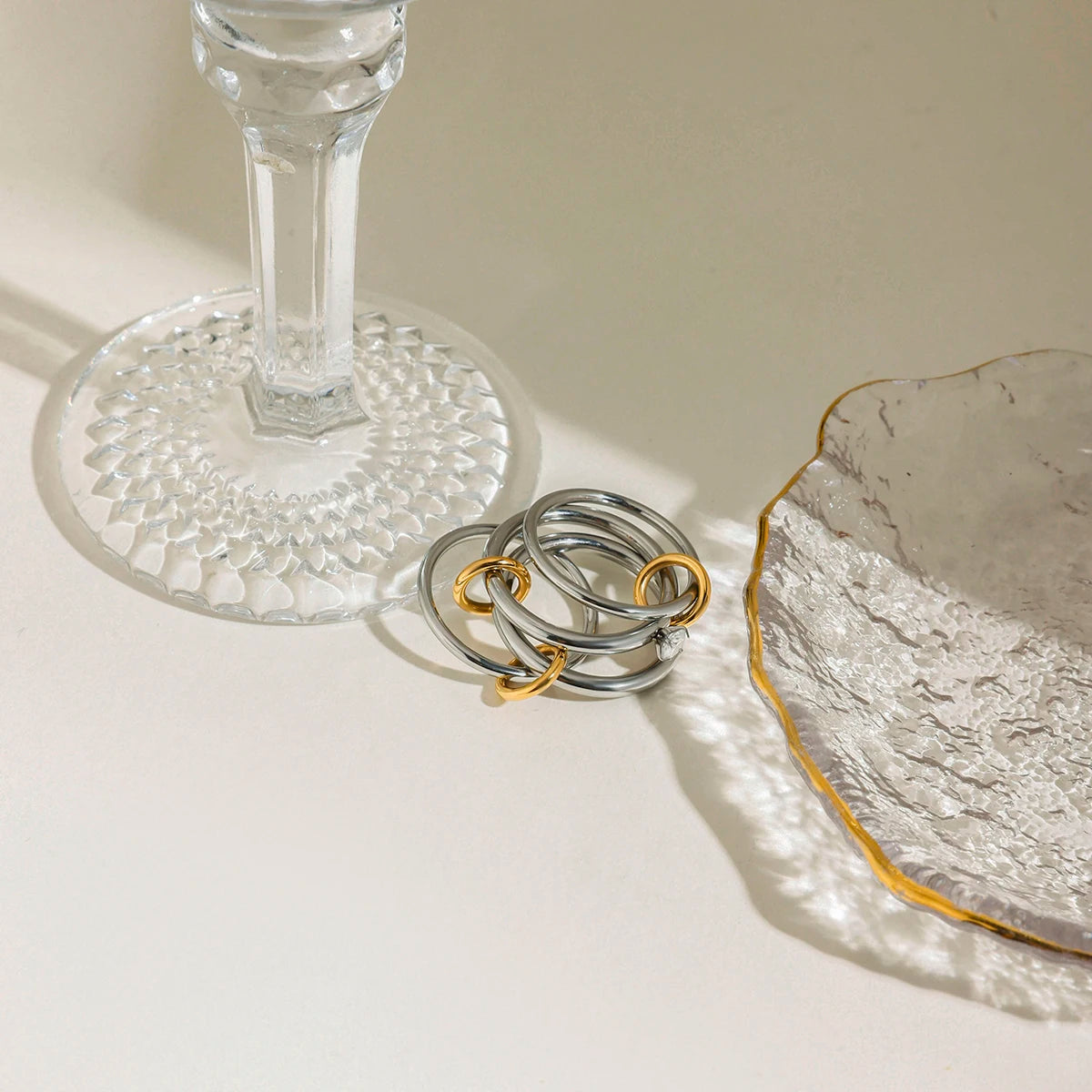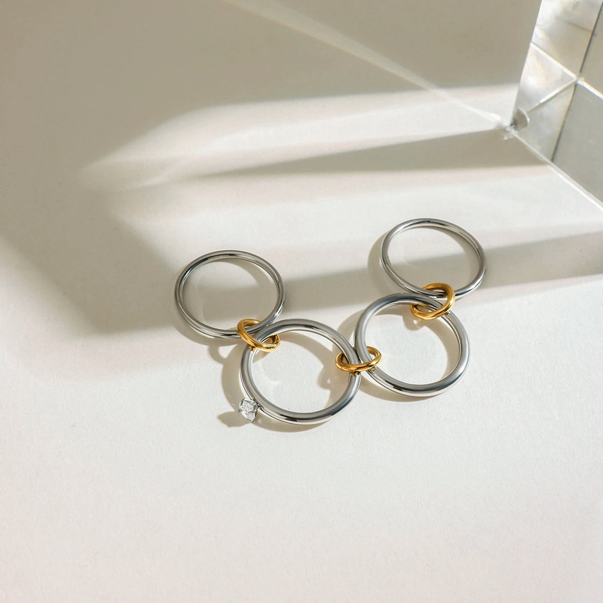 ステンレス304 ニッケルフリー 水に濡れても錆びにくい 18Kゴールドメッキ 4連 重ね付け リング ジルコニア 【YJ00991】