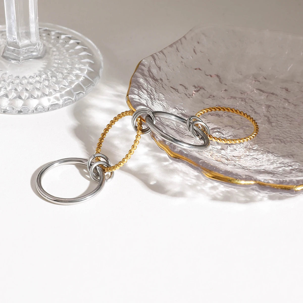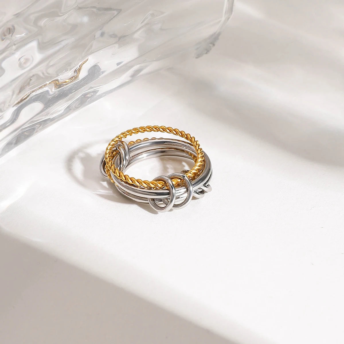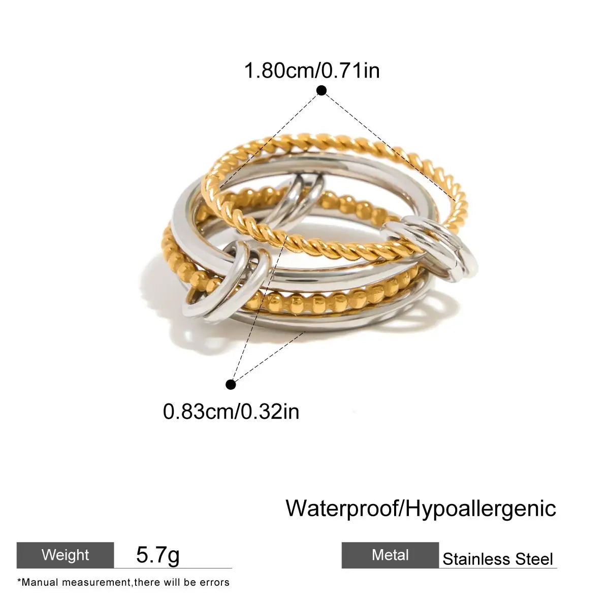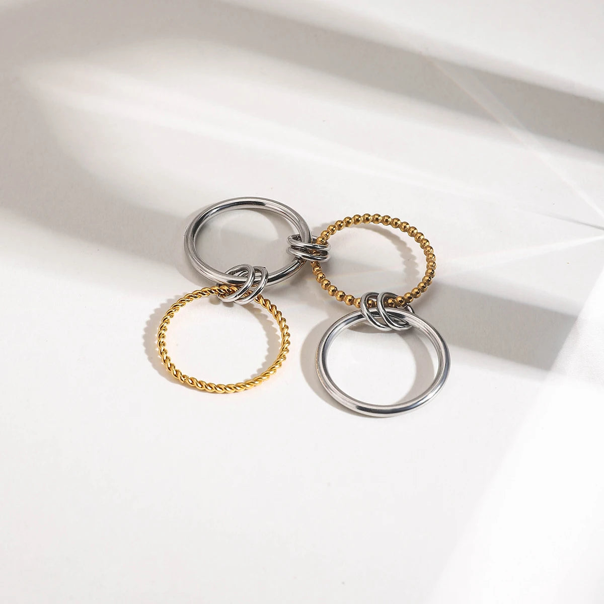 ステンレス304 ニッケルフリー 水に濡れても錆びにくい 重ね付け 4連 リング 【YJ00992】