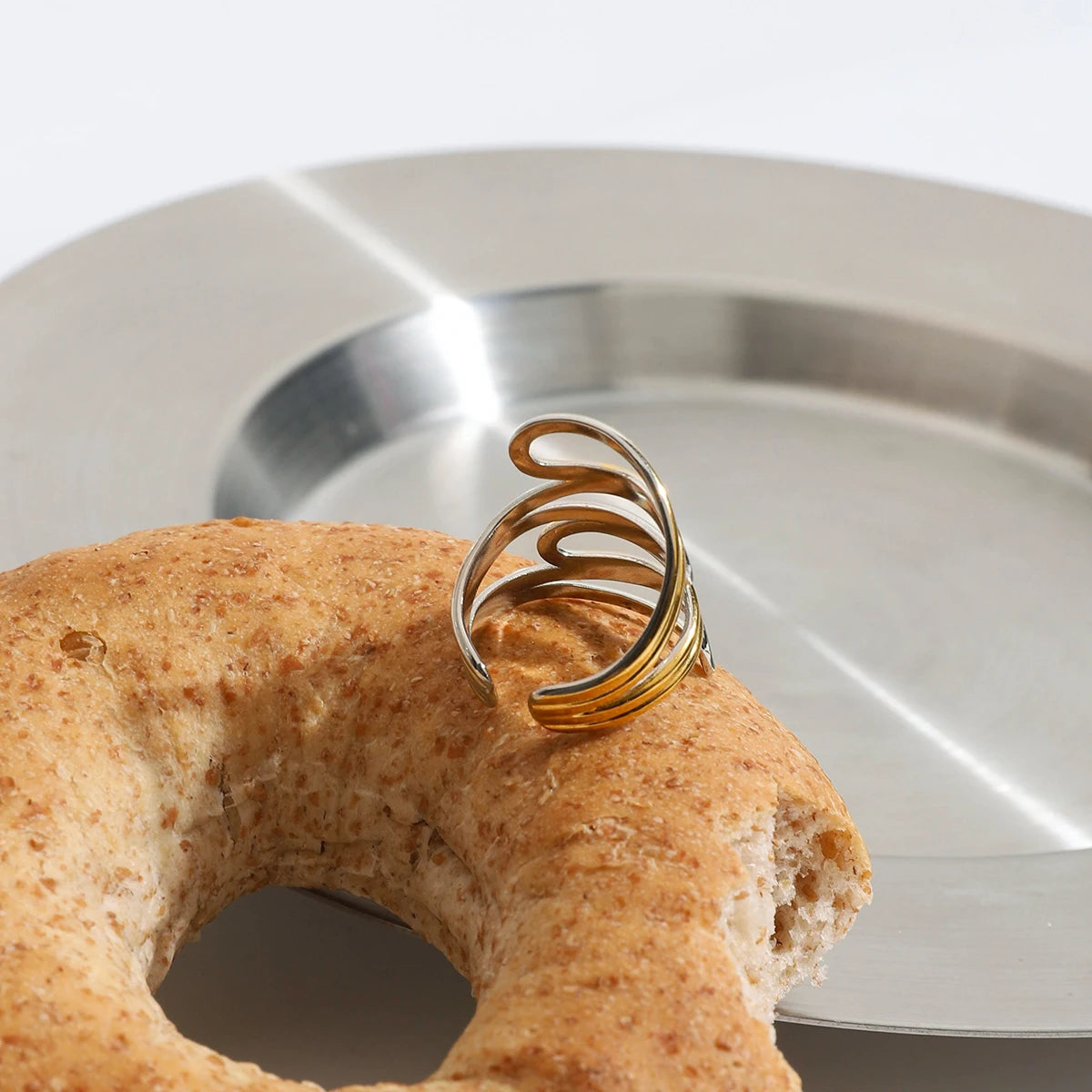ステンレス304 低ニッケル 水に濡れても錆びにくい 18Kゴールドメッキ リング 【YJ01040】