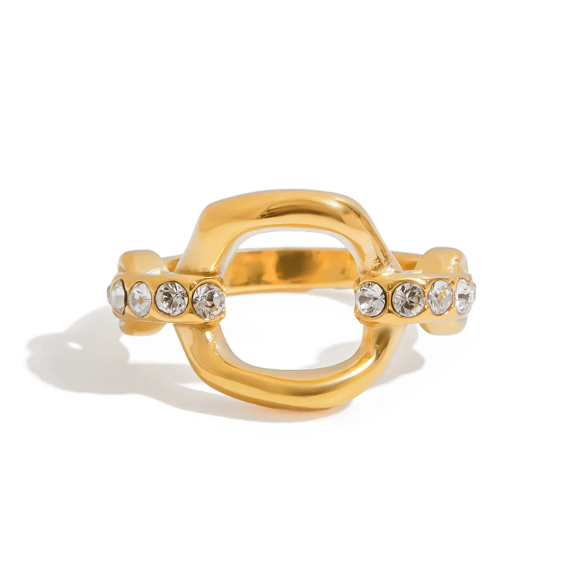 ステンレス304 低ニッケル 水に濡れても錆びにくい 18Kゴールドメッキ リング クリスタル 【YJ01101】