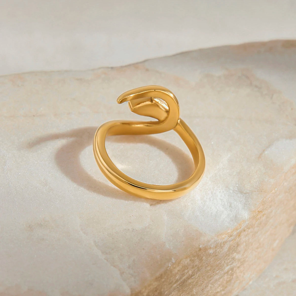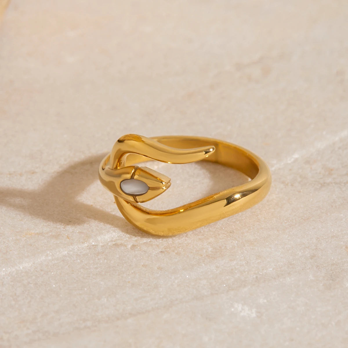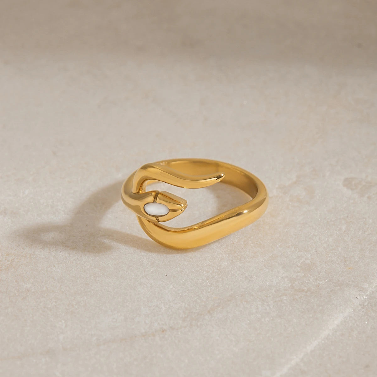 ステンレス304 低ニッケル 水に濡れても錆びにくい 18Kゴールドメッキ リング 2層 蛇 ヘビ スネーク 【YJ01160】