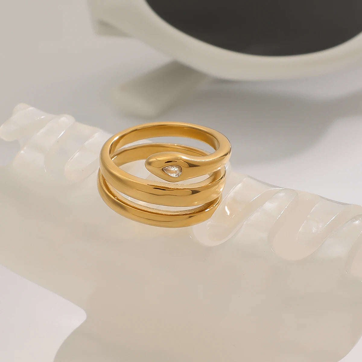 ステンレス304 低ニッケル 水に濡れても錆びにくい 18Kゴールドメッキ リング 蛇 ヘビ スネーク 【YJ01500】