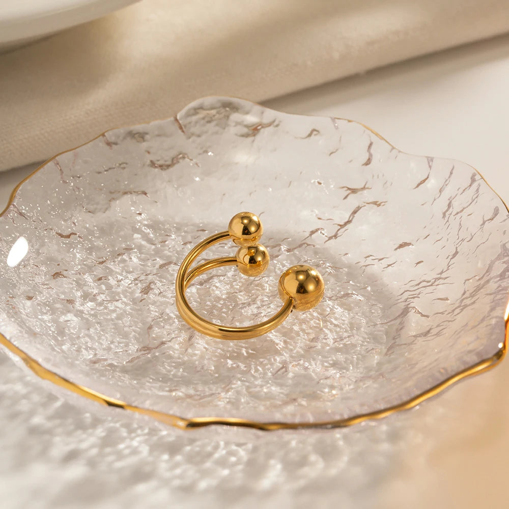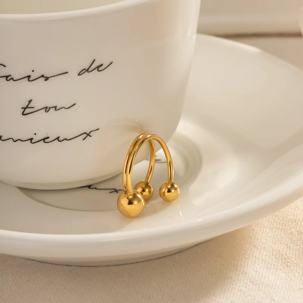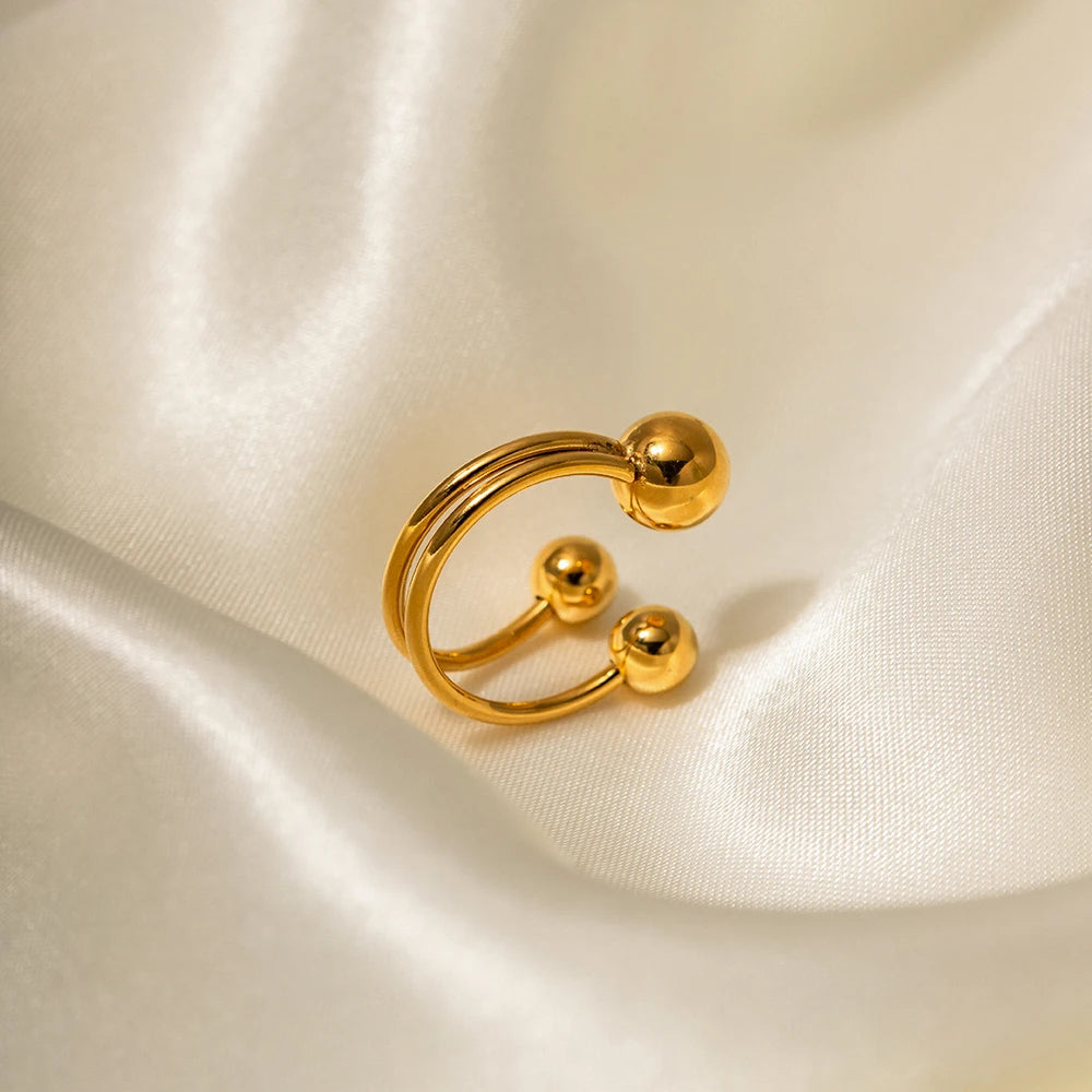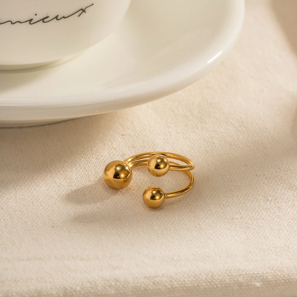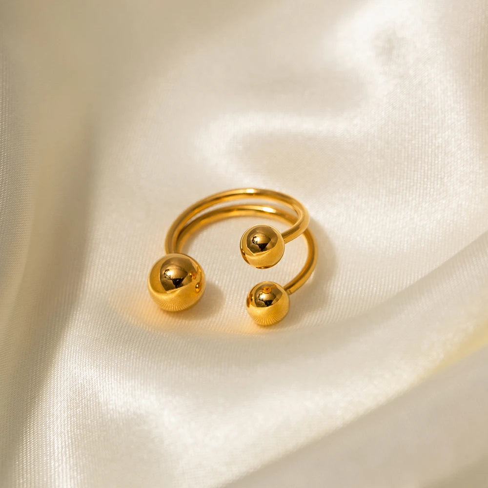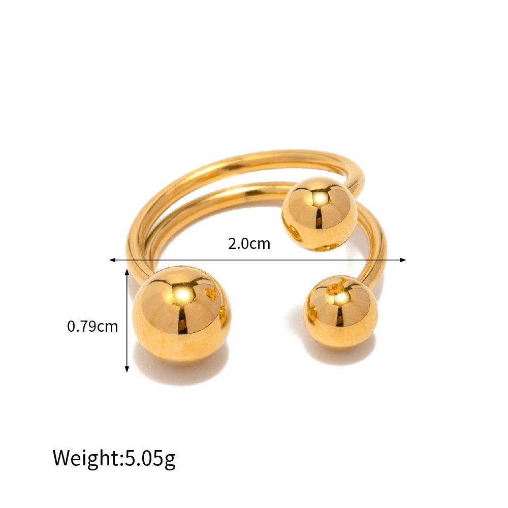 ステンレス304 低ニッケル 水に濡れても錆びにくい 18Kゴールドメッキ リング 2層 ボール【YJ01625】