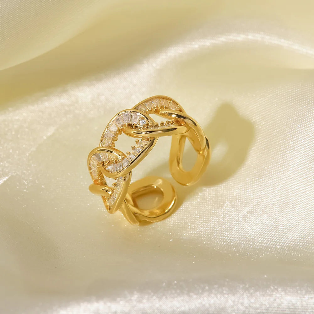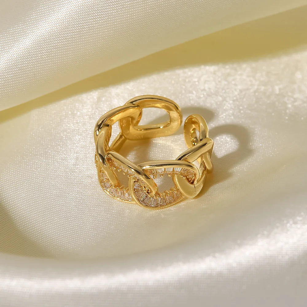 ステンレス304 低ニッケル 水に濡れても錆びにくい 18Kゴールドメッキ リング ジルコニア 【YJ01719】