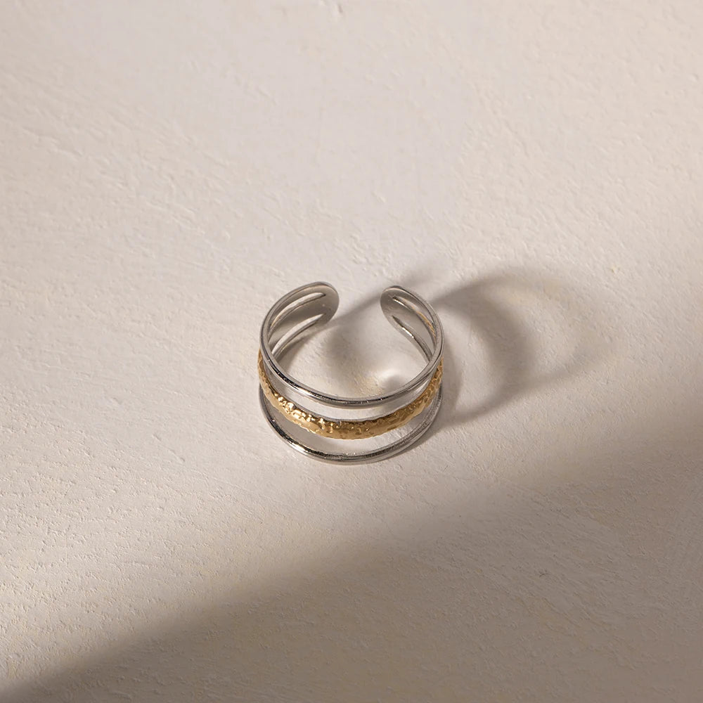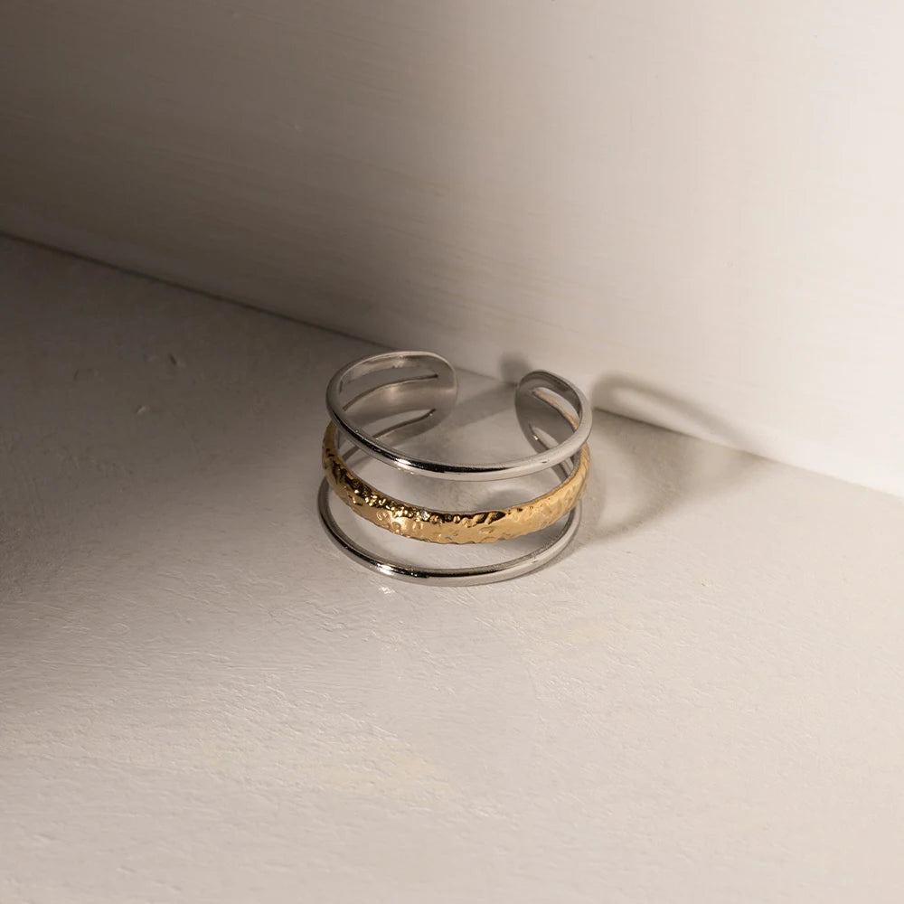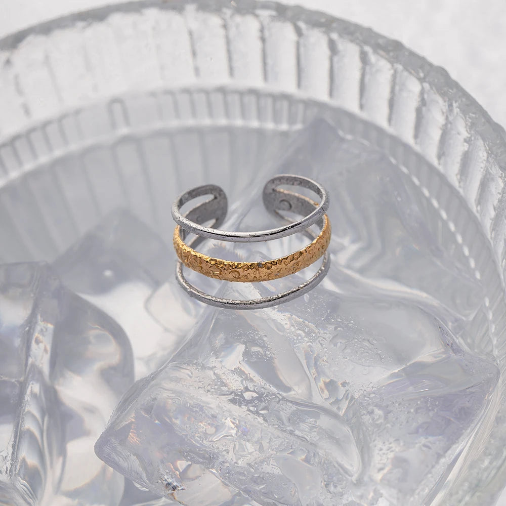 ステンレス304 低ニッケル 水に濡れても錆びにくい 18Kゴールドメッキ リング 3層 【YJ01721】