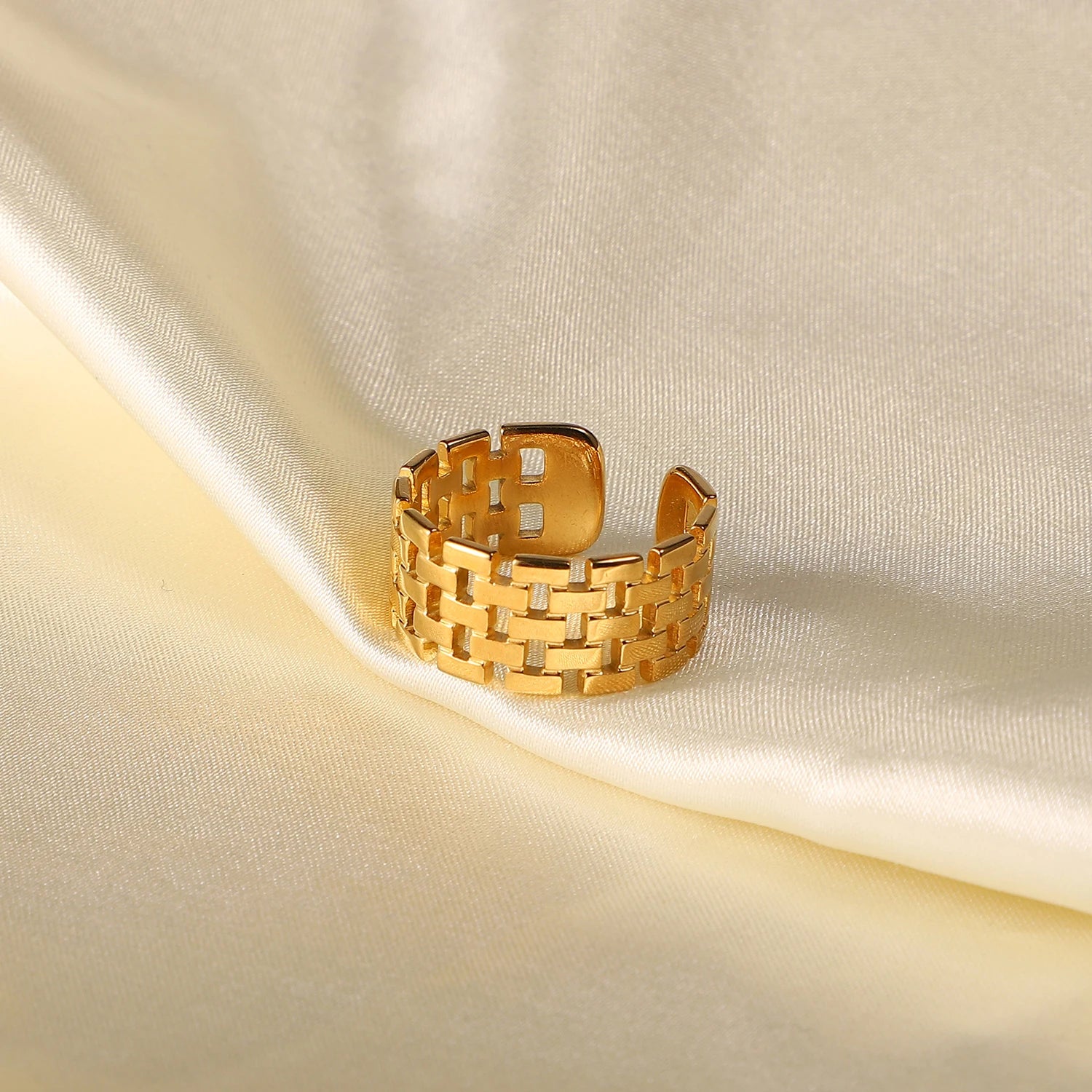 ステンレス304 低ニッケル 水に濡れても錆びにくい 18Kゴールドメッキ リング 【YJ01751】