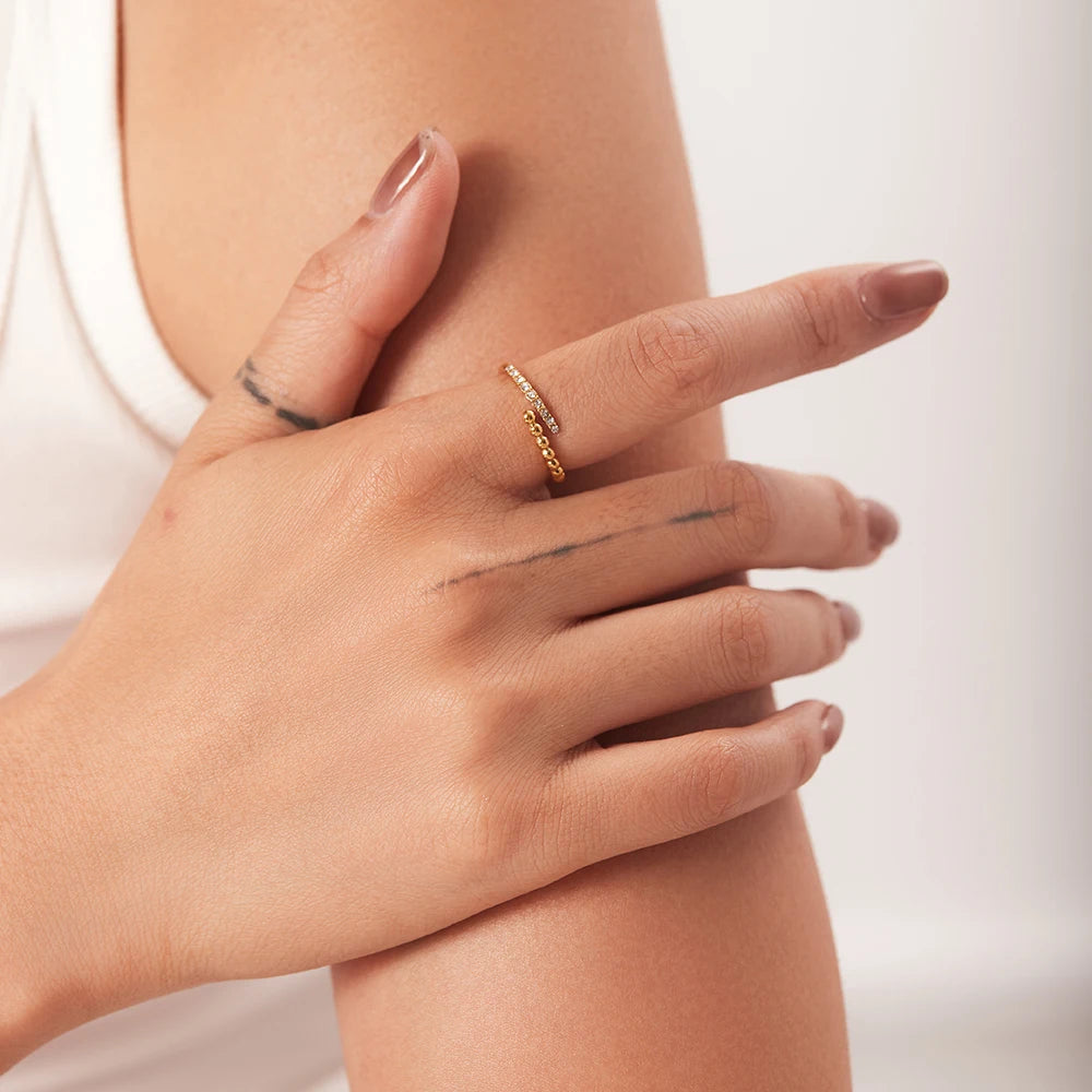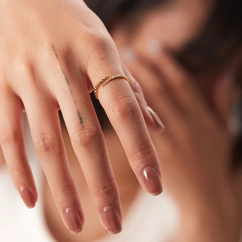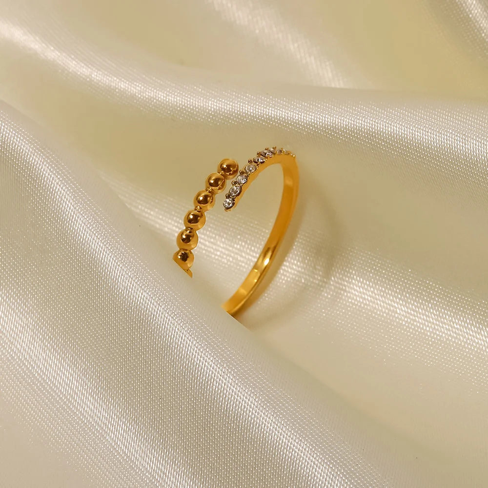 ステンレス304 低ニッケル 水に濡れても錆びにくい 18Kゴールドメッキ リング ジルコニア 【YJ01808】