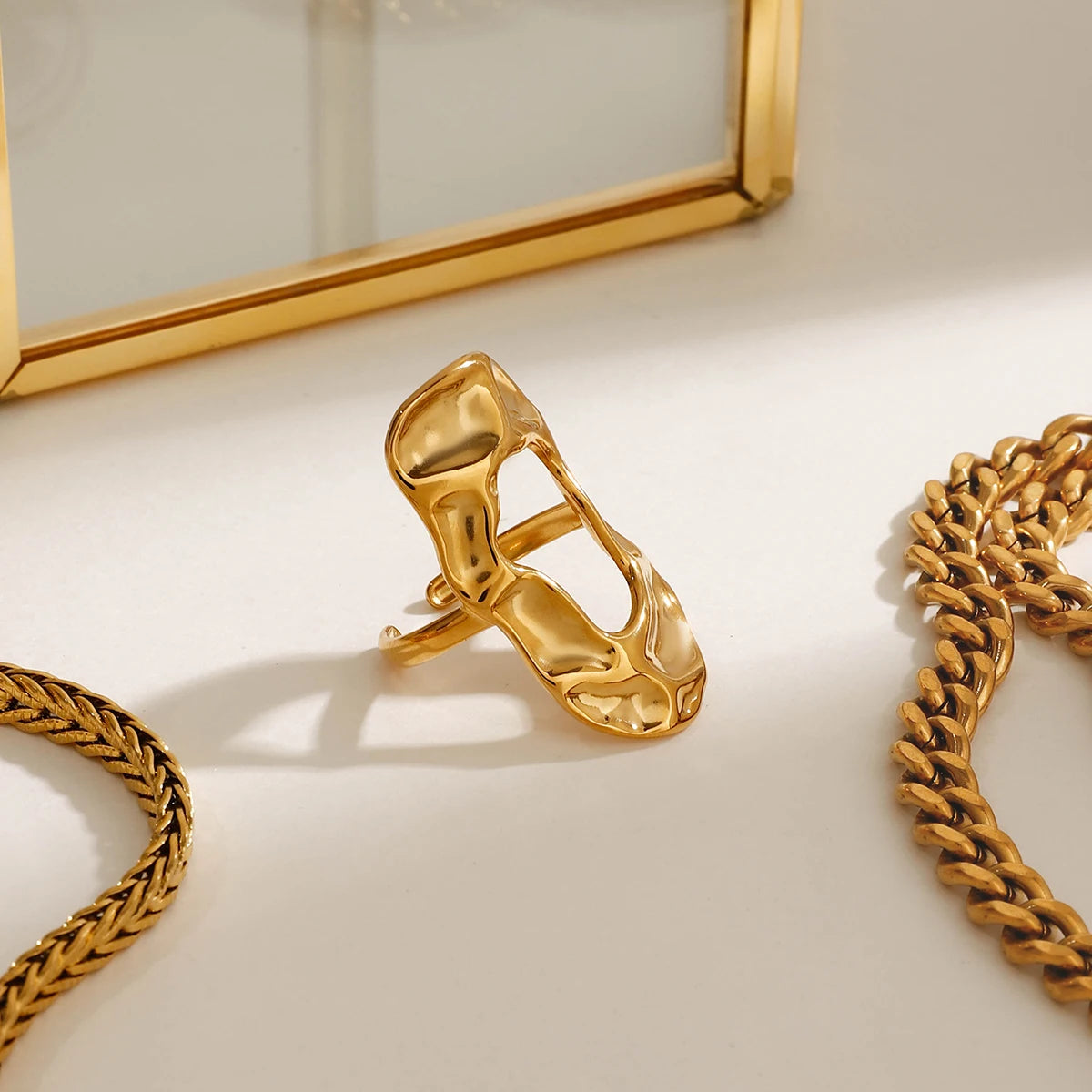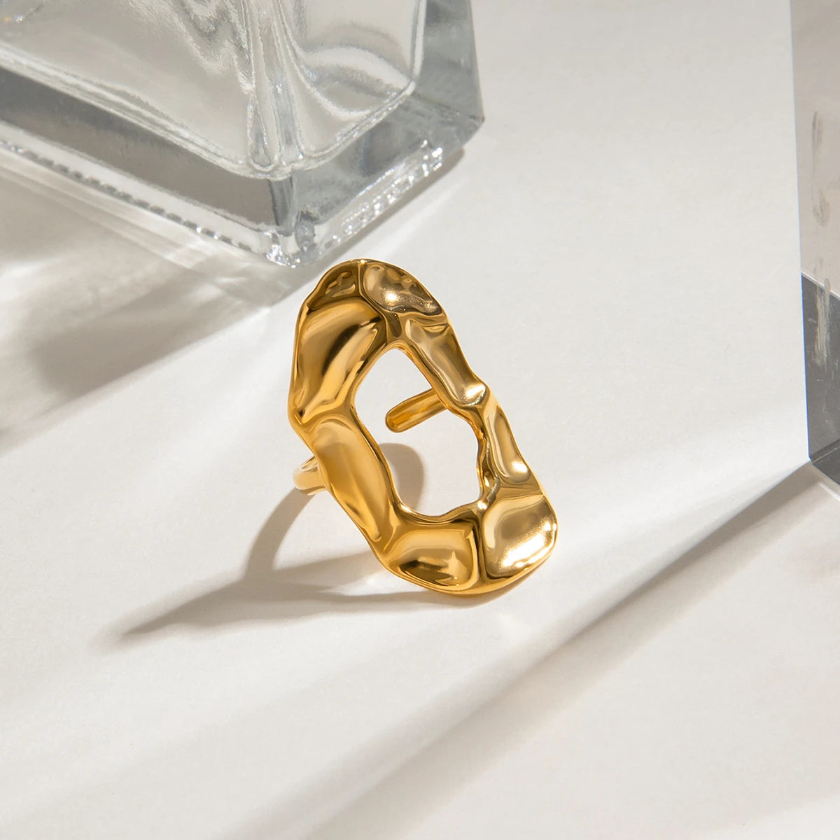 ステンレス304 低ニッケル 水に濡れても錆びにくい 18Kゴールドメッキ リング 【YJ01894】