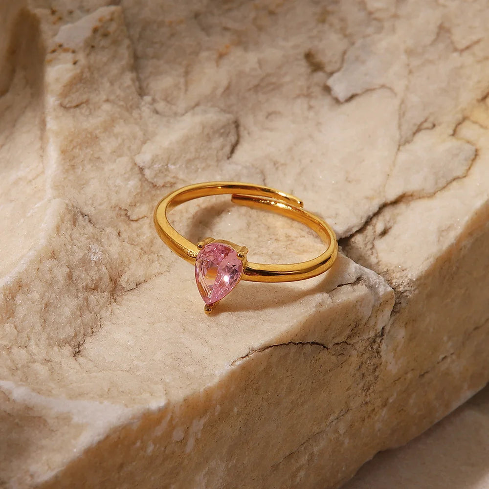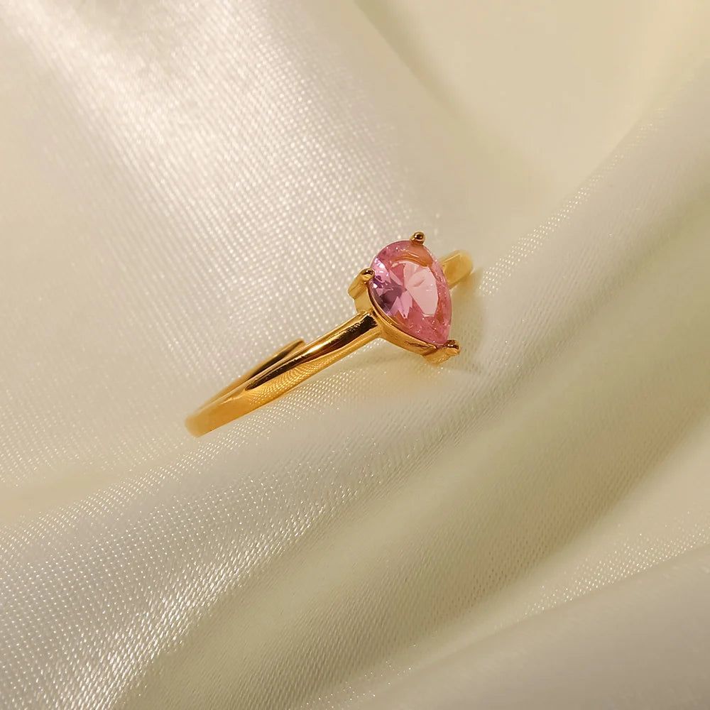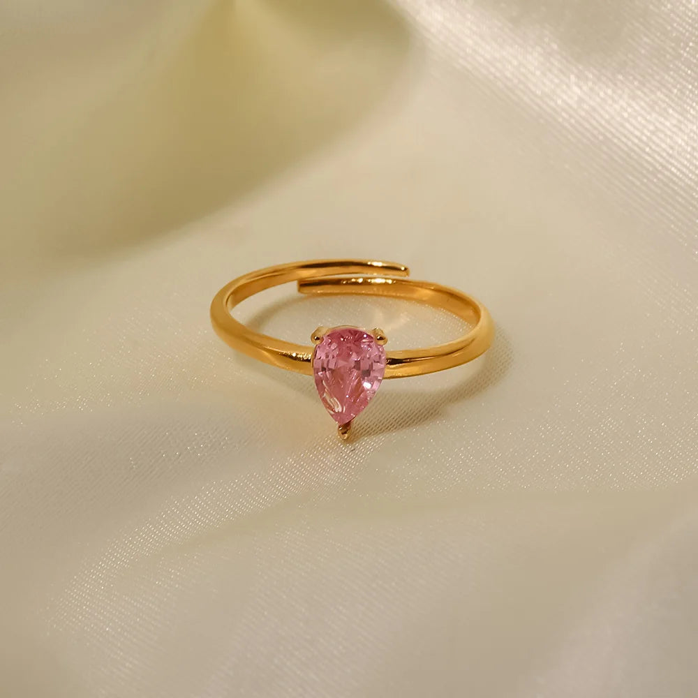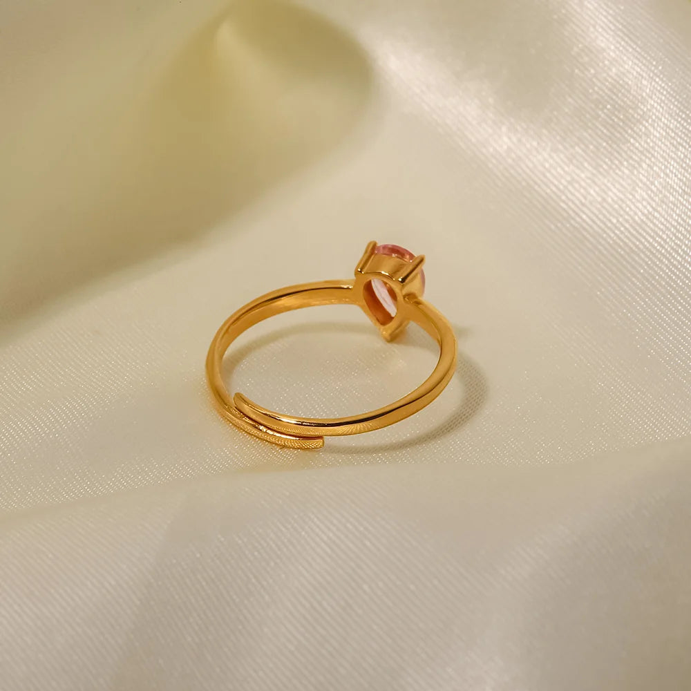 ステンレス304 低ニッケル 水に濡れても錆びにくい 18Kゴールドメッキ リング ジルコニア 【YJ01933】