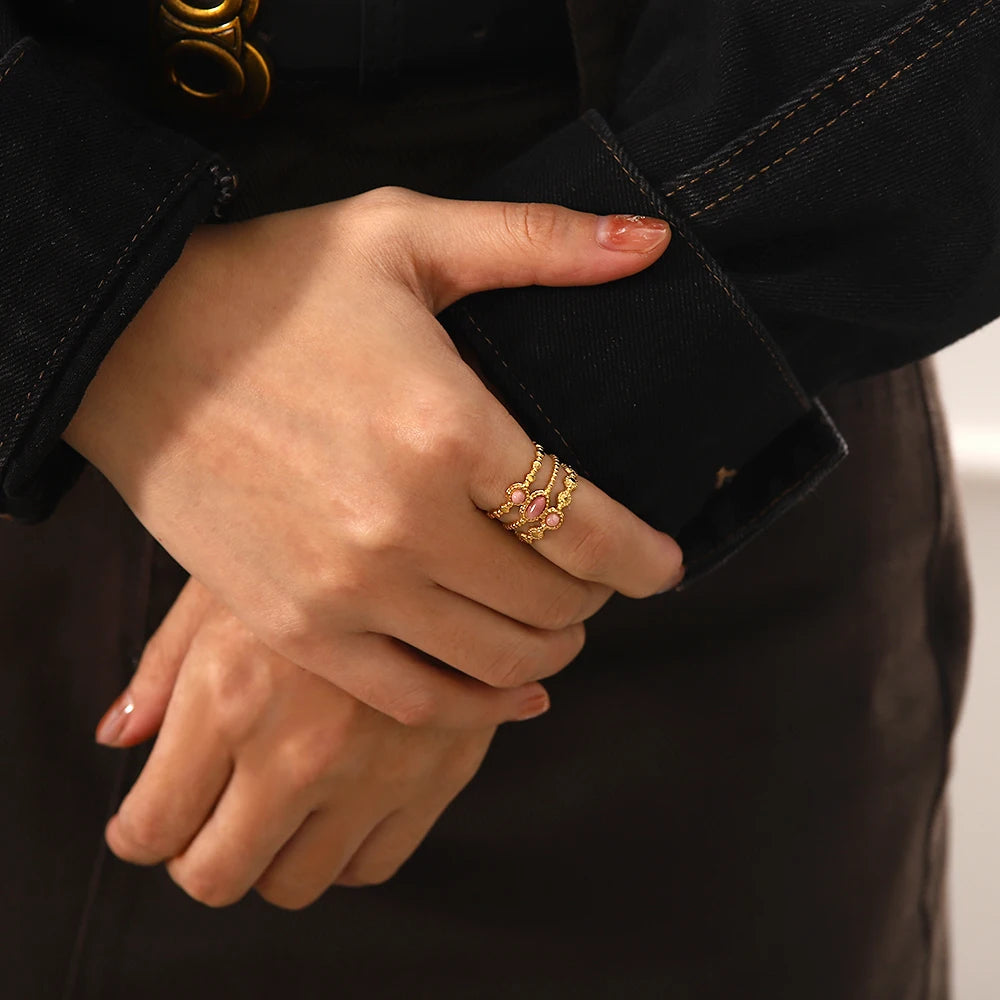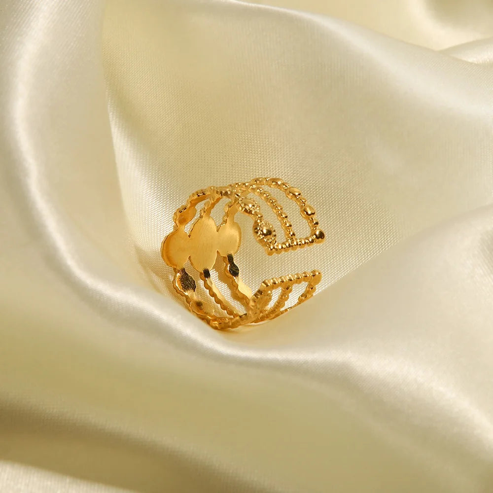 ステンレス304 低ニッケル 水に濡れても錆びにくい 18Kゴールドメッキ リング 3層 【YJ01934】