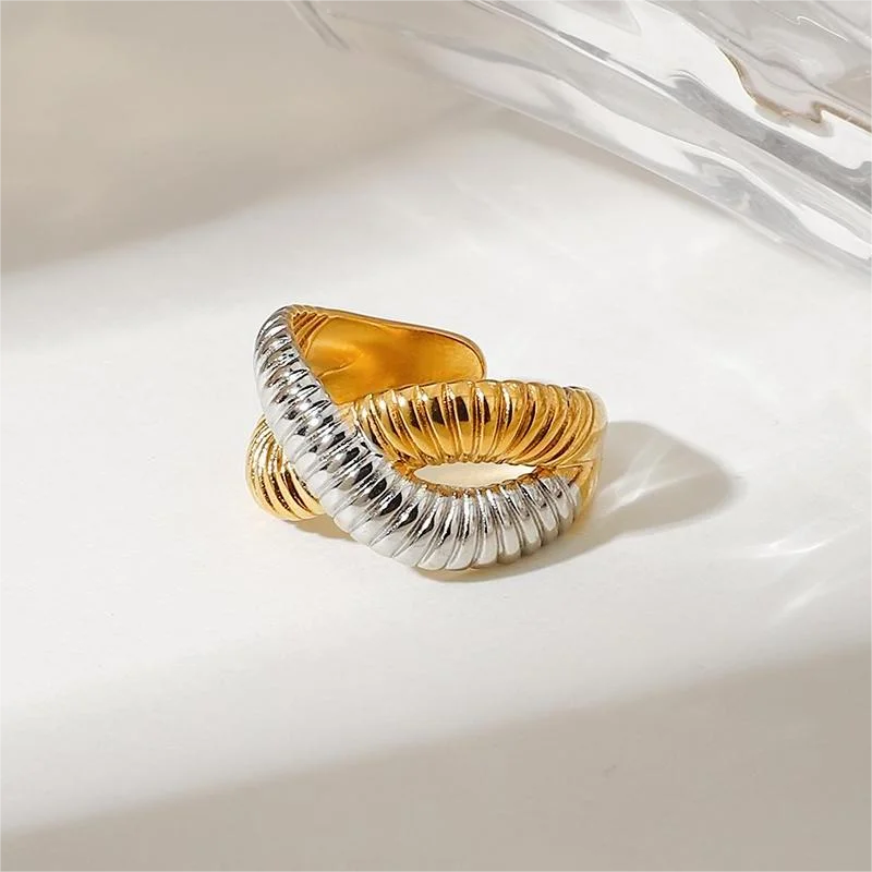 ステンレス304 低ニッケル 水に濡れても錆びにくい 18Kゴールドメッキ リング 【YJ02000】