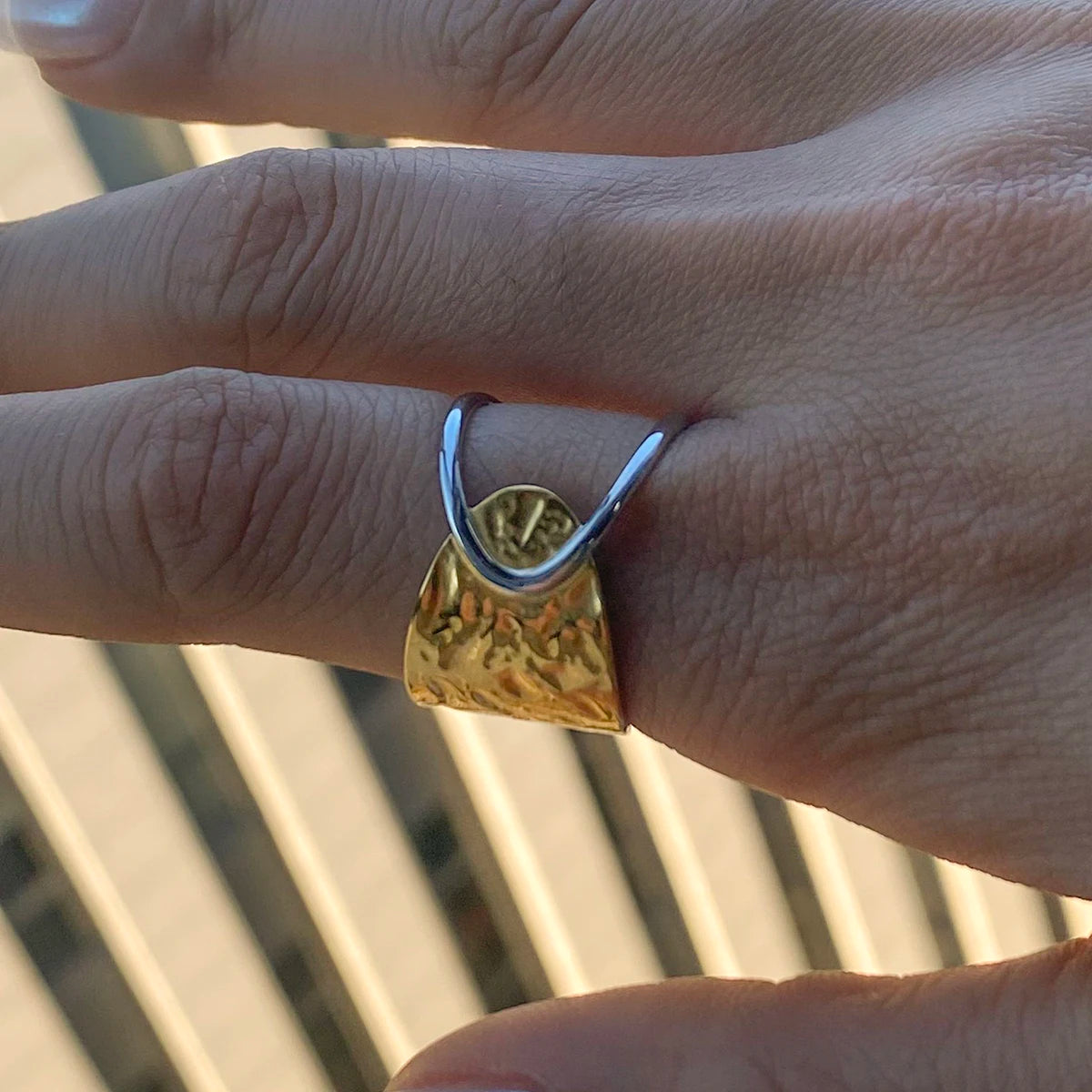 ステンレス304 低ニッケル 水に濡れても錆びにくい 18Kゴールドメッキ リング 【YJ02001】
