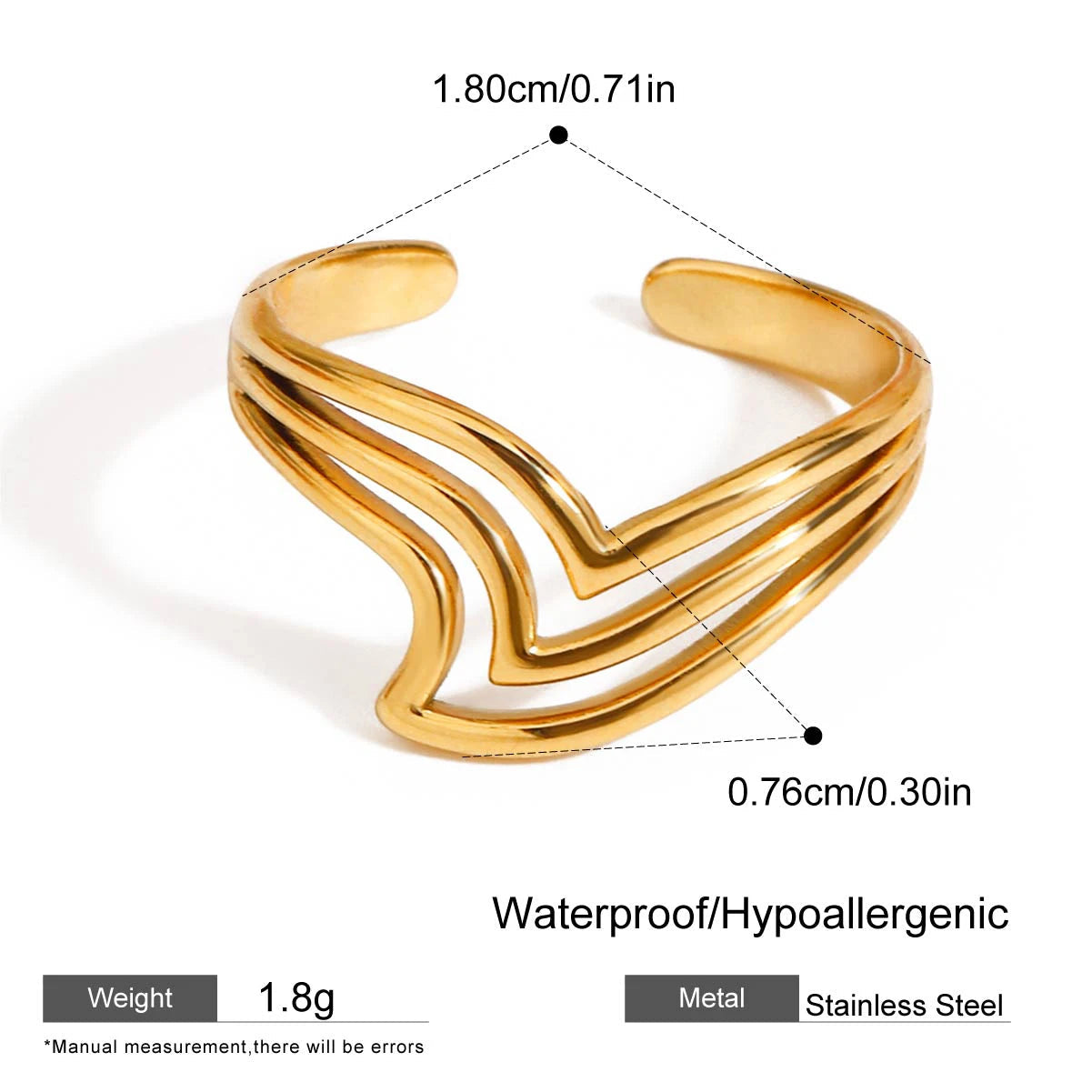 ステンレス304 低ニッケル 水に濡れても錆びにくい 18Kゴールドメッキ リング 【YJ02009】