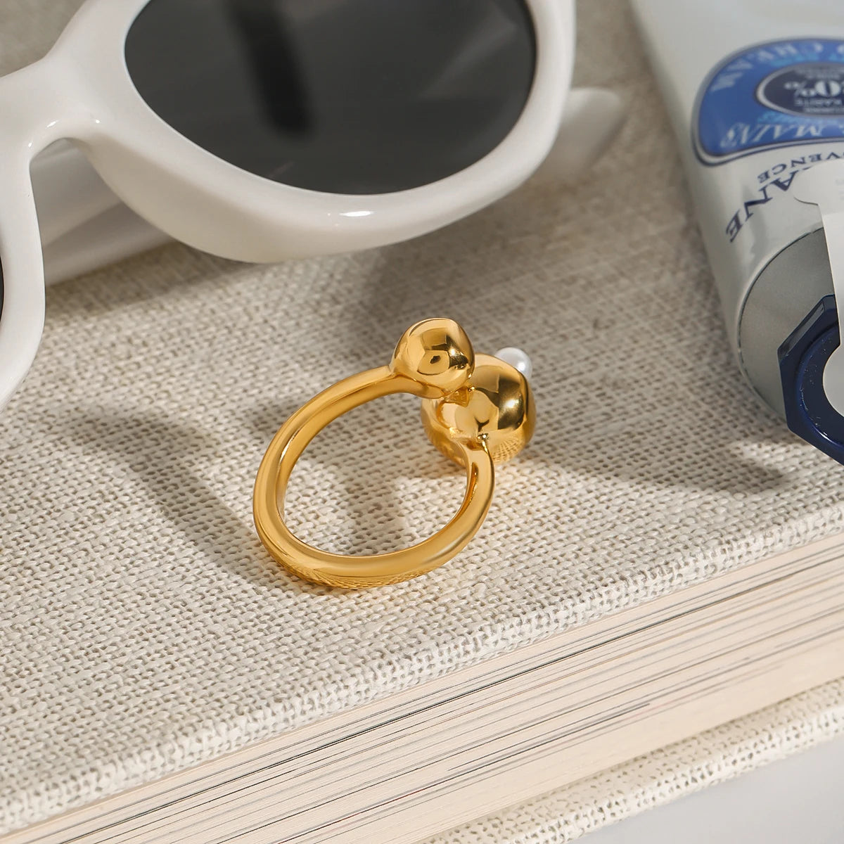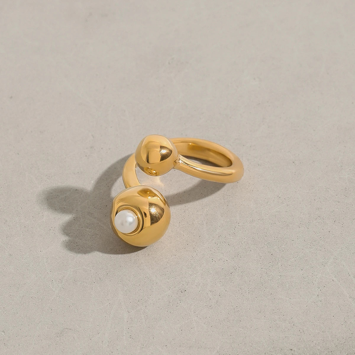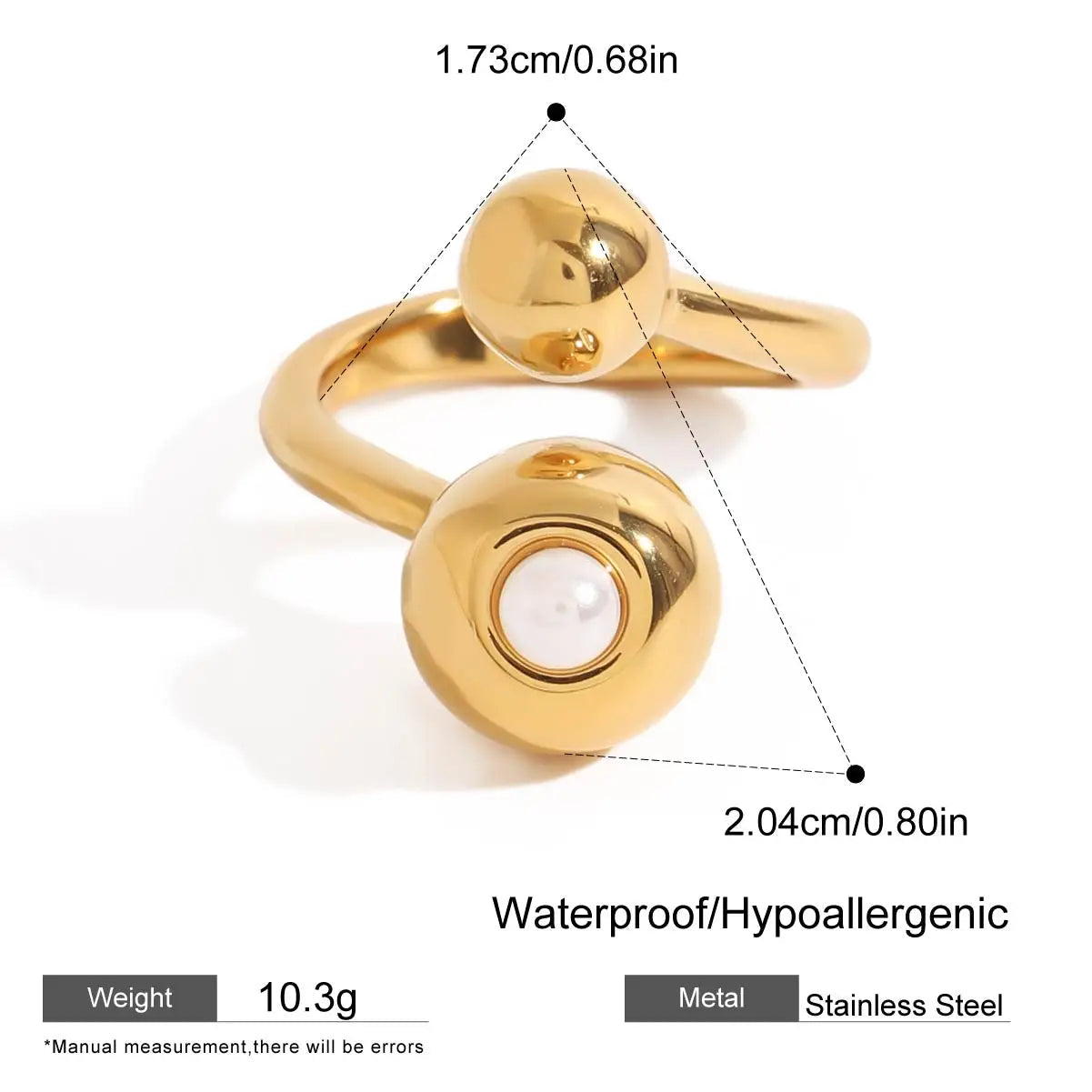 ステンレス304 低ニッケル 水に濡れても錆びにくい 18Kゴールドメッキ リング パール ボール【YJ02041】