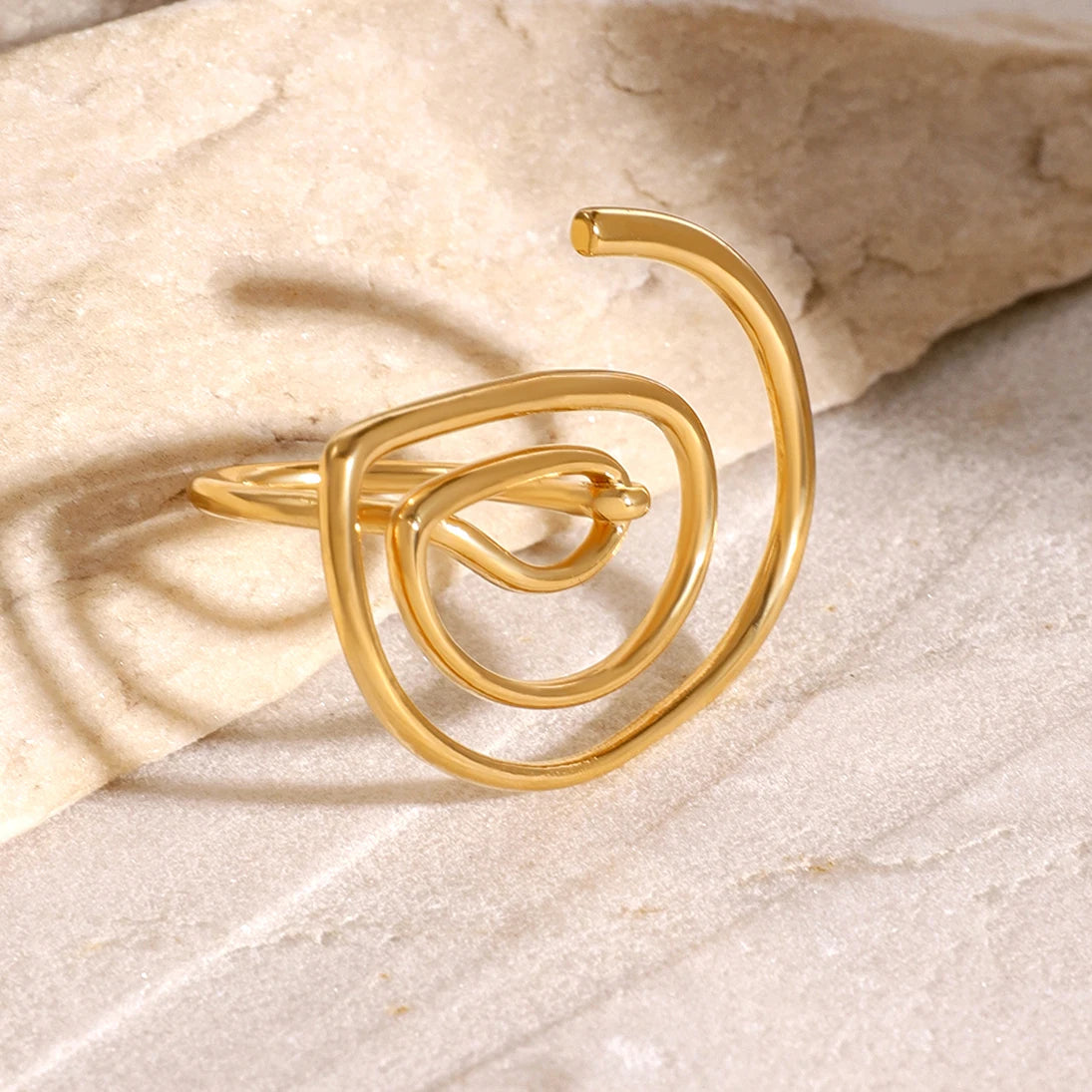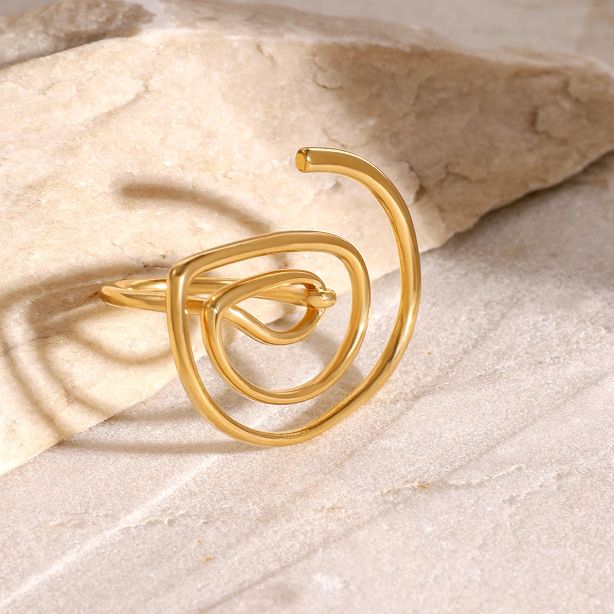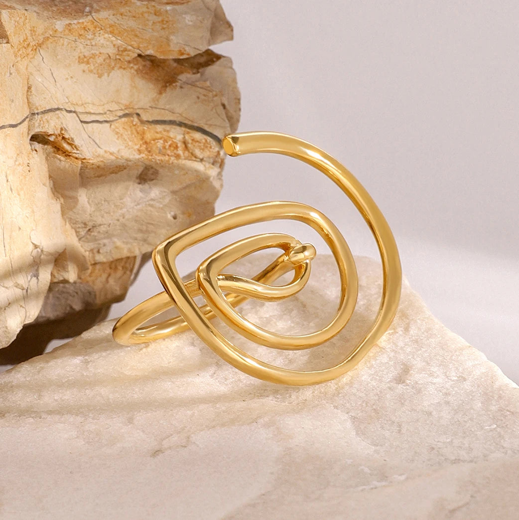 ステンレス304 低ニッケル 水に濡れても錆びにくい 18Kゴールドメッキ リング スパイラル【YJ02050】