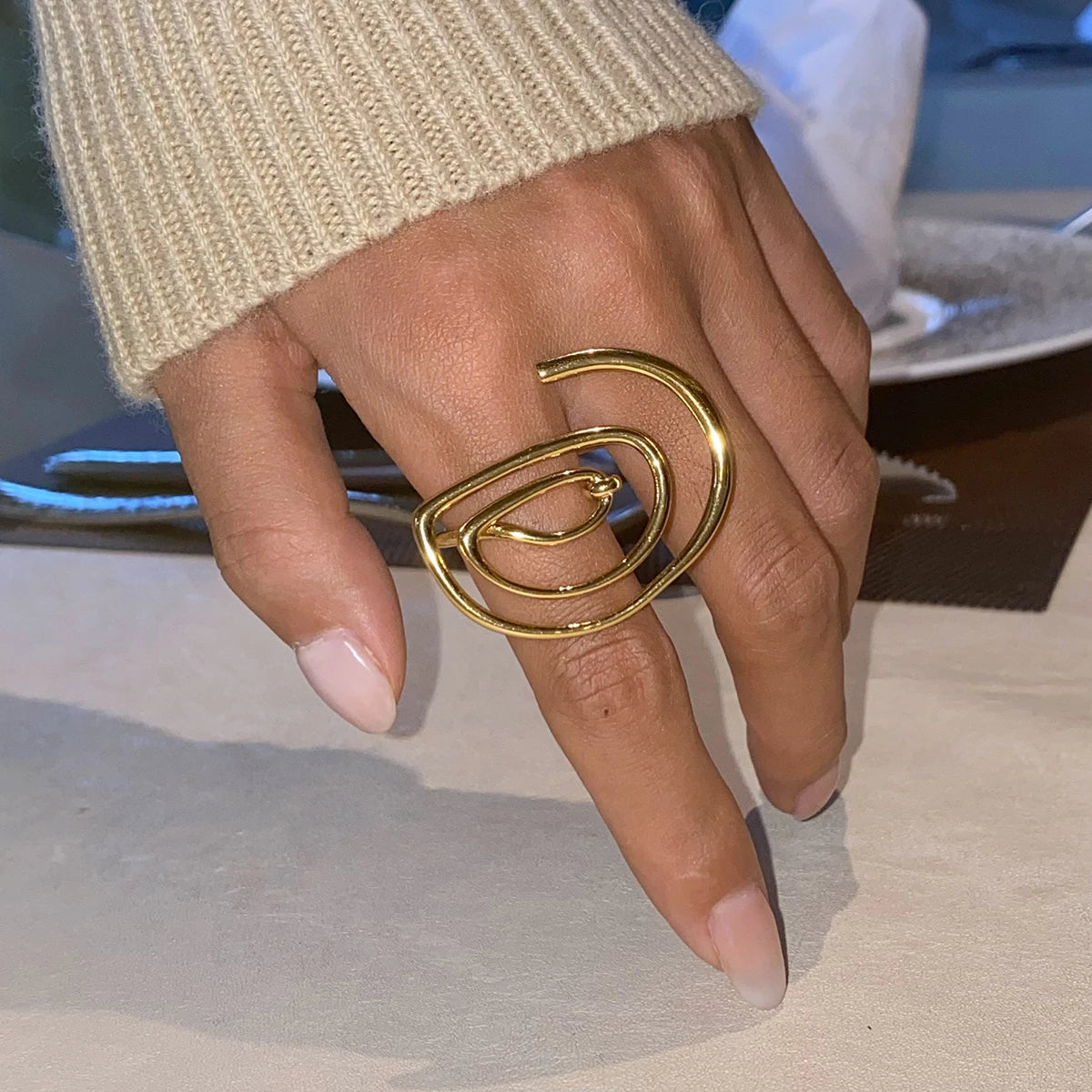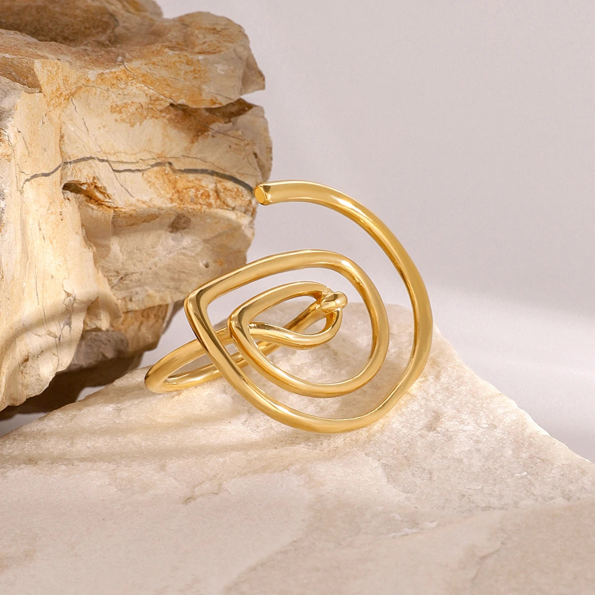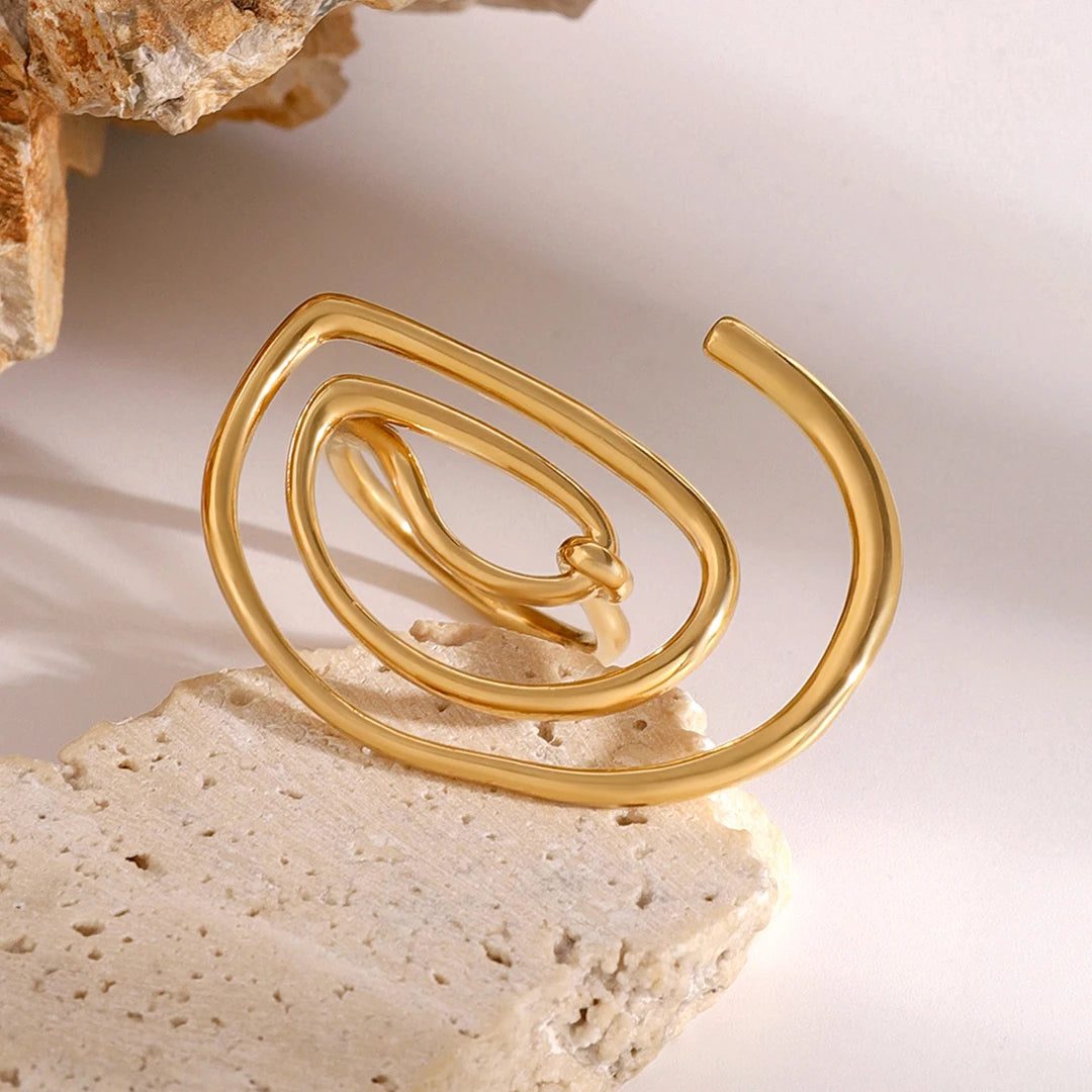 ステンレス304 低ニッケル 水に濡れても錆びにくい 18Kゴールドメッキ リング スパイラル【YJ02050】