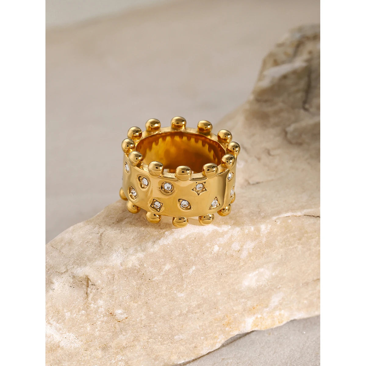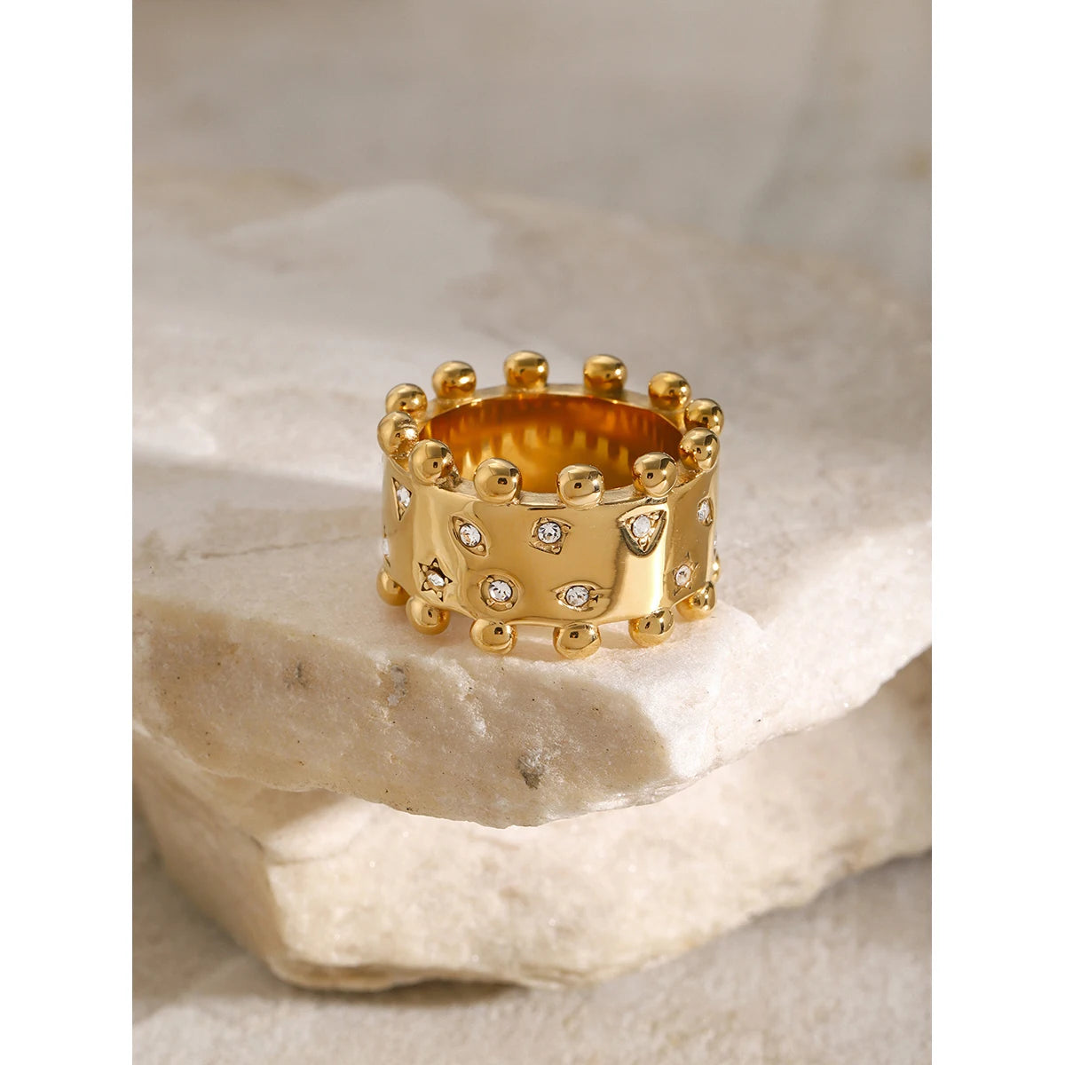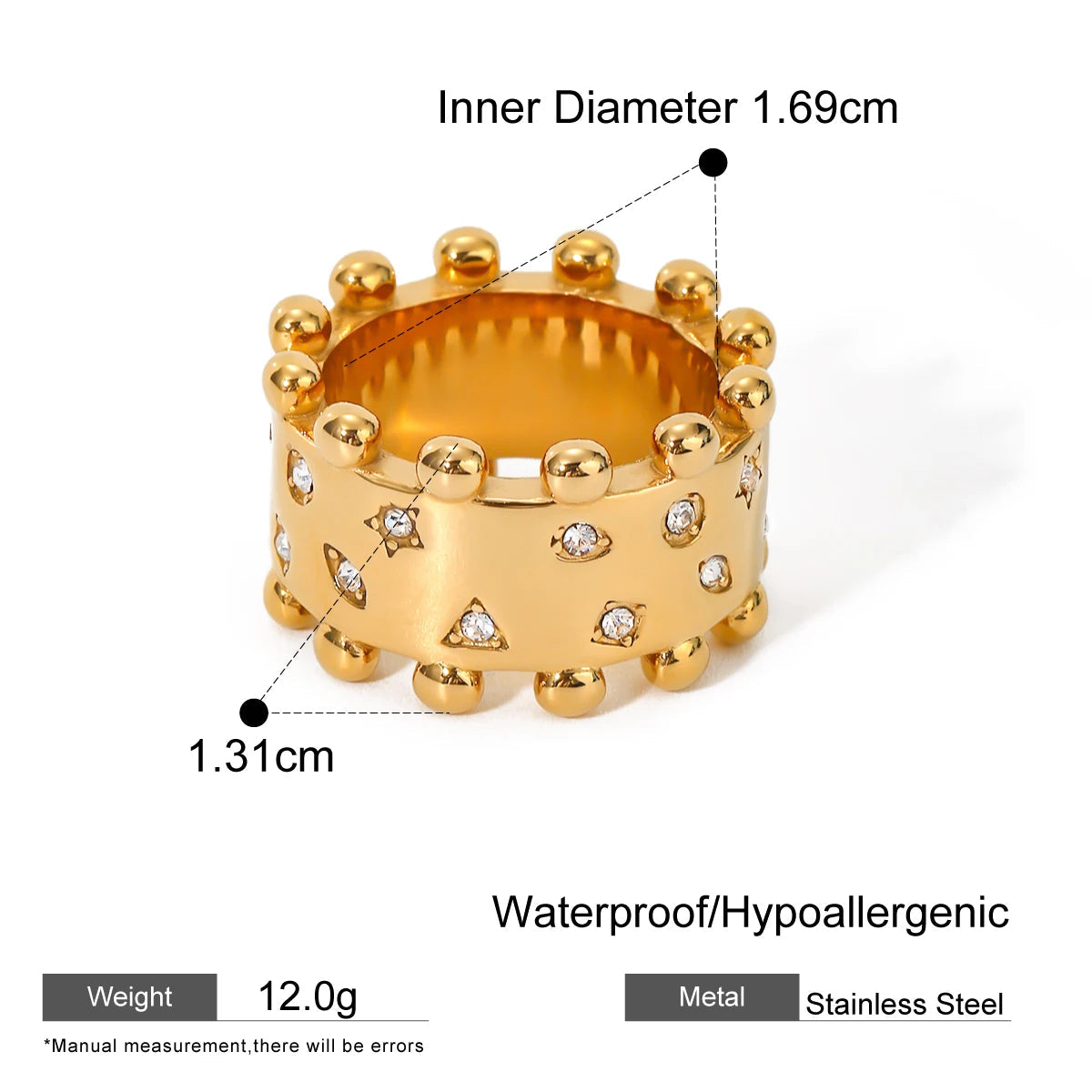 ステンレス304 低ニッケル 水に濡れても錆びにくい 18Kゴールドメッキ リング【YJ02078】