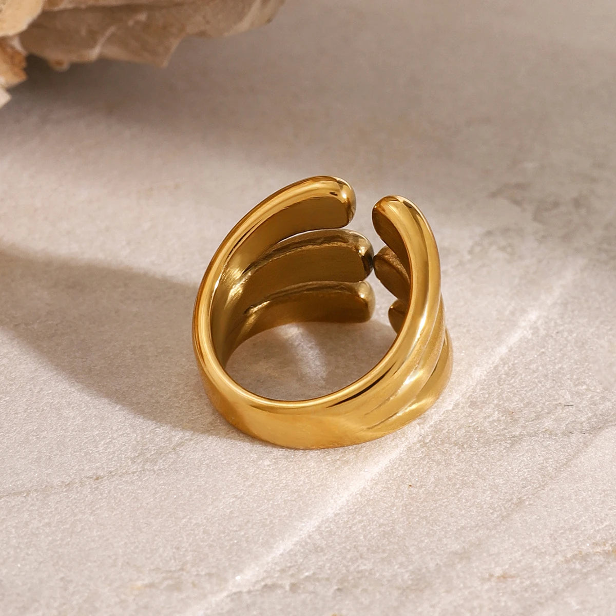 ステンレス304 低ニッケル 水に濡れても錆びにくい 18Kゴールドメッキ リング 【YJ02085】